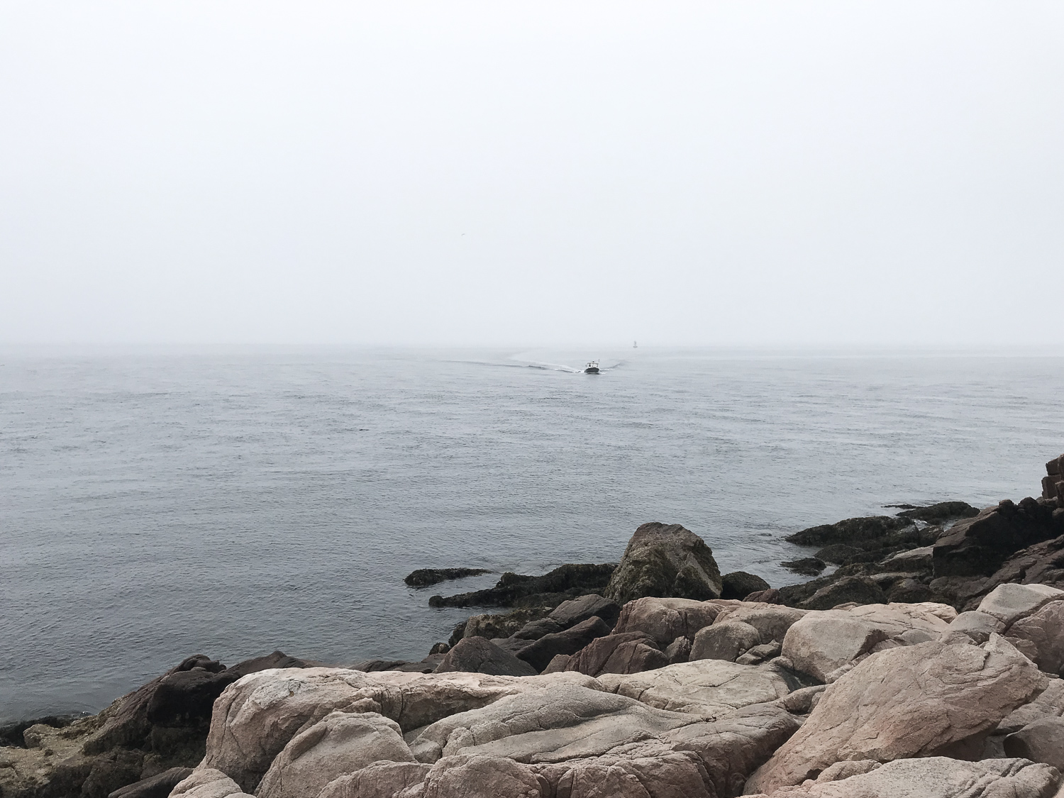 The next day was a drastic change in scenery! The beautiful sunshine I had on the 6th was replaced by fog and mist on the 7th, which was okay– it felt locationally appropriate and gave a different type of beauty to the surroundings. I went the lazy route and drove to the top of Mount Desert (I loved that most of Acadia Park was located on Mount Desert Island and think that would make a terrific band name?), which didn’t have the best views on account of the fog. Got some delicious clam chowder at the adorably kitschy Happy Clam Shack then was Canada-bound.