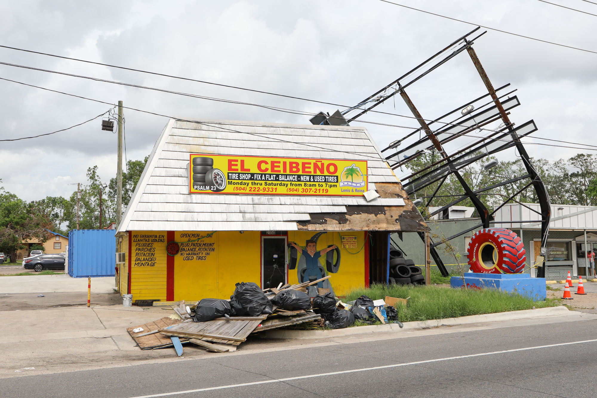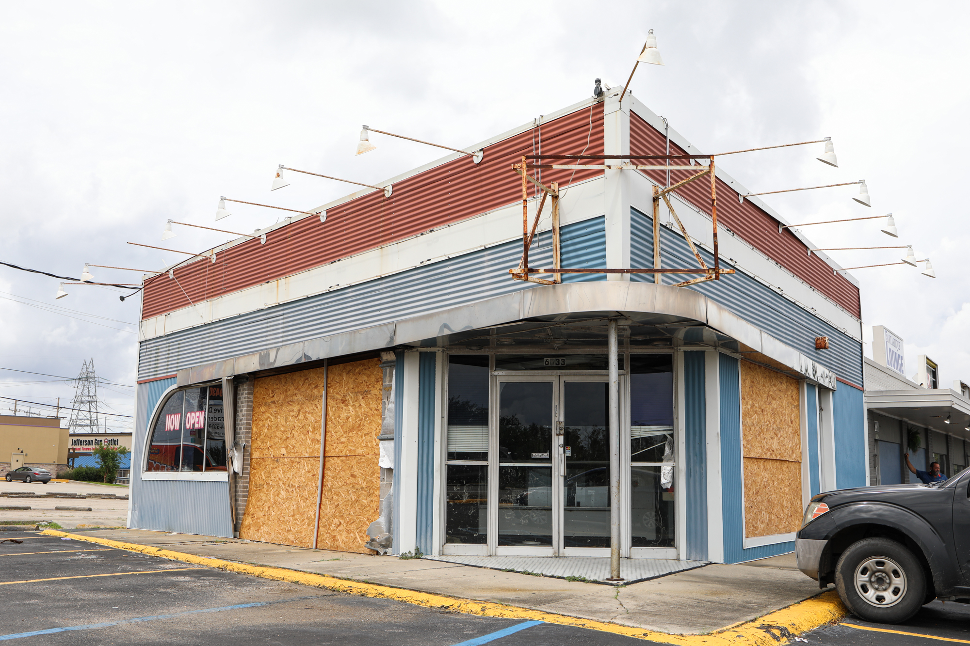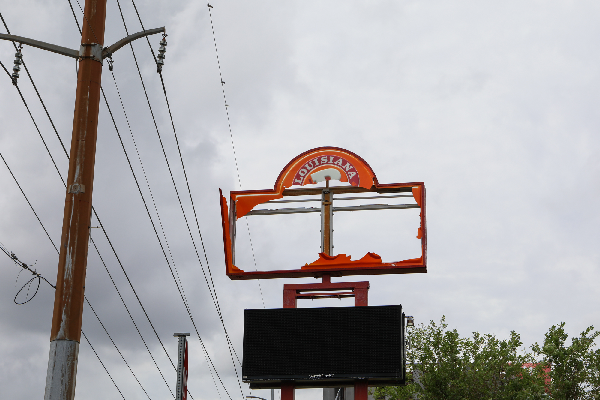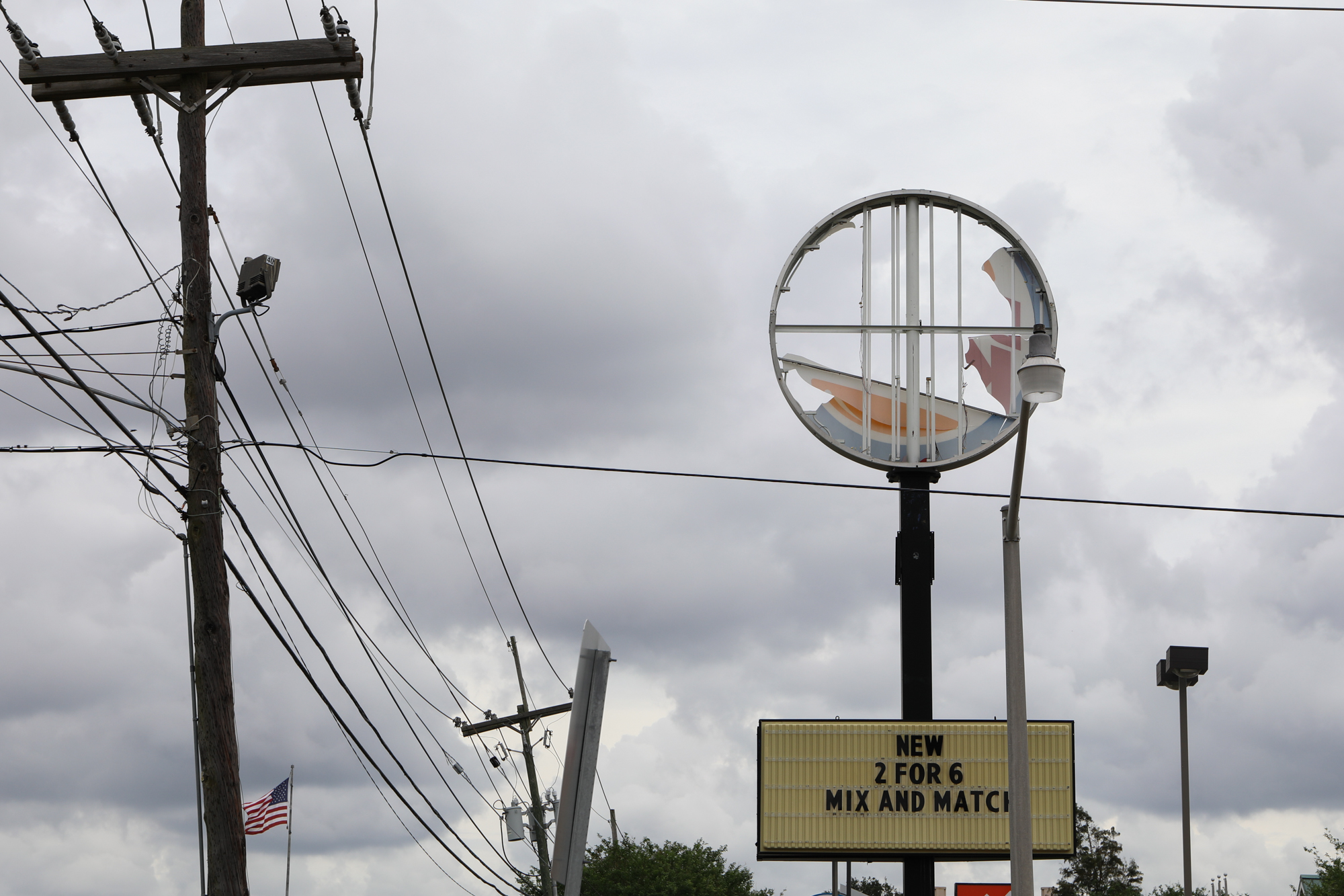 I was going to do a post around the one-month mark but let it get away from me; honestly, things are still about the same two months on. Thousands upon thousands of roofs are still tarped; I’m only just starting to see meaningful repairs done, usually on nicer properties in nicer areas of town. When taking pics, I found myself particularly drawn to all the damaged signs, especially of fast food places. Some beloved establishments have miraculously reopened (Saturn Bar!), while others have announced they’re permanently closing (Kebab!).