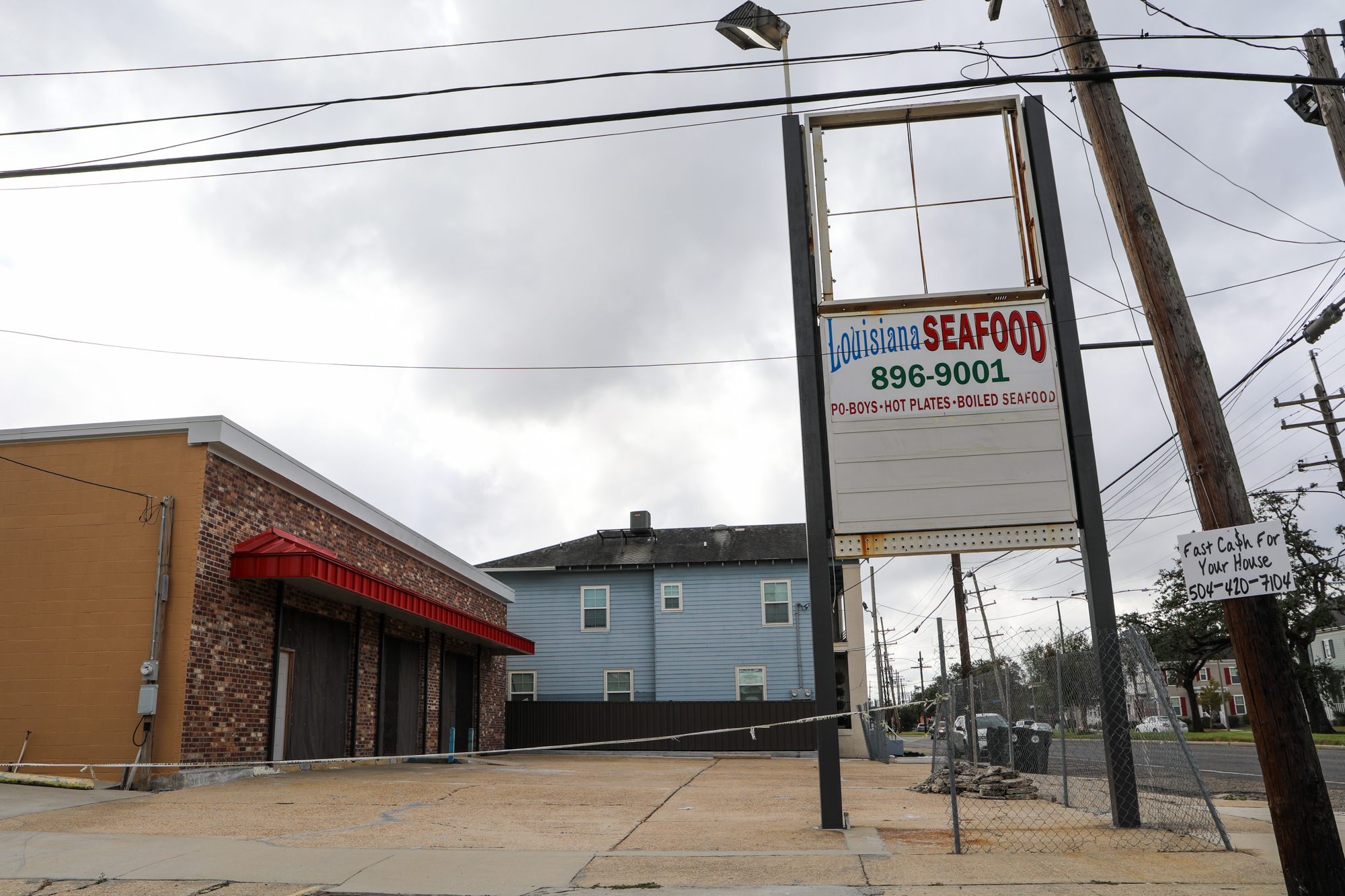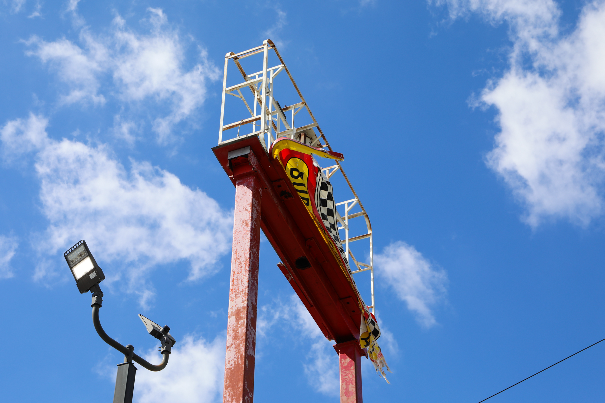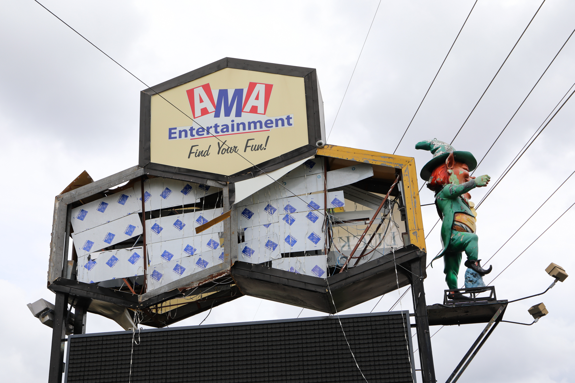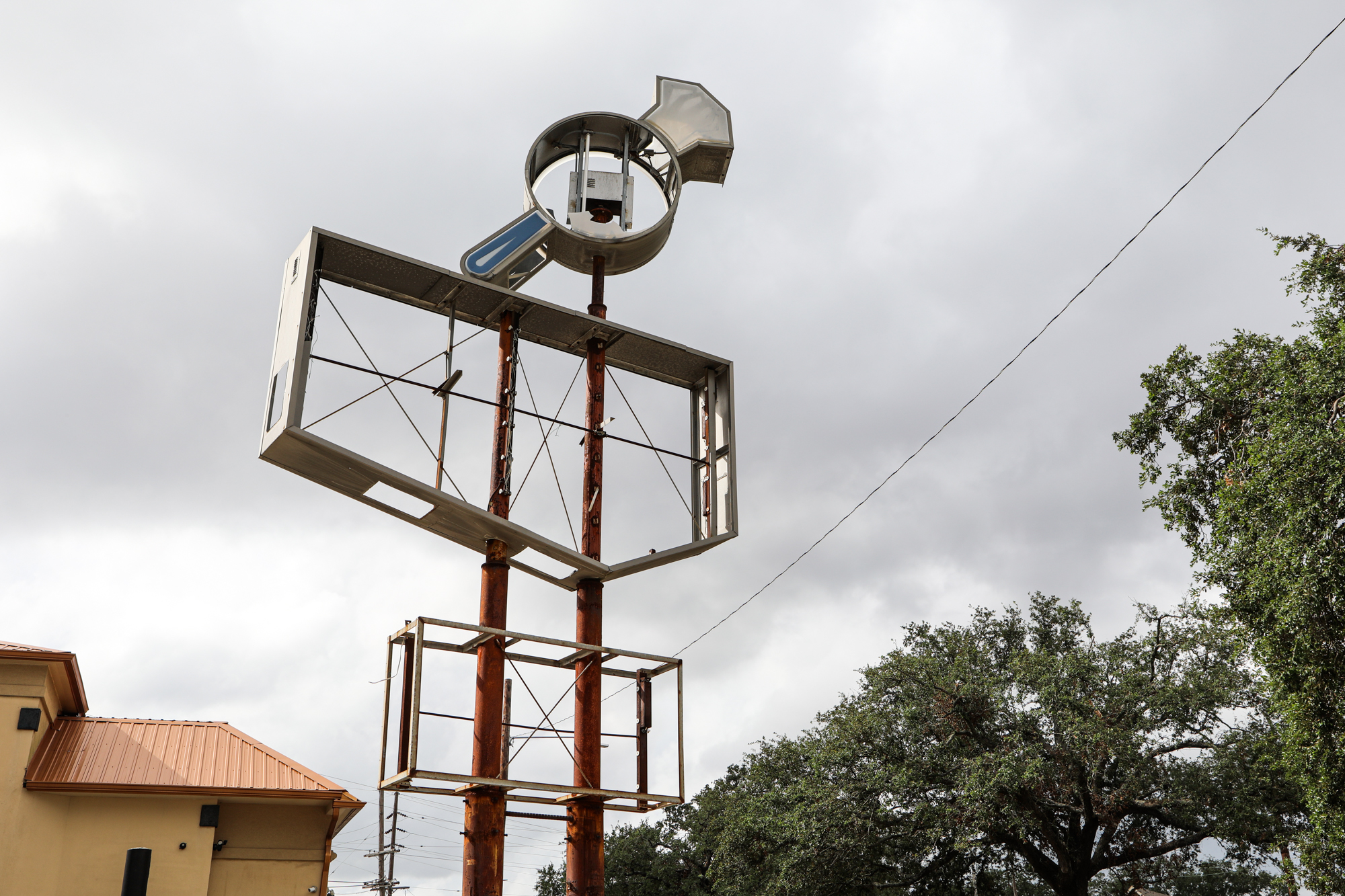 I was going to do a post around the one-month mark but let it get away from me; honestly, things are still about the same two months on. Thousands upon thousands of roofs are still tarped; I’m only just starting to see meaningful repairs done, usually on nicer properties in nicer areas of town. When taking pics, I found myself particularly drawn to all the damaged signs, especially of fast food places. Some beloved establishments have miraculously reopened (Saturn Bar!), while others have announced they’re permanently closing (Kebab!).