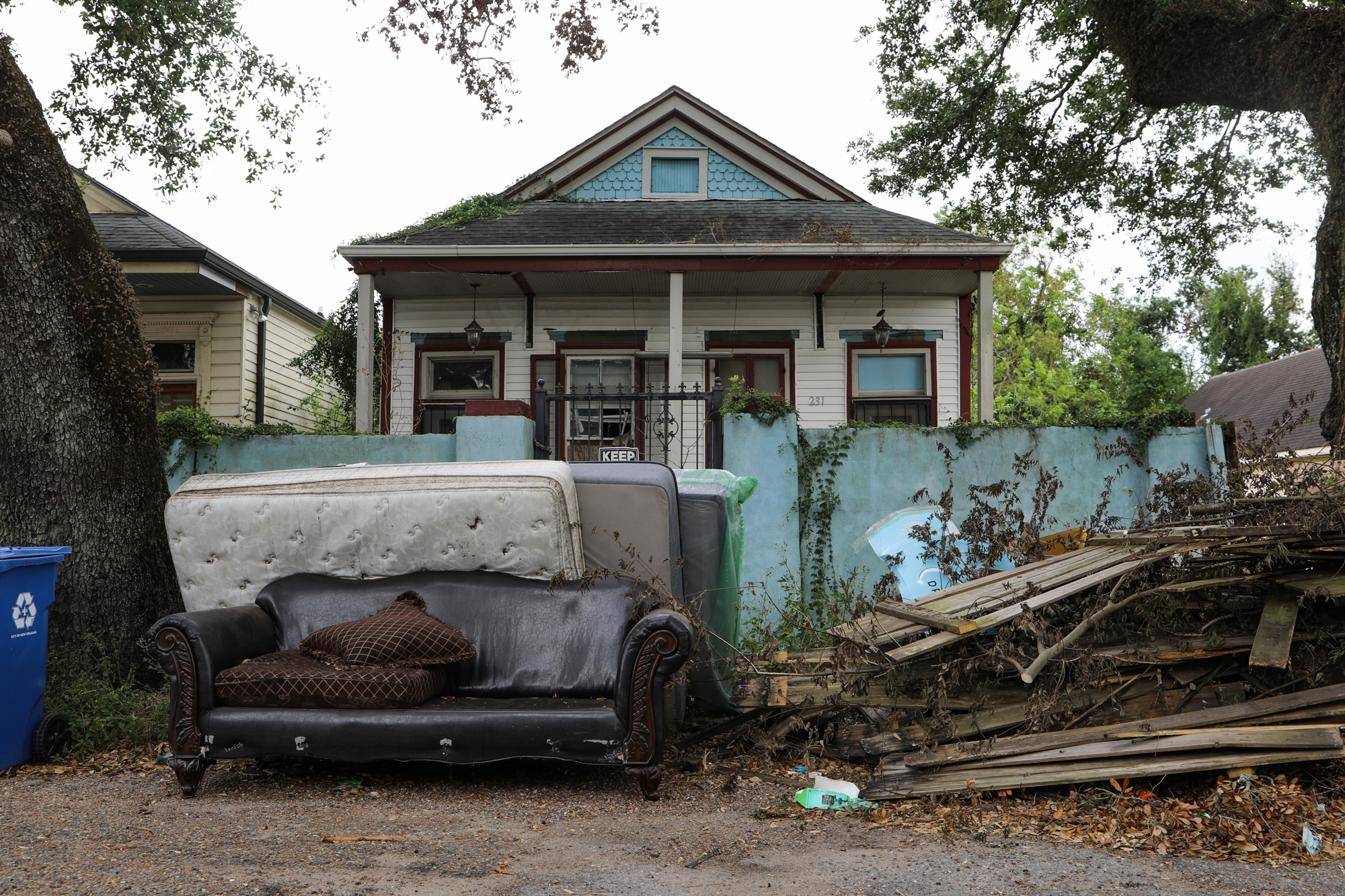 But the trash trucks don’t take everything, only what’s in their branded bins, so the black bags and debris– the couches, mattresses, and tree limbs– sit. A self-drop-off system was set up to resounding “Hell no!!!”s from residents. So the black bags and debris… sit. On neutral grounds and curbsides all over the city, a constant reminder that we’re all only going through the motions of being fine while actually living in some degree of squalor (which, in 2021, was already kind of the case I suppose). Some of the most prominent intersections in the city are still without power; it’s been two months of mayhem and incorrectly observed ad hoc four-way-stops on Poydras.