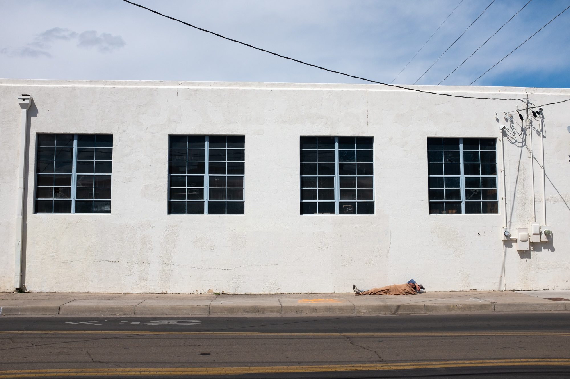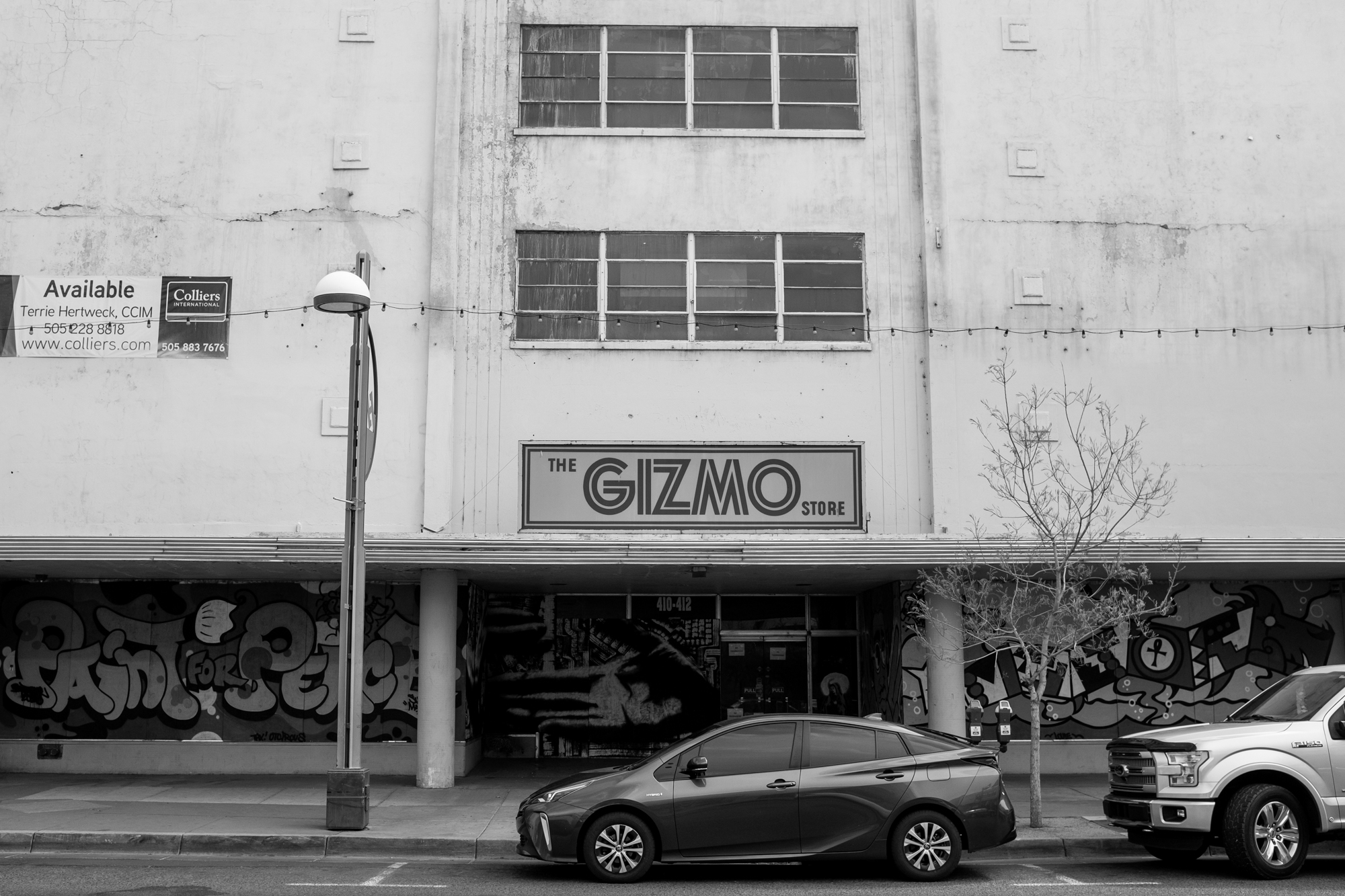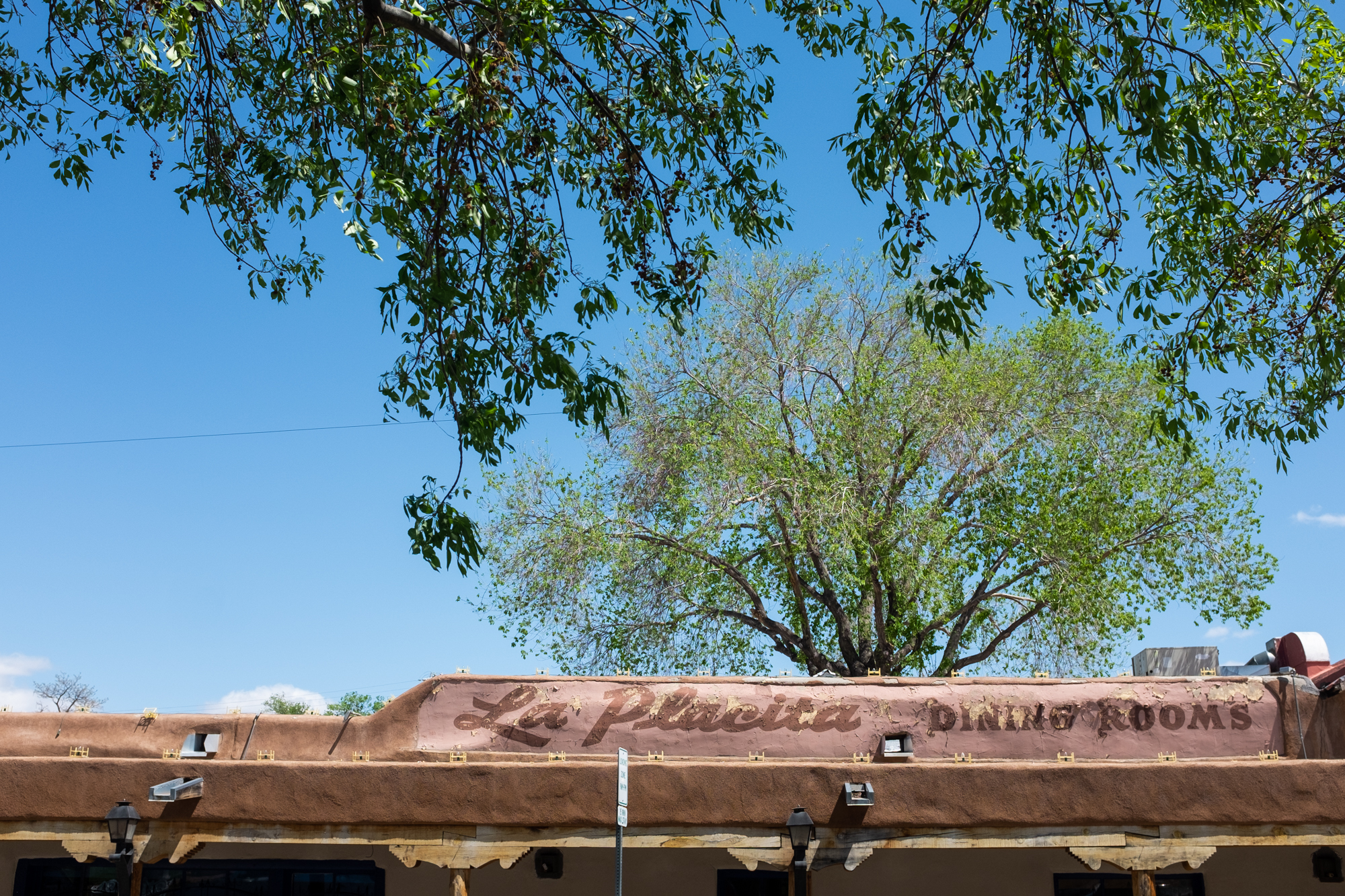 Thus, Route 66 was on my radar once again, and I had an abstract idea to try to recreate the photo. He gave me some help by including the “Carlisle” cross street in the frame, so before dinner I headed out (by car) through the University area to find the shot. I should have brought a longer lens, but some cropping got me pretty close: