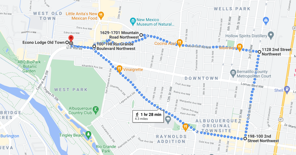But ultimately the clothes were washed and it was time for Ollie and me to take a lengthy photo stroll first through Old Town, then along Mountain Road to the Downtown area, and then homeward bound on Central Ave/Route 66. This site was useful for identifying some of the murals along the way (mural names in filenames).