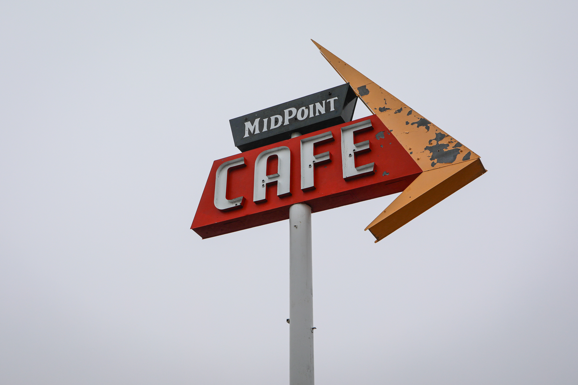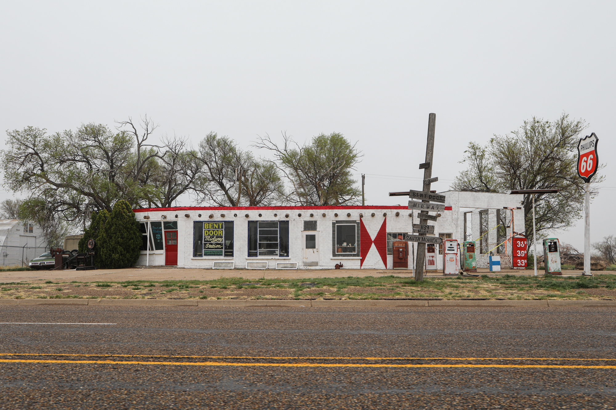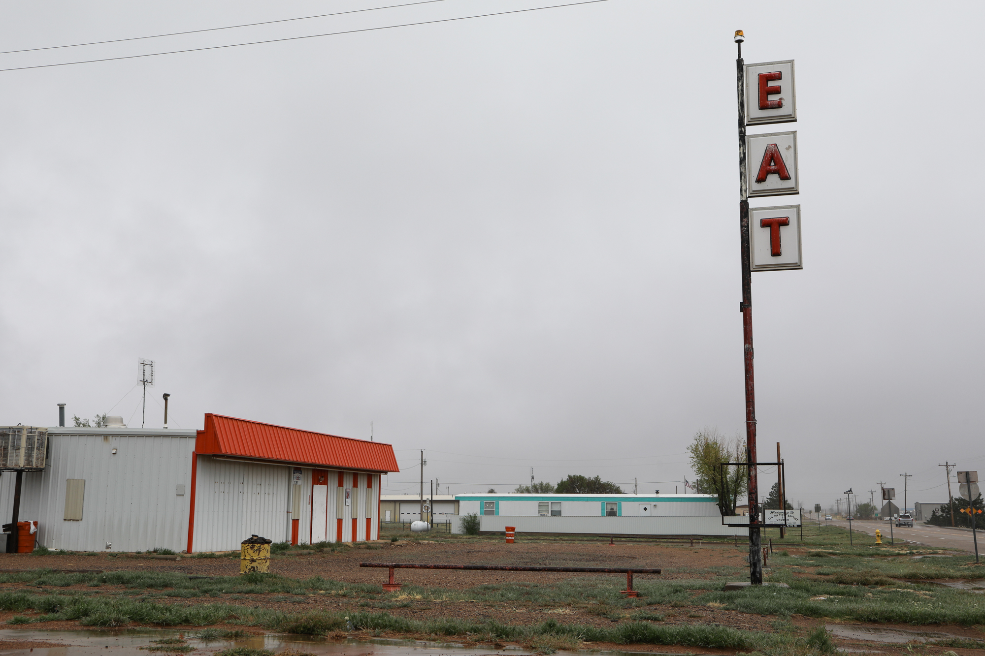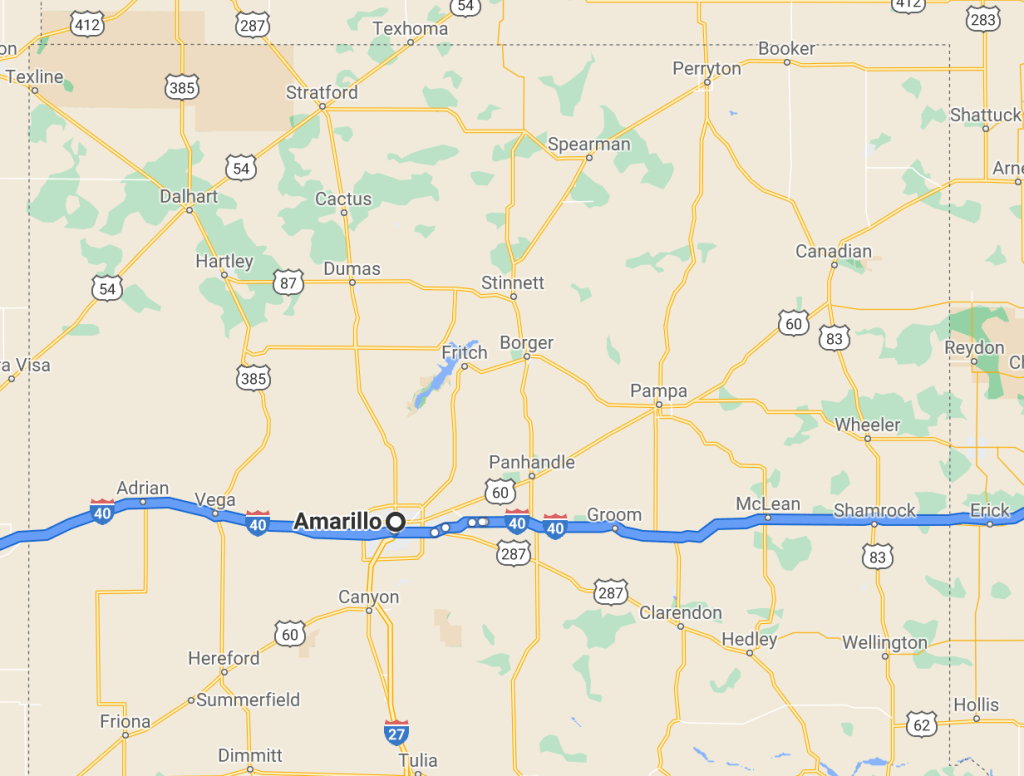 After the luxury of sleeping in a bed two nights in a row it was time to keep moving (Palo Duro Canyon State Park will get its own post). Across the rest of the panhandle I went, enveloped in a spooky mist, making sure to stop in at the famous Midpoint Café in Adrian. I chatted with the waitress for a bit; she said 85% of their business is ordinarily foreigners and they were really eager for the borders to open back up.