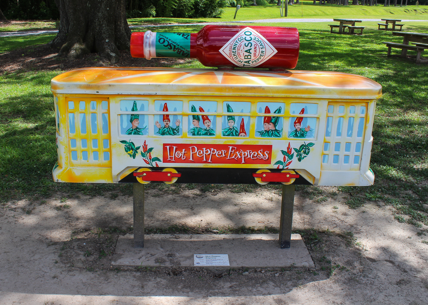 I visited Avery Island– the home of Tabasco Sauce– with Sam and Marjorie on a warm June Tuesday and did a write-up for Very Local NOLA, which you can find here. (Or click the screen clip below.) We visited the Tabasco Factory and then toured the lush Jungle Gardens that had been part of Mr. Tabasco (a.k.a. Ned McIlhenny)’s estate. The first few pictures are from Houma, where we stopped to grab lunch on the way.