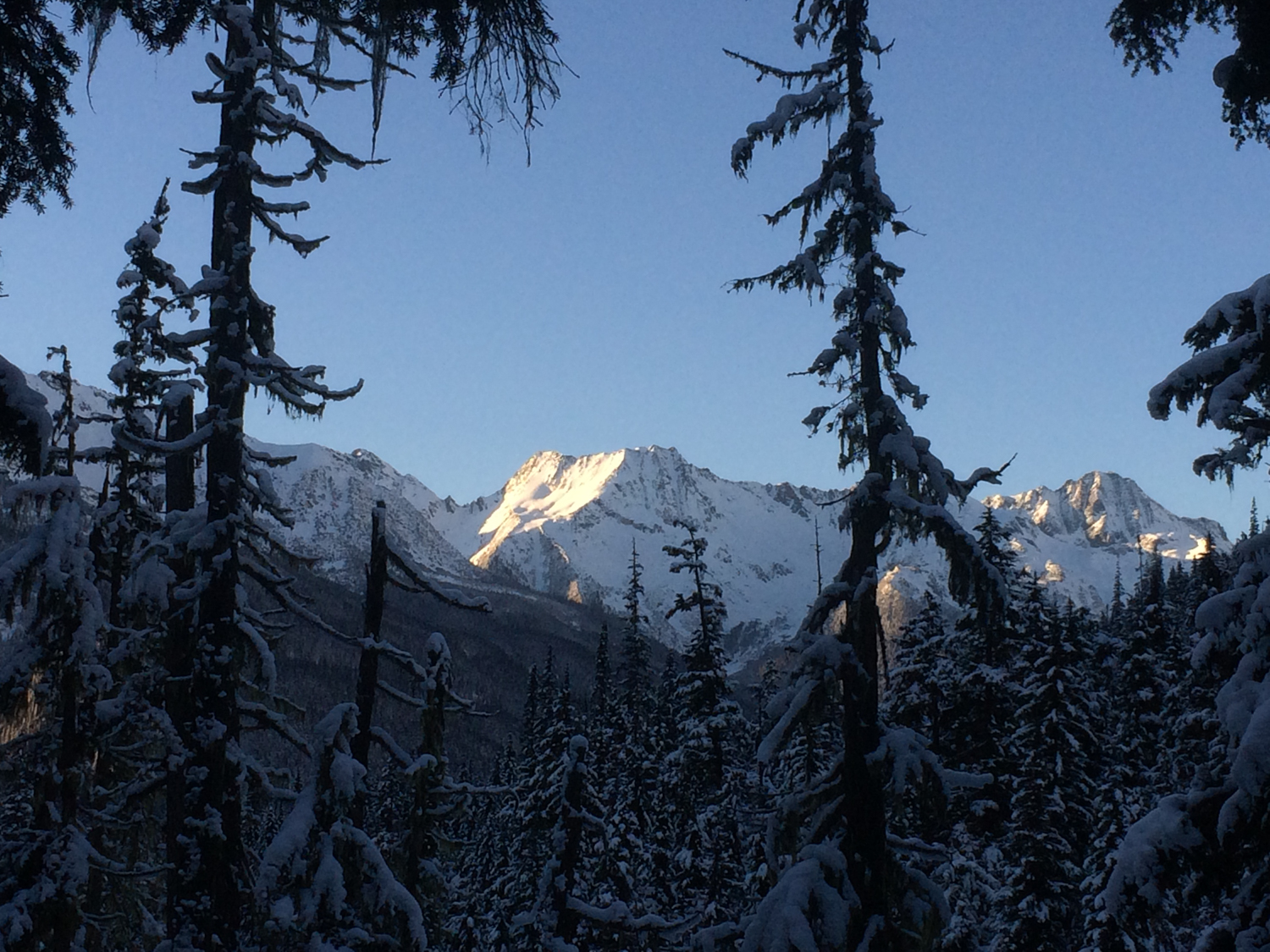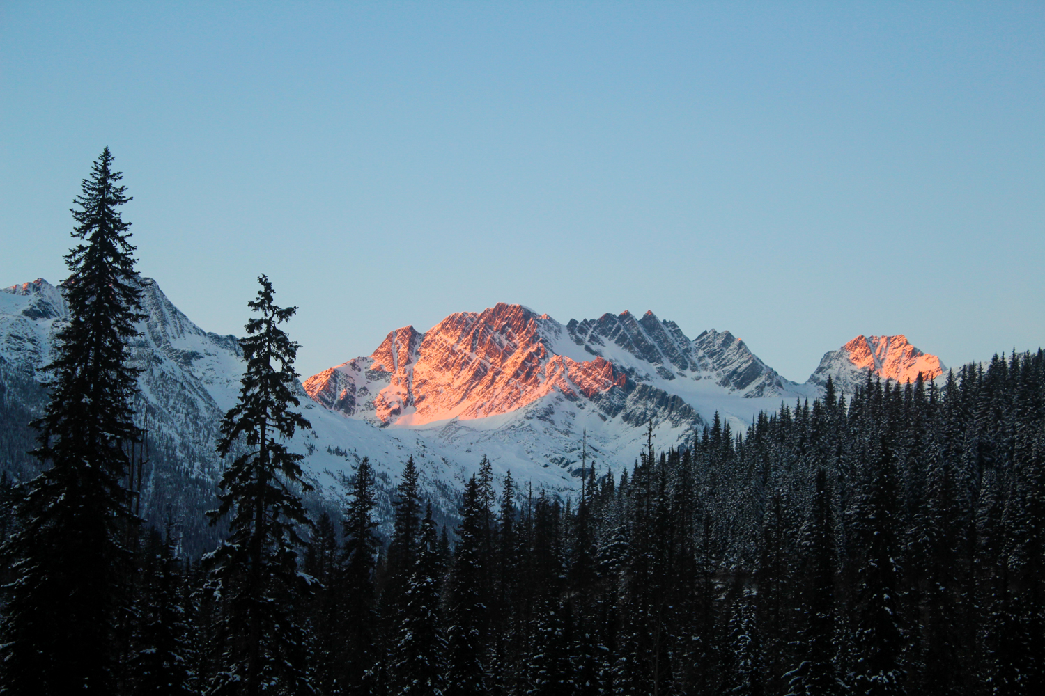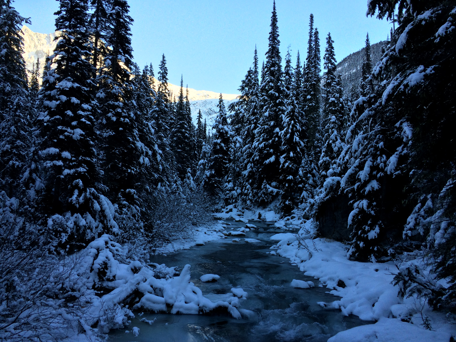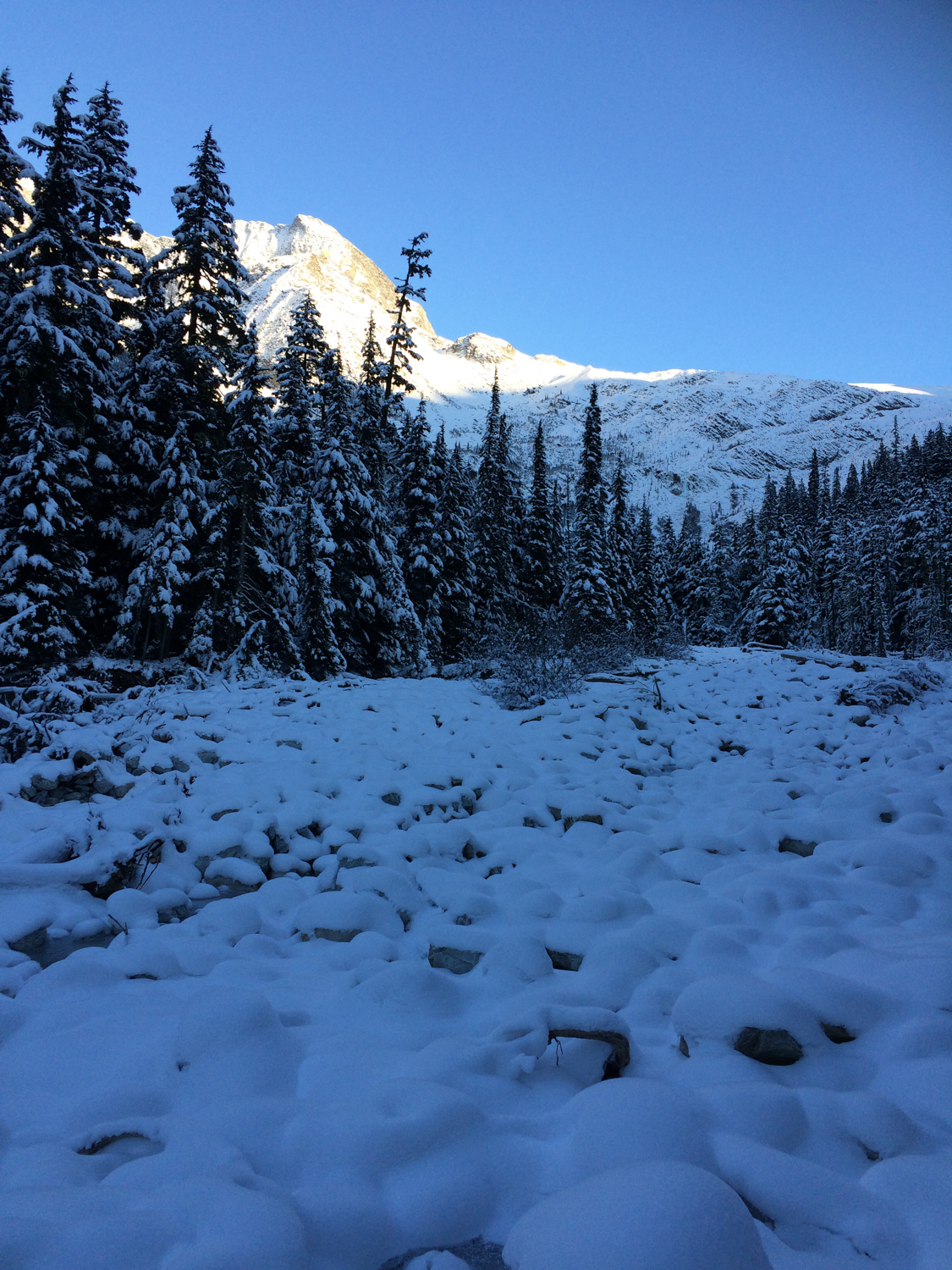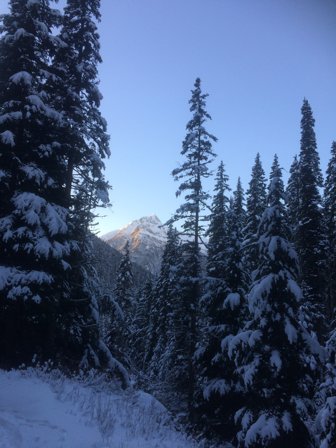 The area had seen a big snowfall, and I wasn’t quite prepared for the gorgeous views of Swan Lake I had from my place the next morning. I stopped through Vernon for a bite to eat (and wound up snagging a Neil Young and a Billie/Ella/Lena/Sarah album from a local record store) then started a really breathtaking day of travel to Golden. I made a pit stop at the one trail of Canada’s Glacier National Park that was available to me (some combination of snow-related trail closures and dog restrictions, I want to say), and it was very cold but totally worth it.