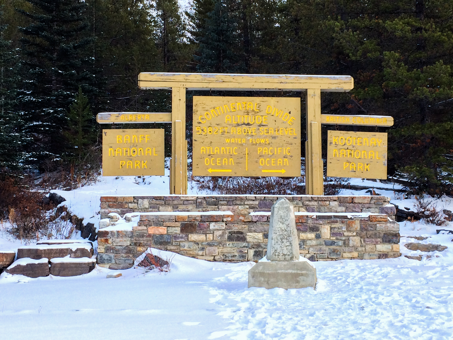 I stayed at the luxurious Rondo Motel in Golden that night and the next. I had to work on the 7th (the day between those two nights) but shut down early enough to take an afternoon jaunt a little further east, through Yoho National Park to Banff. I make a quick stop at frozen Lake Louise and ultimately made it all the way to the Continental Divide, where Banff and Kootenay Parks meet, as do the provinces of British Columbia and Alberta.