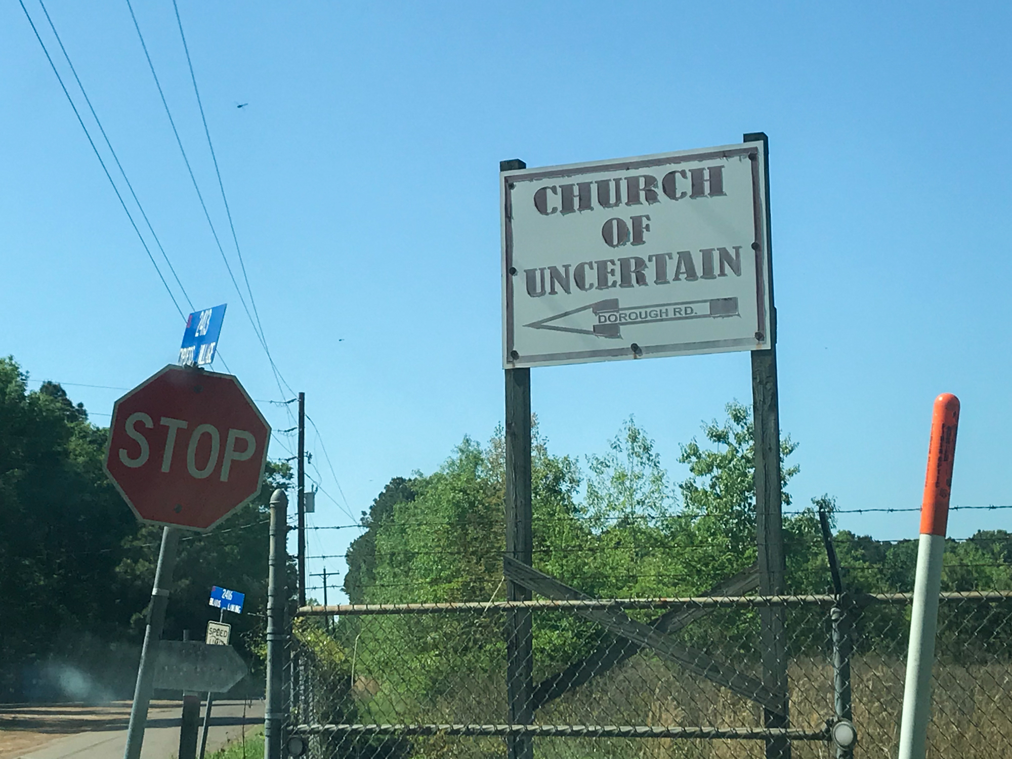Right near the park was a town I felt compelled to check out on account of its noteworthy, wishy-washy name of “Uncertain.” It didn’t disappoint– it boasted an Uncertain Flea Market and, better yet, a Church of Uncertain (appropriately non-denominational). There was also a River Bend Restaurant, where masks were optional and dogs were allowed on the deck– provided the owner carry the dog through the restaurant TO the deck.