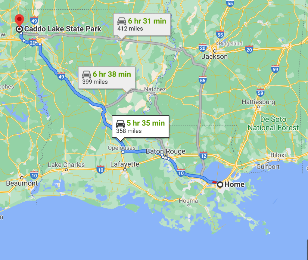 Upon consulting the map I determined Tulsa, Oklahoma to be the most logical place to hop on Route 66. And a logical midpoint of that 10 hour journey turned out to be Caddo Lake State Park, in northeast Texas, just across the Louisiana border. (In fact, the gloomy, scenic cypress swamp made this Louisiana resident feel quite at home.)