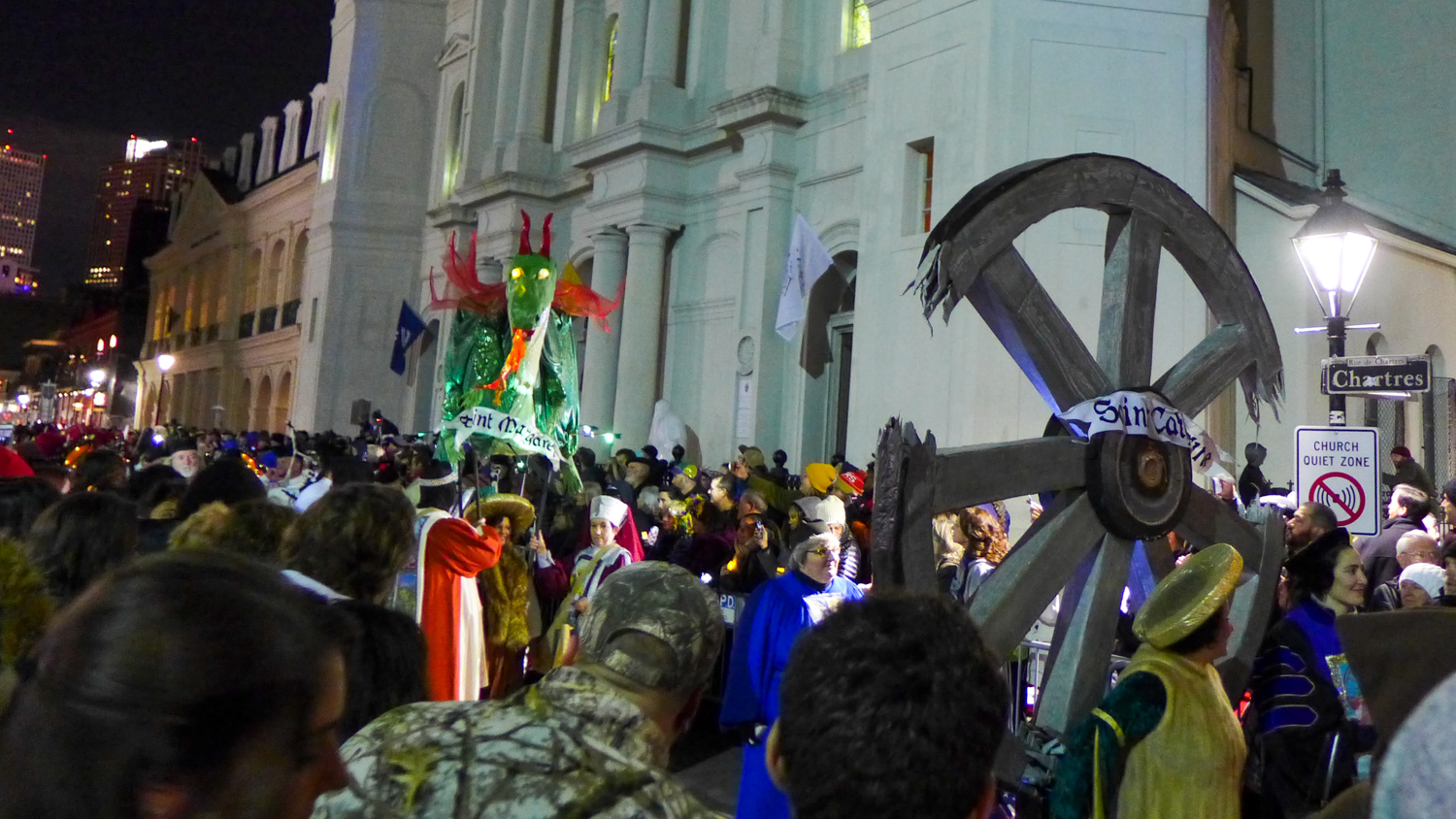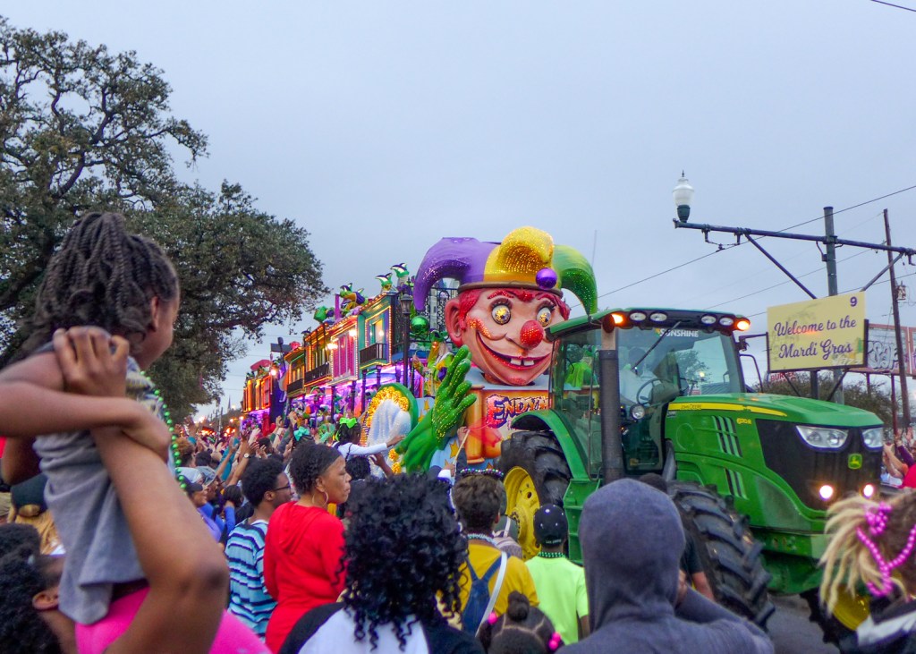 I arrived in New Orleans just in time for a Joan of Arc-themed parade on Twelfth Night, which kicked off the season on January 6, and went on to make an appearance at a number of the other celebrations that followed: the raunchy Krewe du Vieux parade, this year lambasting the Sewerage & Water Board and disgraced local restaurateur Josh Besh; the Babylon and Chaos and Muses parades (to name a few of the spectacles that come rolling and trumpeting down St. Charles Street in the week leading up to Mardi Gras); Endymion, a Saturday parade that begins in daylight hours and keeps chugging along Orleans Avenue long after nightfall.