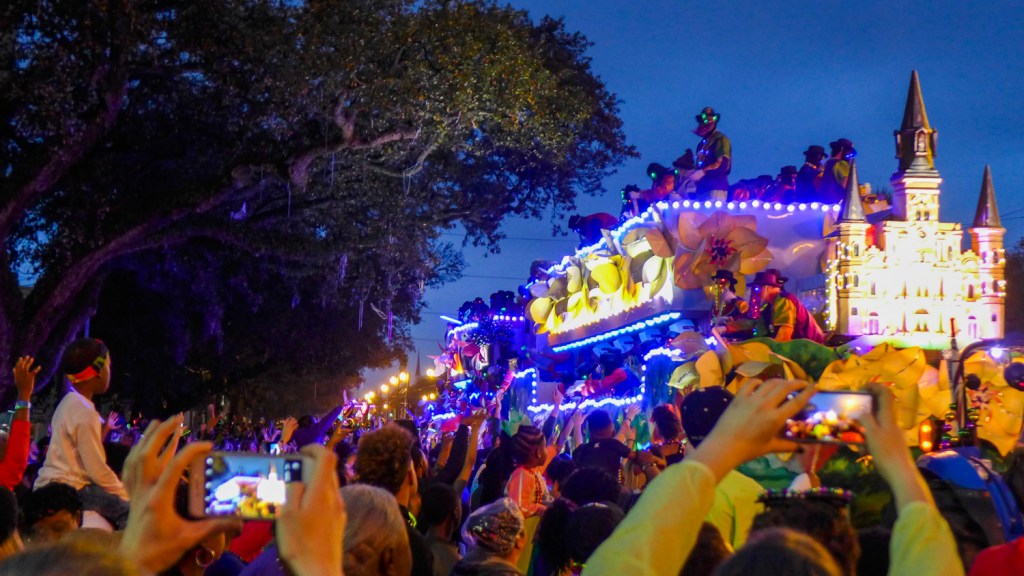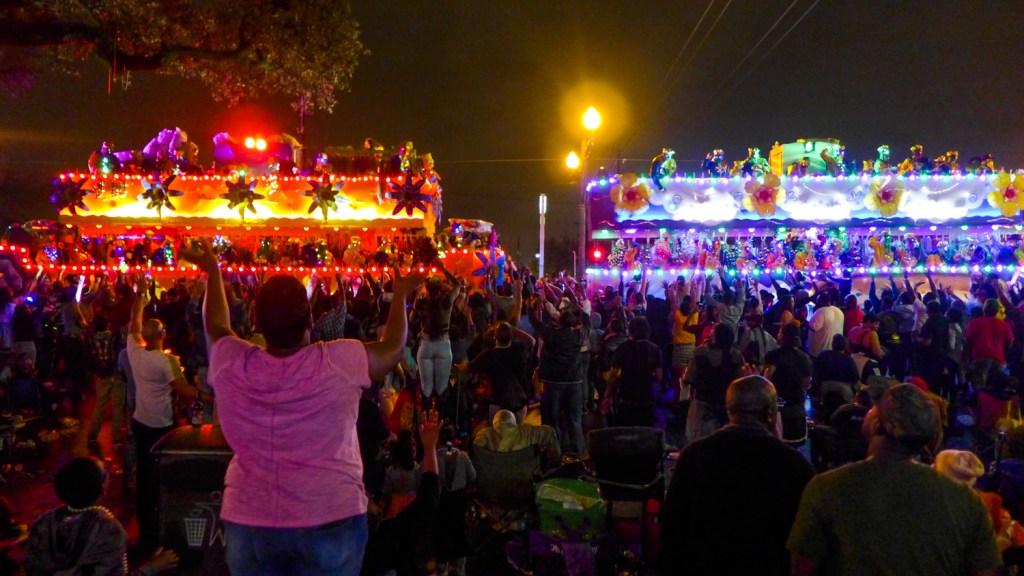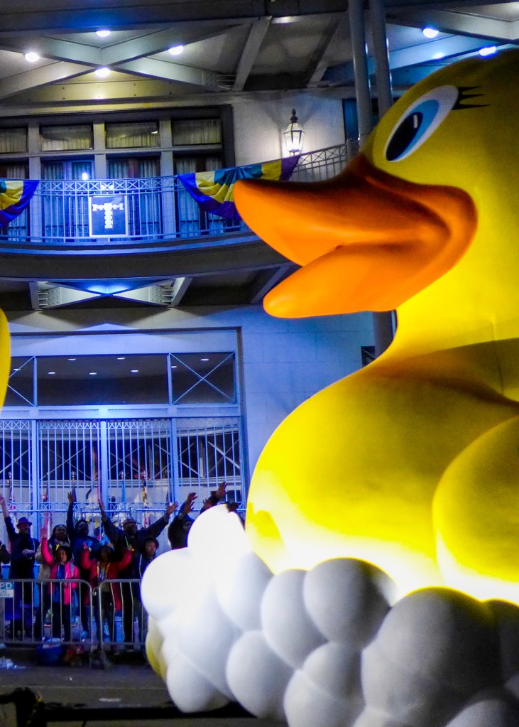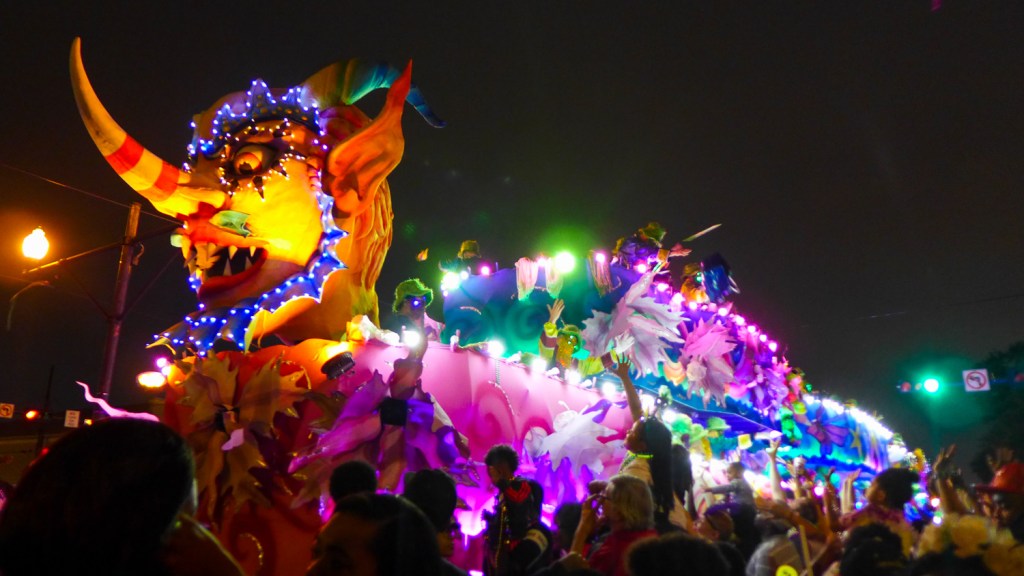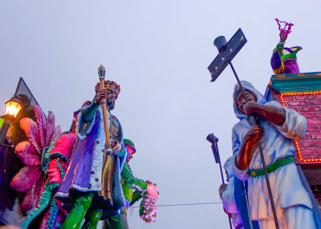 I tell everyone that I was prepared to be underwhelmed by the Carnival/Mardi Gras experience– to find it gimmicky or touristy or otherwise played out. Instead, I found myself utterly sucked into and enchanted by it. The enthusiasm, creativity, humor, and all-around fun of the events and their attendees made even a couple rain-soaked nights one heck of a good time. (And don’t worry– I wound up with plenty of swag.)
