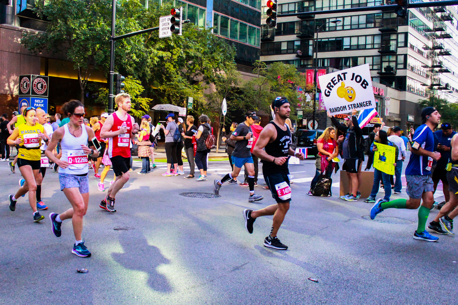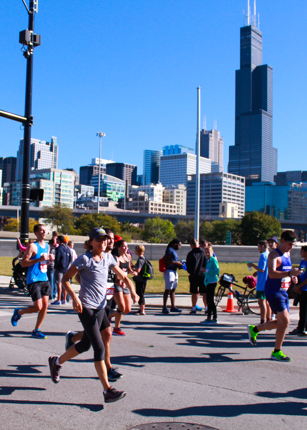 The timing worked out perfectly for me to pass through Chicago as another dear old friend (the sister of the dear old friend in Steubenville, as it happens) was running her first marathon (with the ‘Guad Squad,’ as it happens). Our moms both came to town too and it was just a lot of fun. The course was such that we were able to catch them about four times along the way, and it was a beautiful day. Then it was off to Wisconsin!