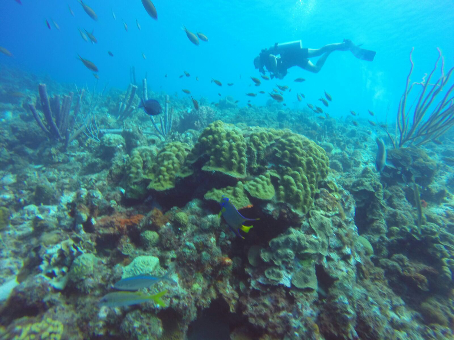 I selected Red Snapper Diving as my dive shop– it was one man, Rene, operating out of his house and made for a unique experience, but also a great one as I was the only diver on my first day. We did shore dives (my first time doing so) from various beautiful beaches on the southern coast of the island.