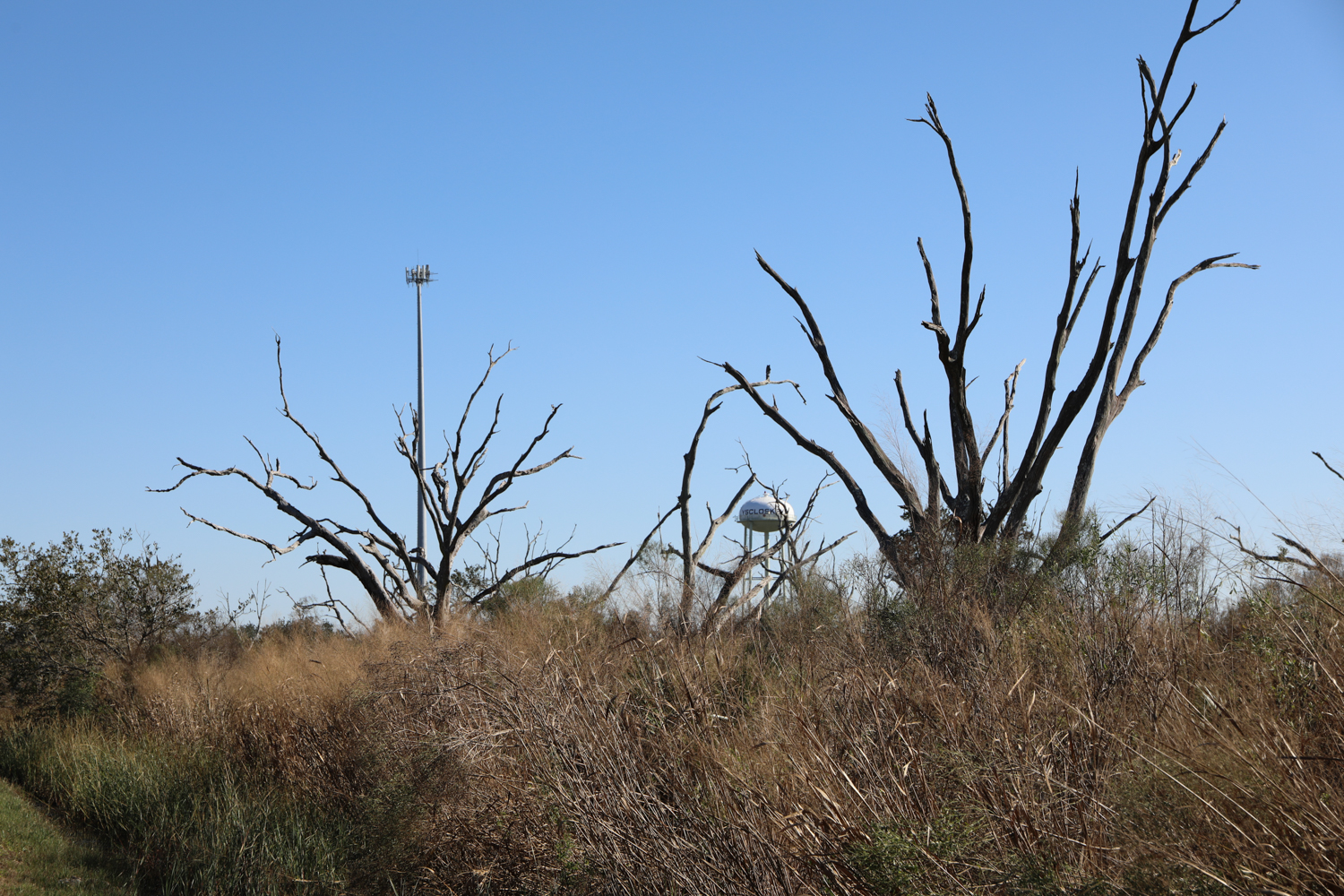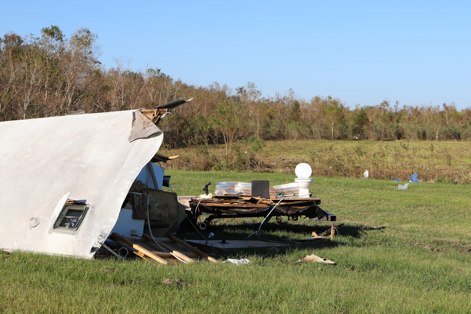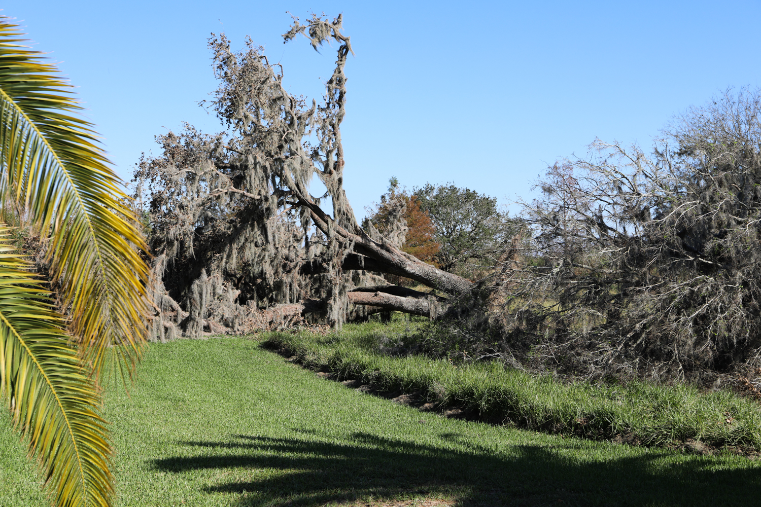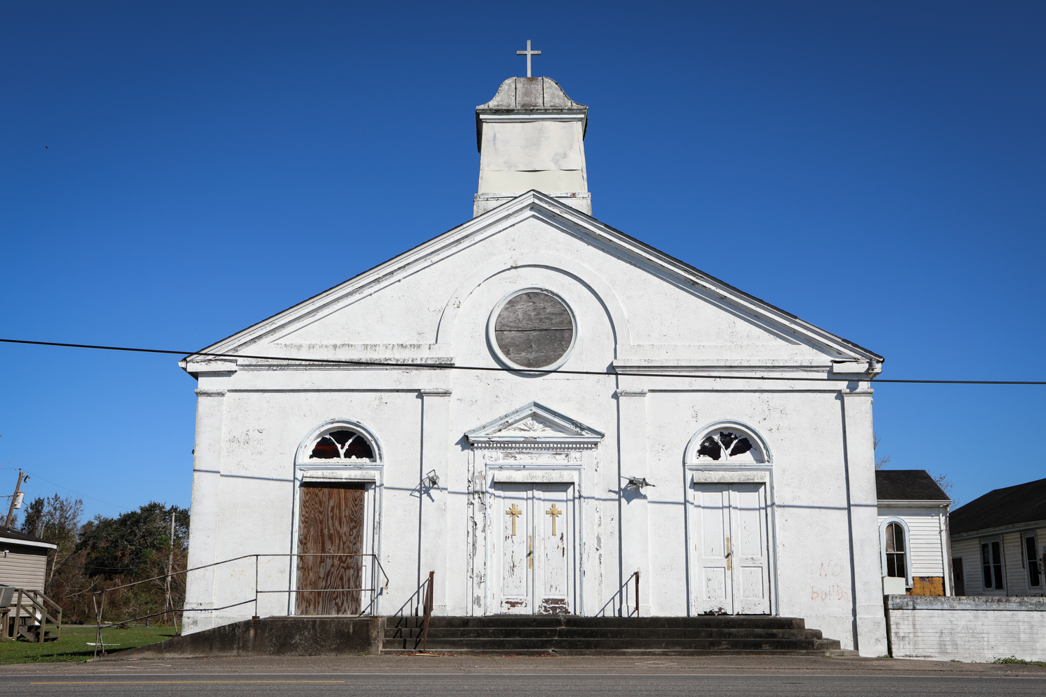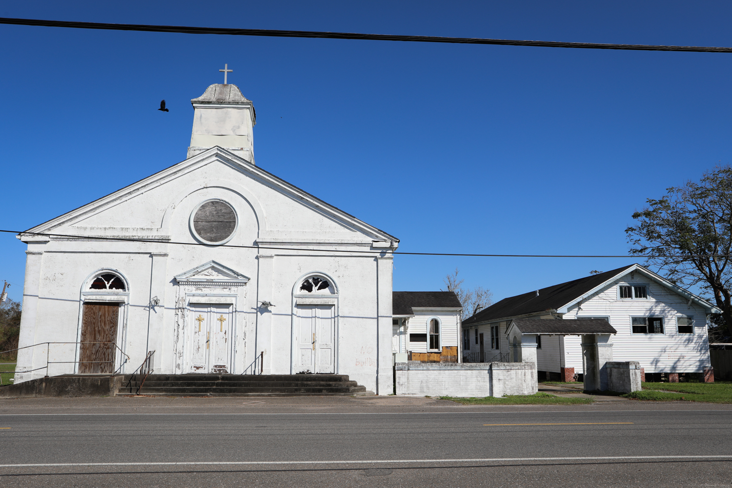 It was, as predicted, an interesting landscape of live oaks, Spanish moss, gnarled cypresses, and reflective waterways. We were treated to appearances by a number of waterbirds, and the photogenic trappings of a sportsman’s life on the bayou. What we were unprepared for were the signs of devastation from, I would assume, Hurricane Zeta (as the other seven named storms to barrel through the Gulf this year miraculously dodged this region). There were at least a dozen– maybe closer to two– upended trailers and RVs splintered along a two-mile stretch of Route 46. The metal roofs of boat slips were curled up on themselves like the lids of sardine tins. The “Baba Yaga houses” (as my friend so enthusiastically identified them throughout the afternoon) on their lofty stilts, so adept at avoiding floodwaters, proved no match for high winds in many cases.