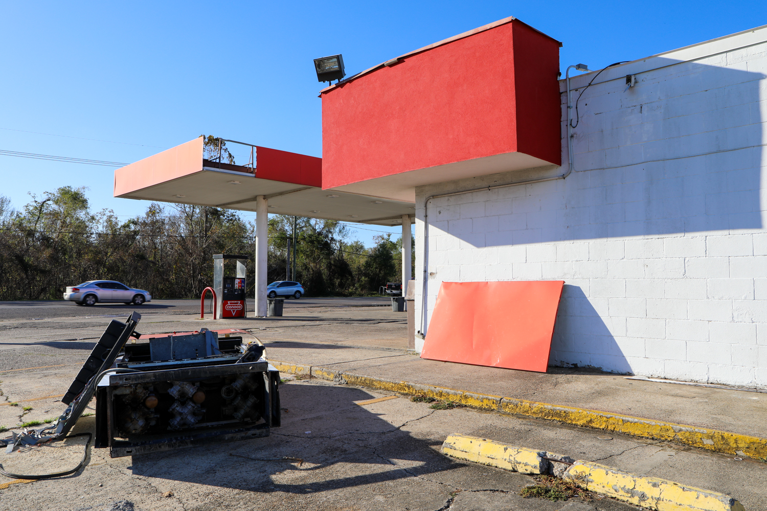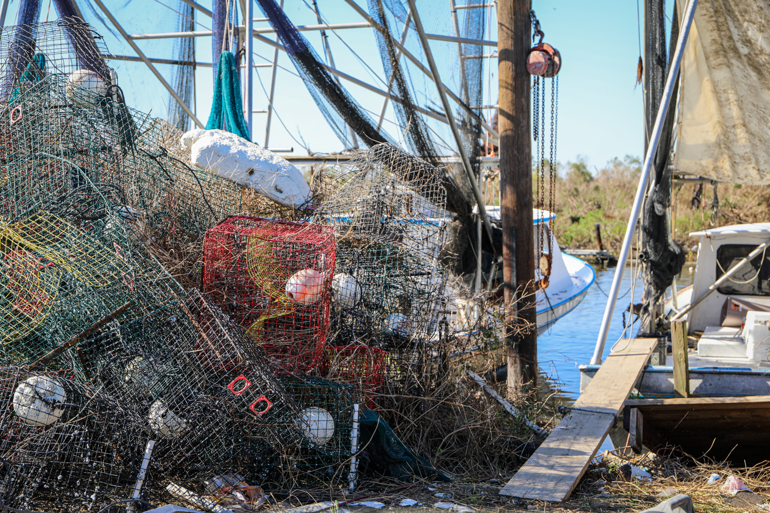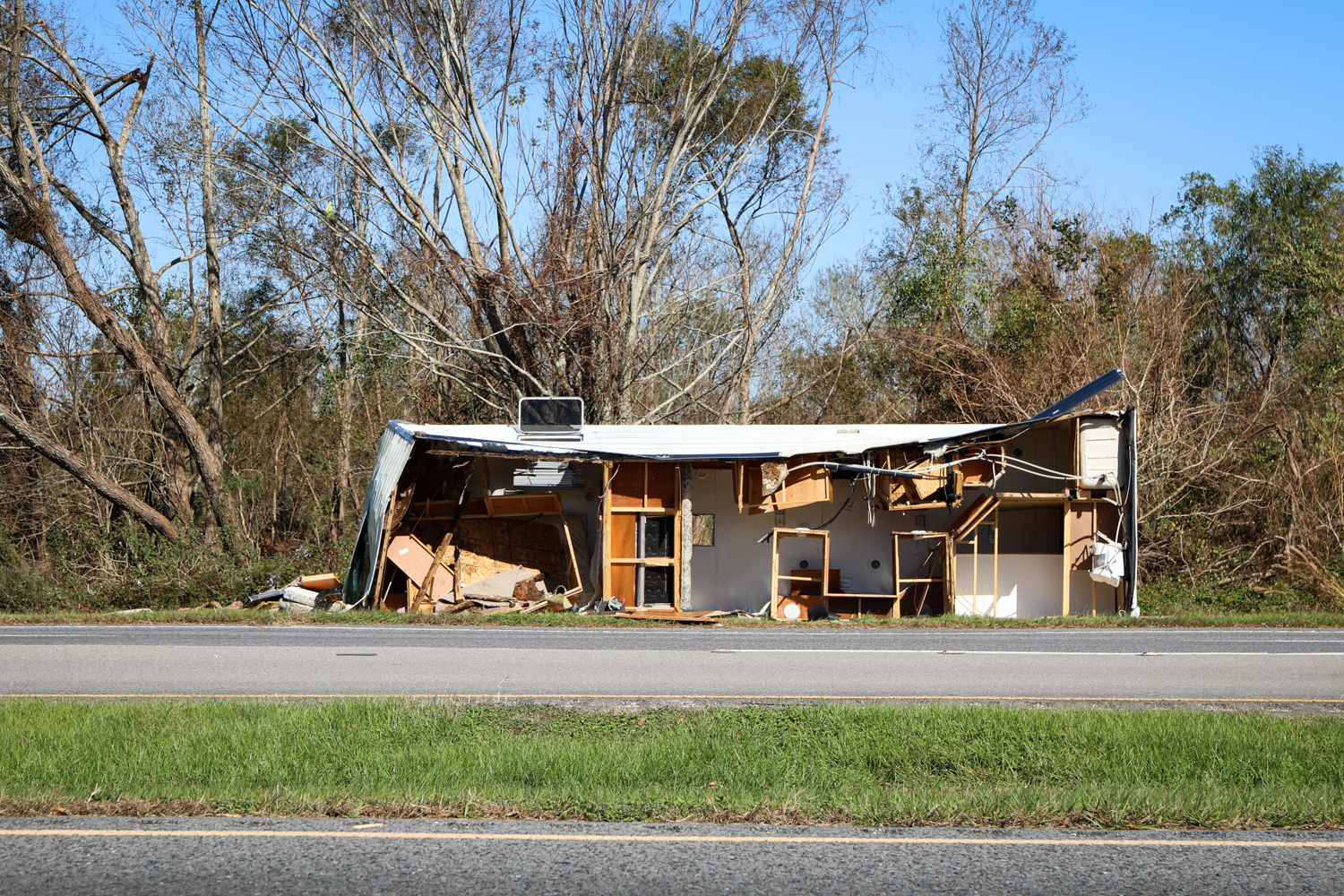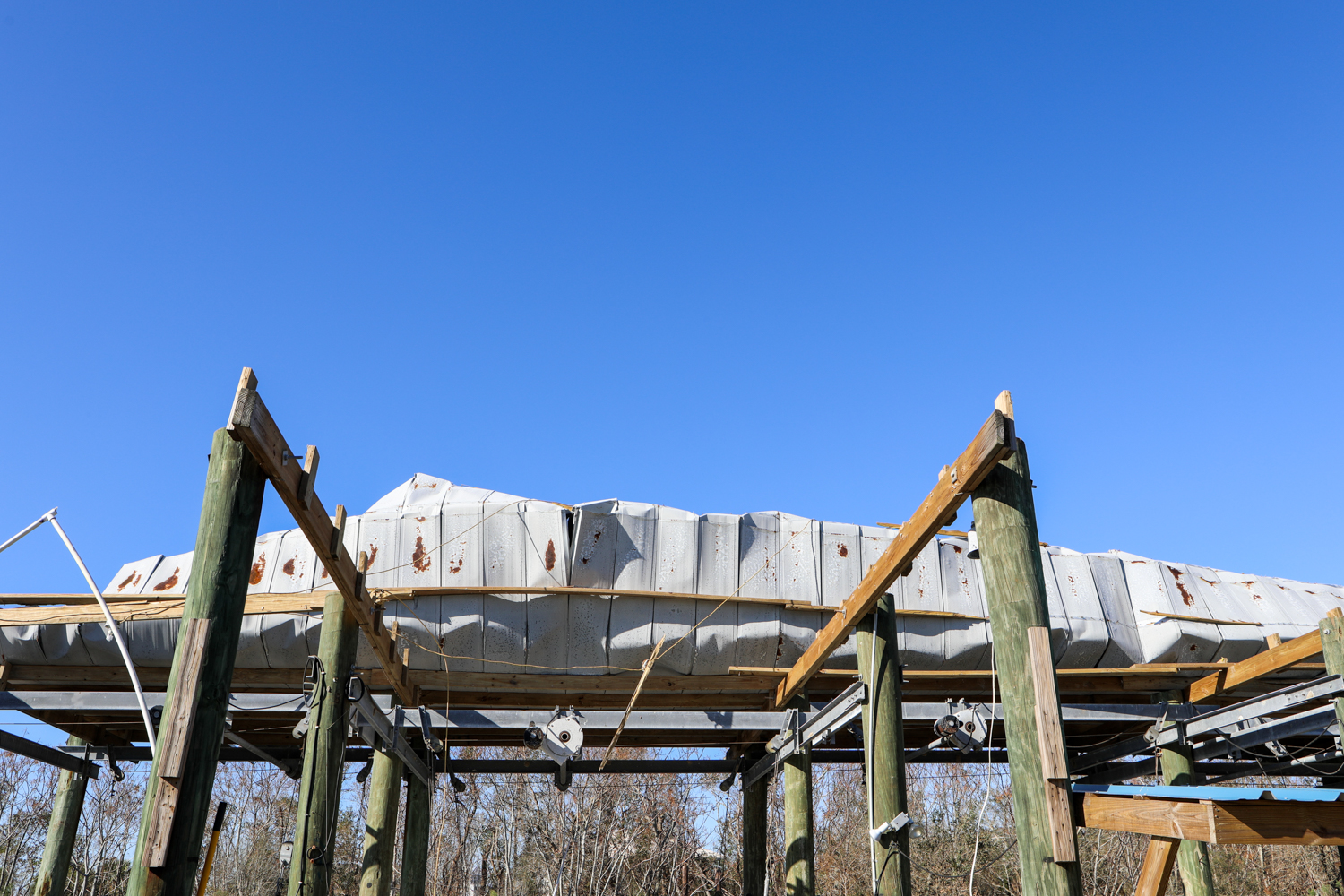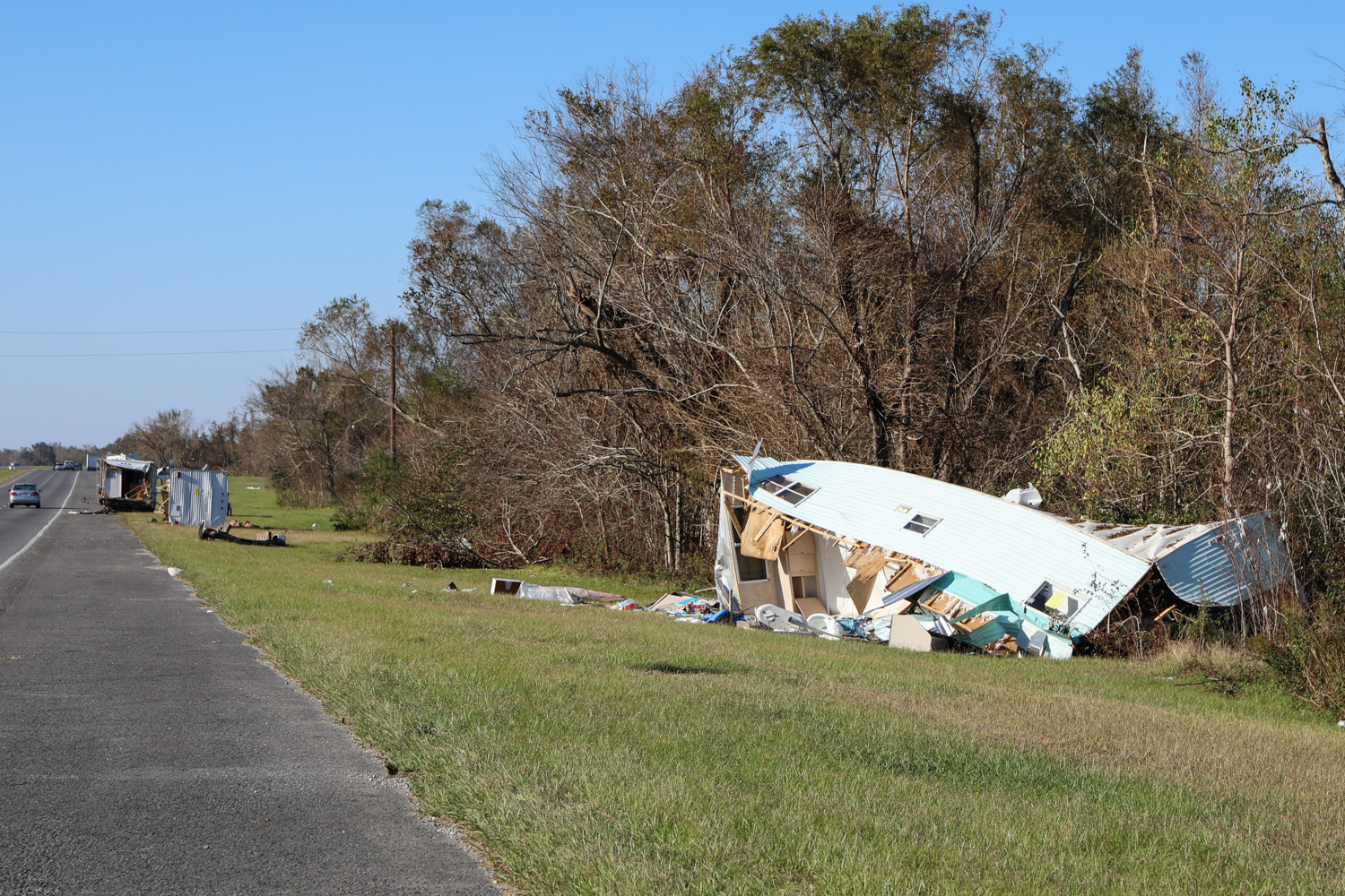 It was, as predicted, an interesting landscape of live oaks, Spanish moss, gnarled cypresses, and reflective waterways. We were treated to appearances by a number of waterbirds, and the photogenic trappings of a sportsman’s life on the bayou. What we were unprepared for were the signs of devastation from, I would assume, Hurricane Zeta (as the other seven named storms to barrel through the Gulf this year miraculously dodged this region). There were at least a dozen– maybe closer to two– upended trailers and RVs splintered along a two-mile stretch of Route 46. The metal roofs of boat slips were curled up on themselves like the lids of sardine tins. The “Baba Yaga houses” (as my friend so enthusiastically identified them throughout the afternoon) on their lofty stilts, so adept at avoiding floodwaters, proved no match for high winds in many cases.
