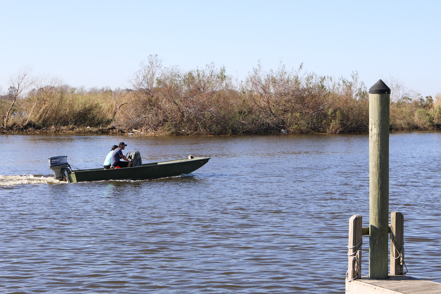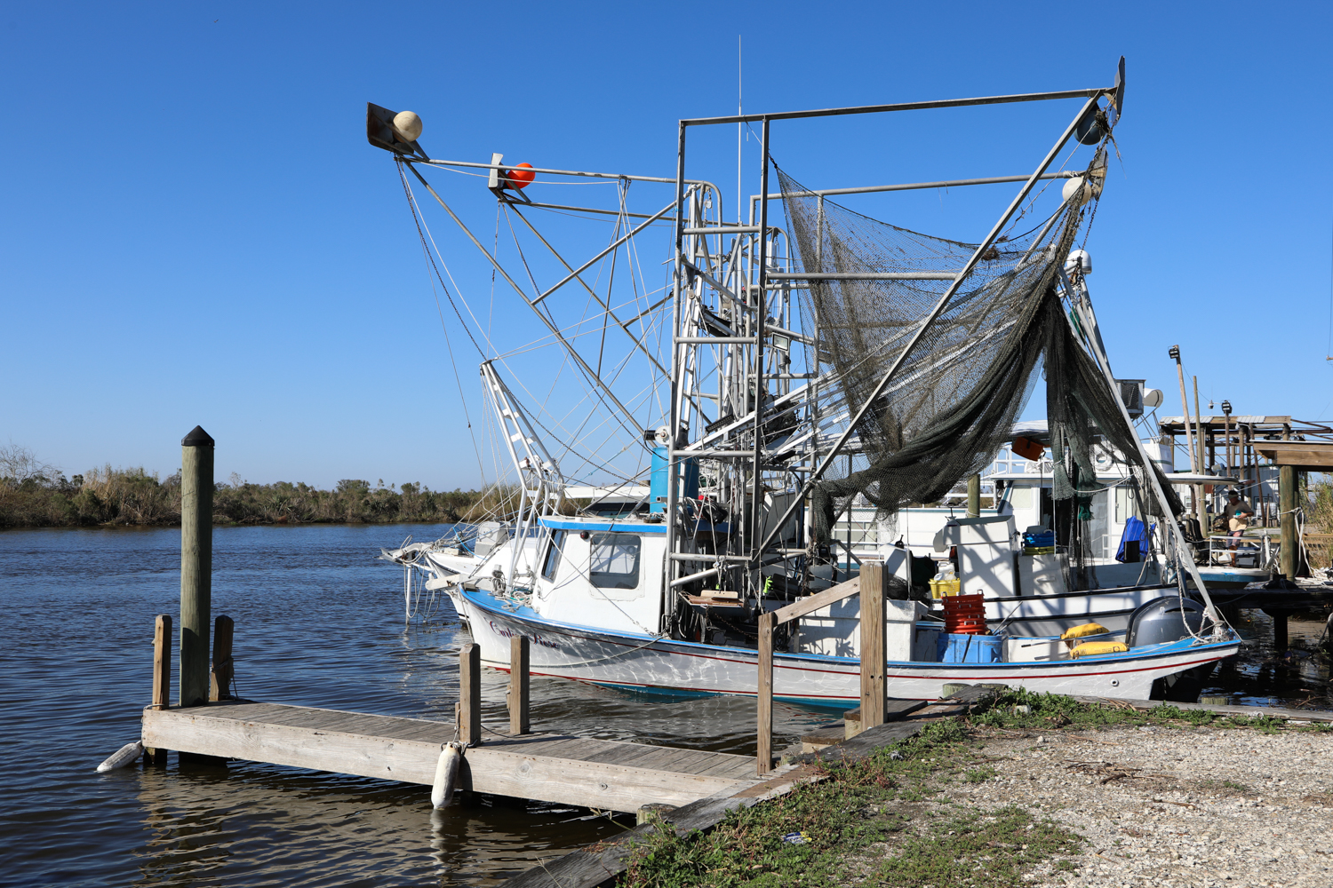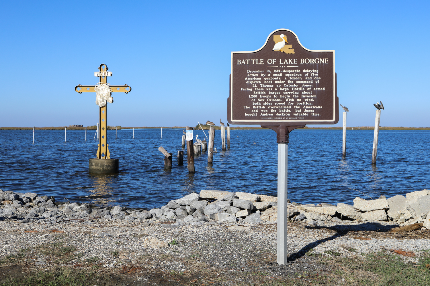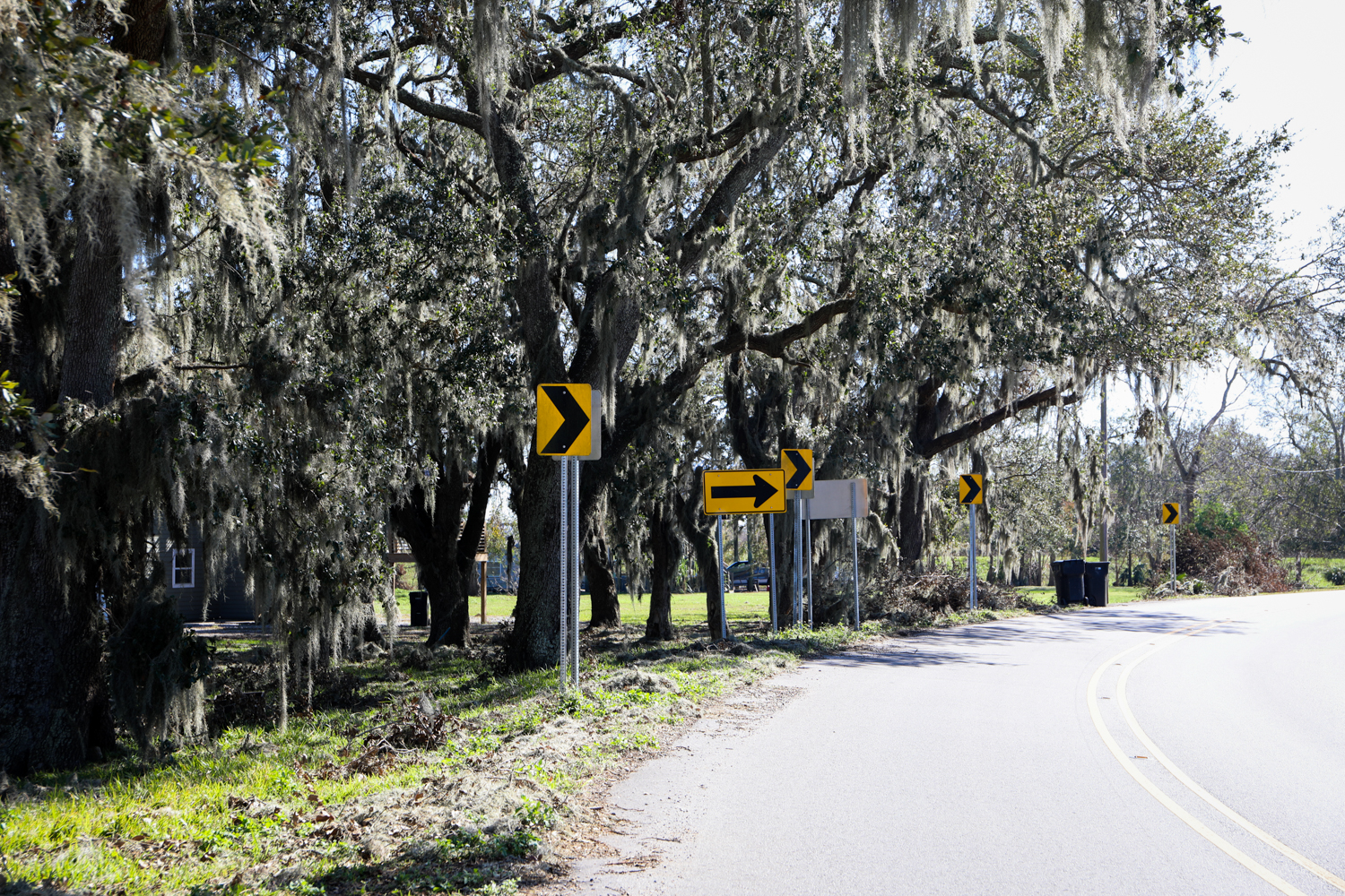 Route 46 follows the Mississippi from New Orleans, then cuts East as the Mississippi veers briefly back West toward English Turn. It’s joined by Route 300, which carries on South to its terminus: a town called Delacroix. (Well, it’s called Delacroix on maps, but the welcome sign identifies it as Delacroix Island, est. 1782. It’s not an island, but it was only reachable by boat until the 1930s so surely felt like one.) You have to really zoom in to see that Route 46 can indeed take you further East, to a town called Shell Beach that appears at first glance inaccessible in the sea of green that is the receding coast.