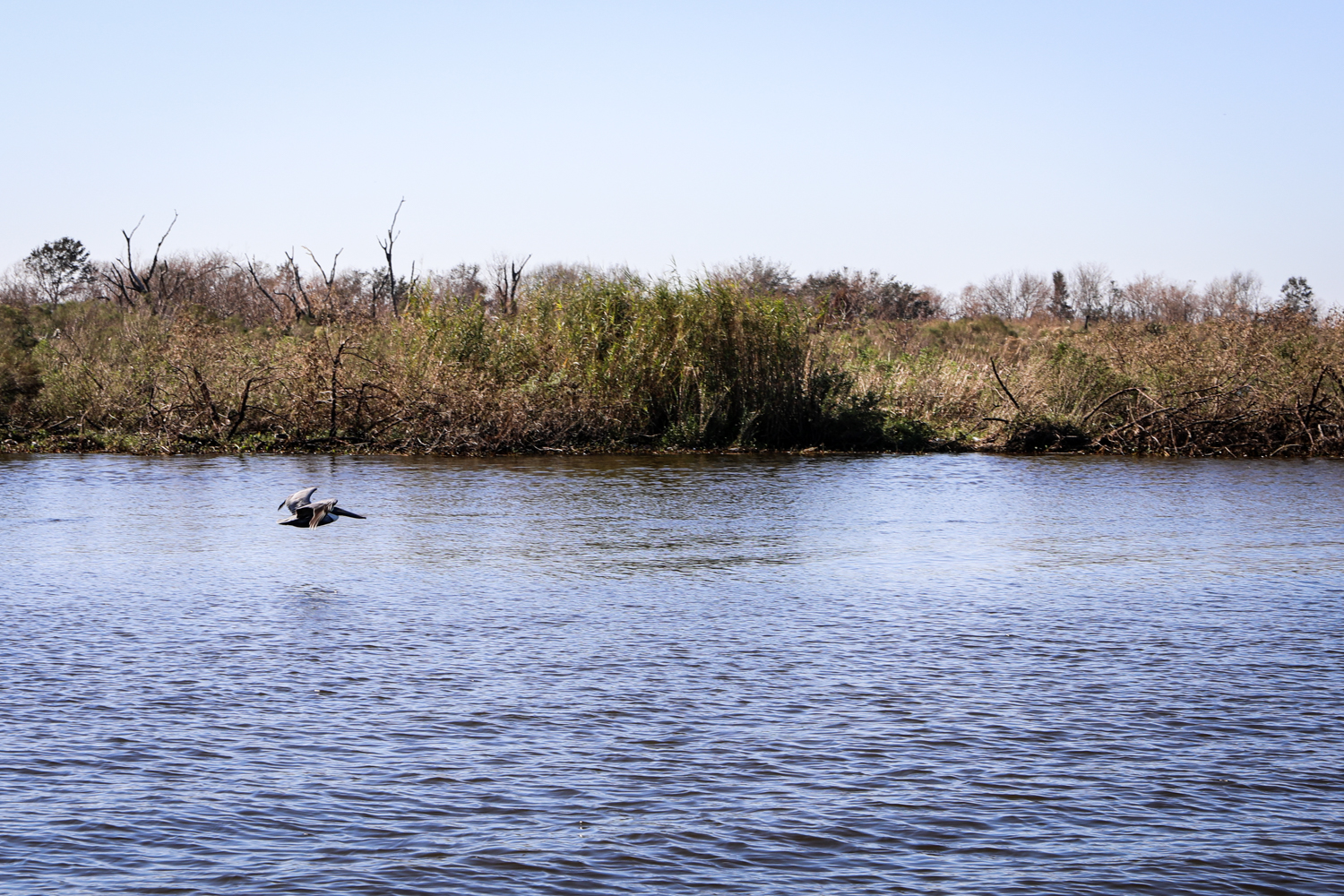 I looked at the map of Louisiana– said to be losing its distinguishable boot shape (though perhaps not to the degree that that article suggests)– and zoomed in on the moss-colored coast; flecked with blue until it’s the blue that’s flecked with moss, and then it’s all just Gulf. How far could one travel by car before having to switch to more buoyant measures?, I wondered.