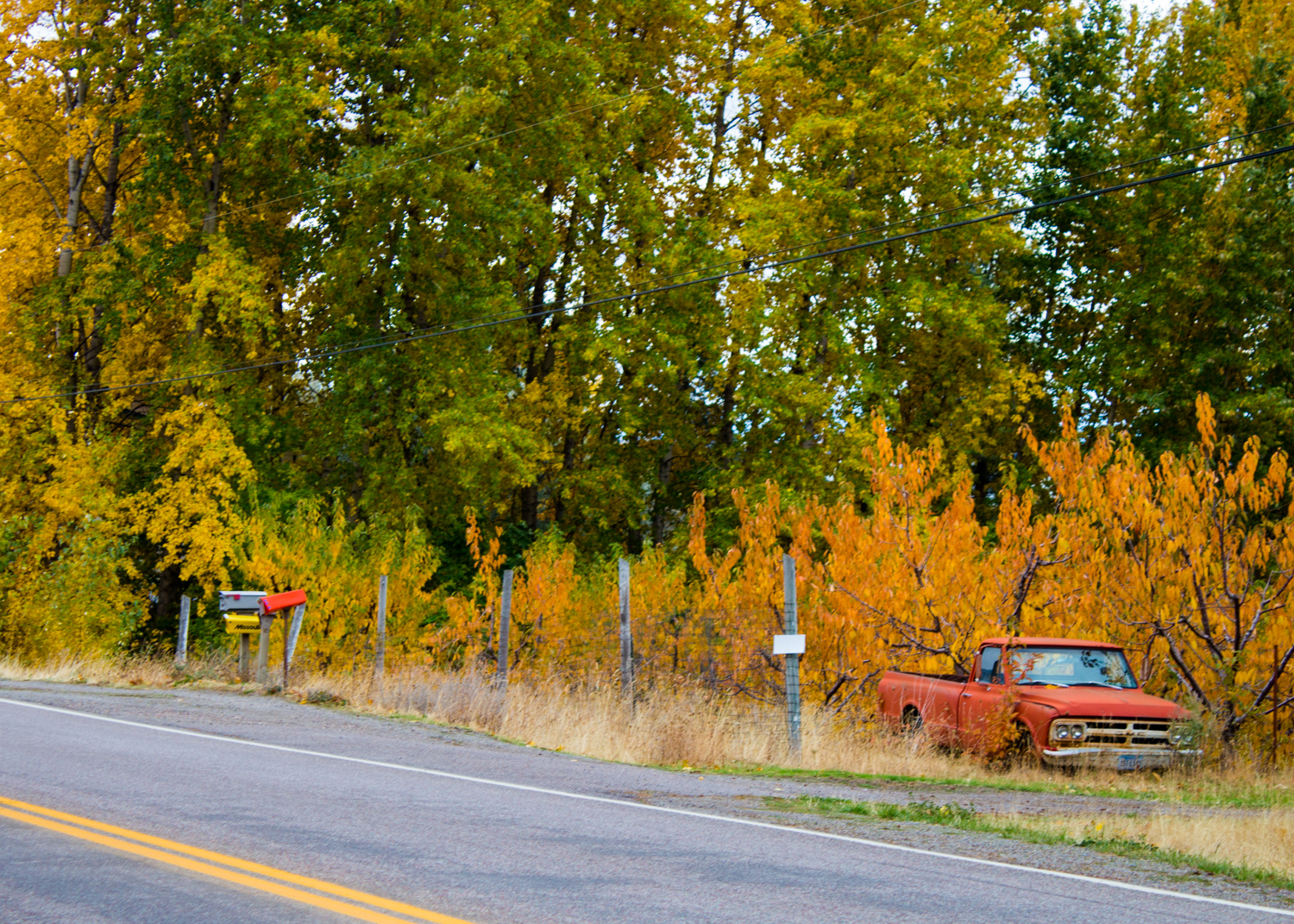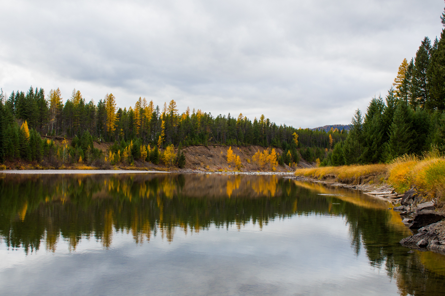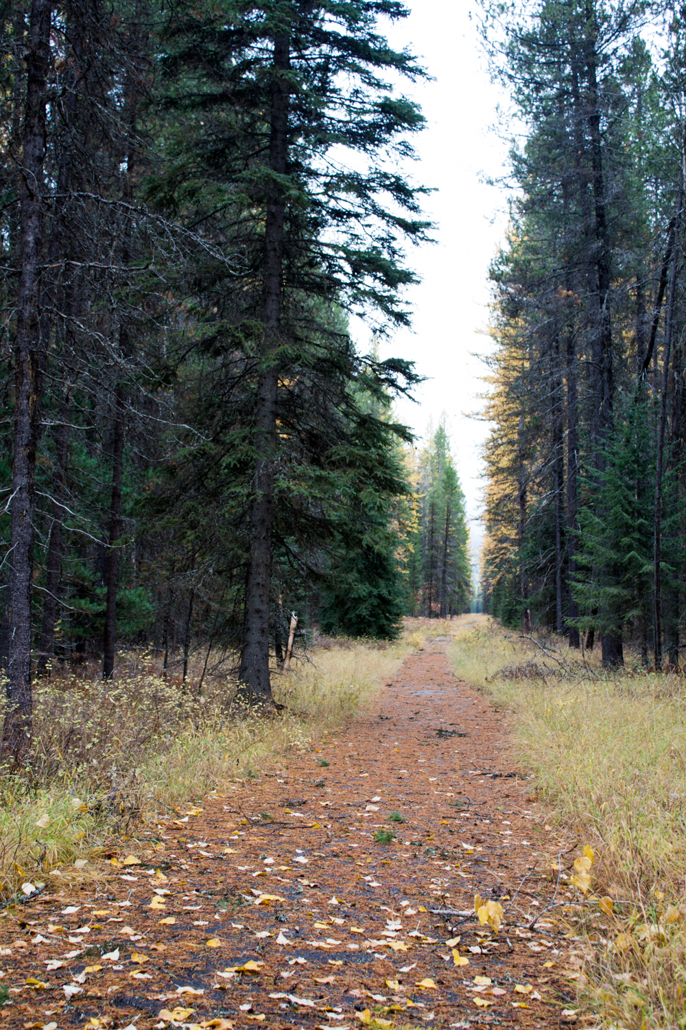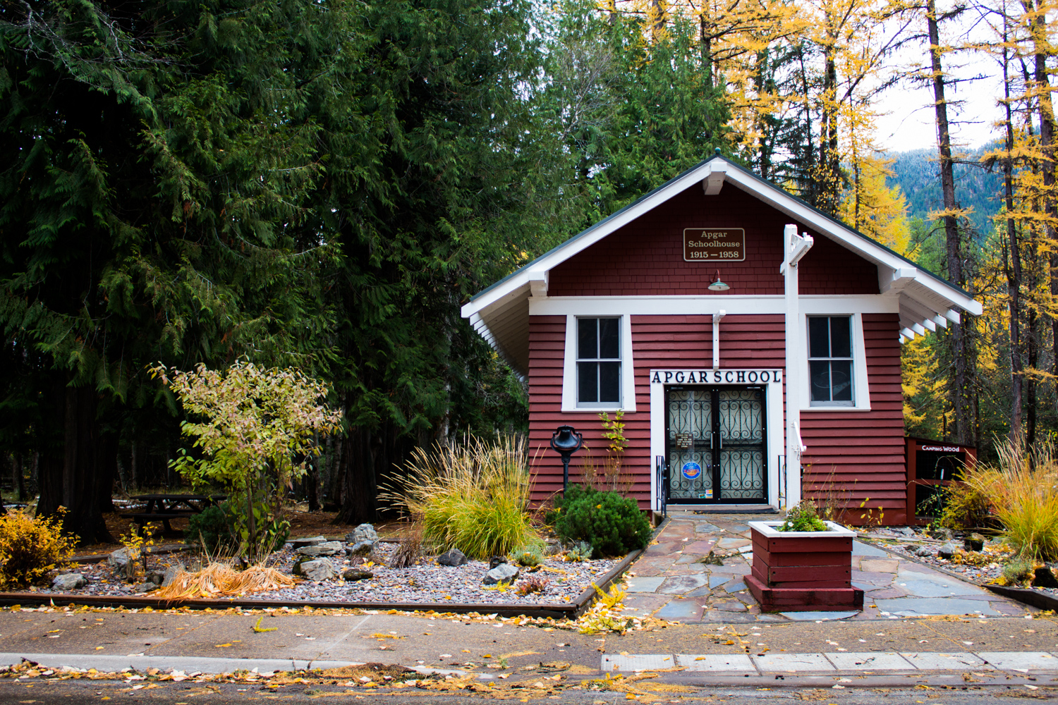 As I mentioned at the end of my Bison Range post, Glacier National Park was one of the stops on the trip for which I was most excited. I arrived after another few hours of driving, much of which was along Flathead Lake with its adjacent groves of cherry trees. The park was an awe-inspiring place for sure, especially with the abundance of yellow and otherwise fall-kissed trees, but I left feeling like I’d really only scratched the surface. The famous Going-to-the-Sun Road was only partially open, either because of the time of year or because of a wildfire that had been burning and was still smoldering in the area (who can remember?), and as with so many parks I was very limited to where I could go at all with a dog.