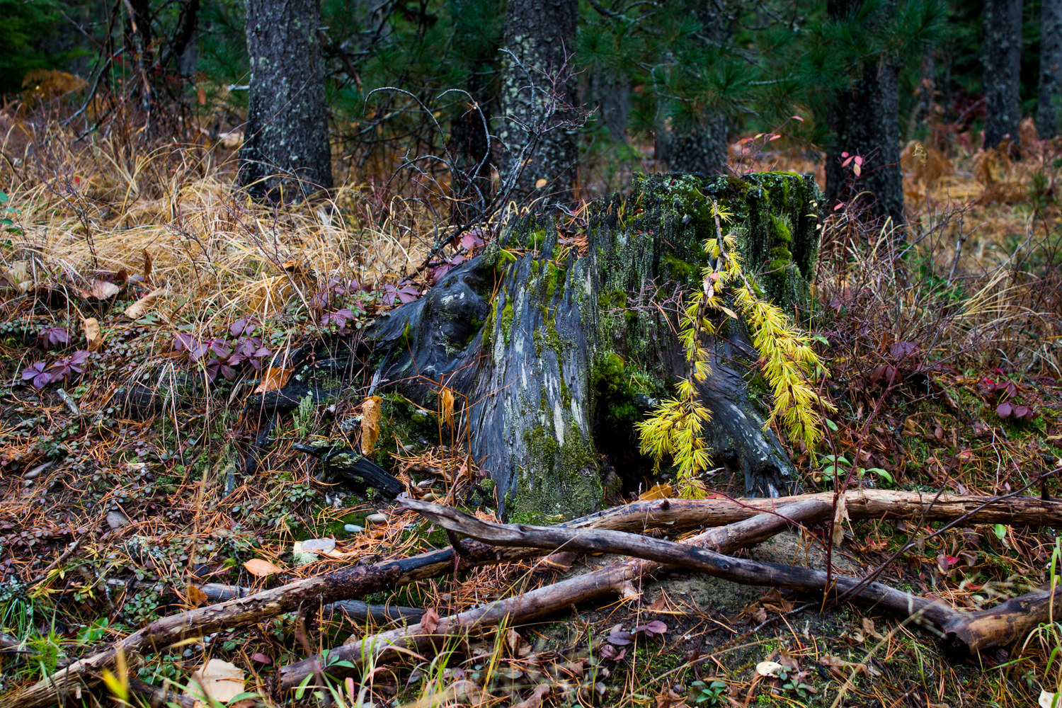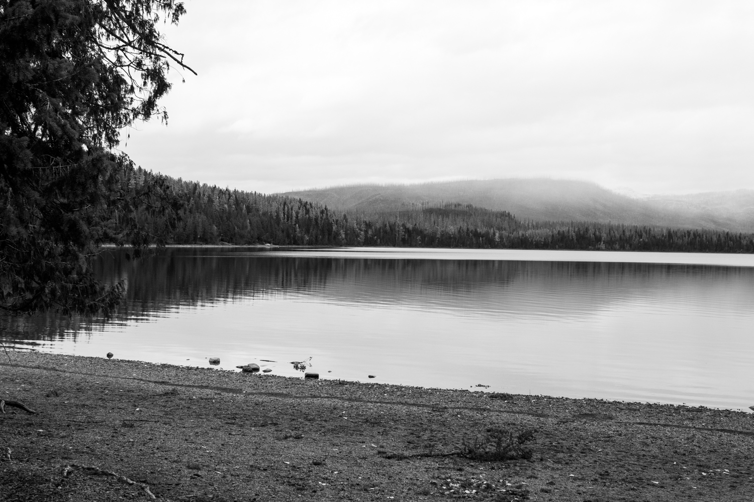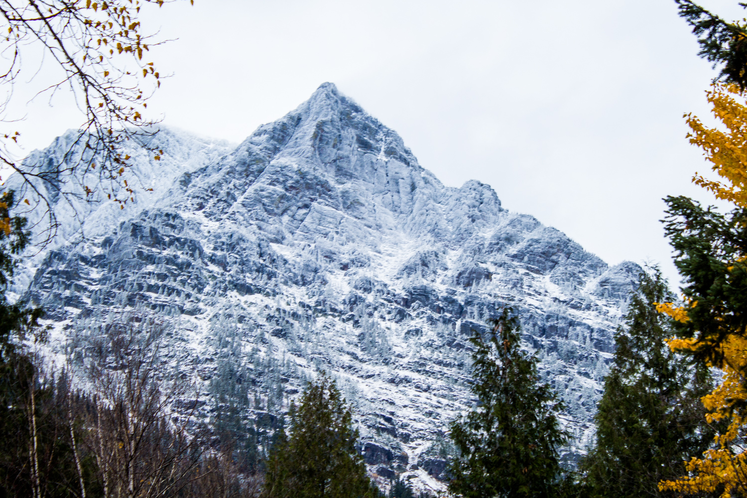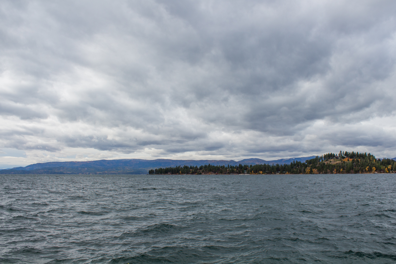 As I mentioned at the end of my Bison Range post, Glacier National Park was one of the stops on the trip for which I was most excited. I arrived after another few hours of driving, much of which was along Flathead Lake with its adjacent groves of cherry trees. The park was an awe-inspiring place for sure, especially with the abundance of yellow and otherwise fall-kissed trees, but I left feeling like I’d really only scratched the surface. The famous Going-to-the-Sun Road was only partially open, either because of the time of year or because of a wildfire that had been burning and was still smoldering in the area (who can remember?), and as with so many parks I was very limited to where I could go at all with a dog.