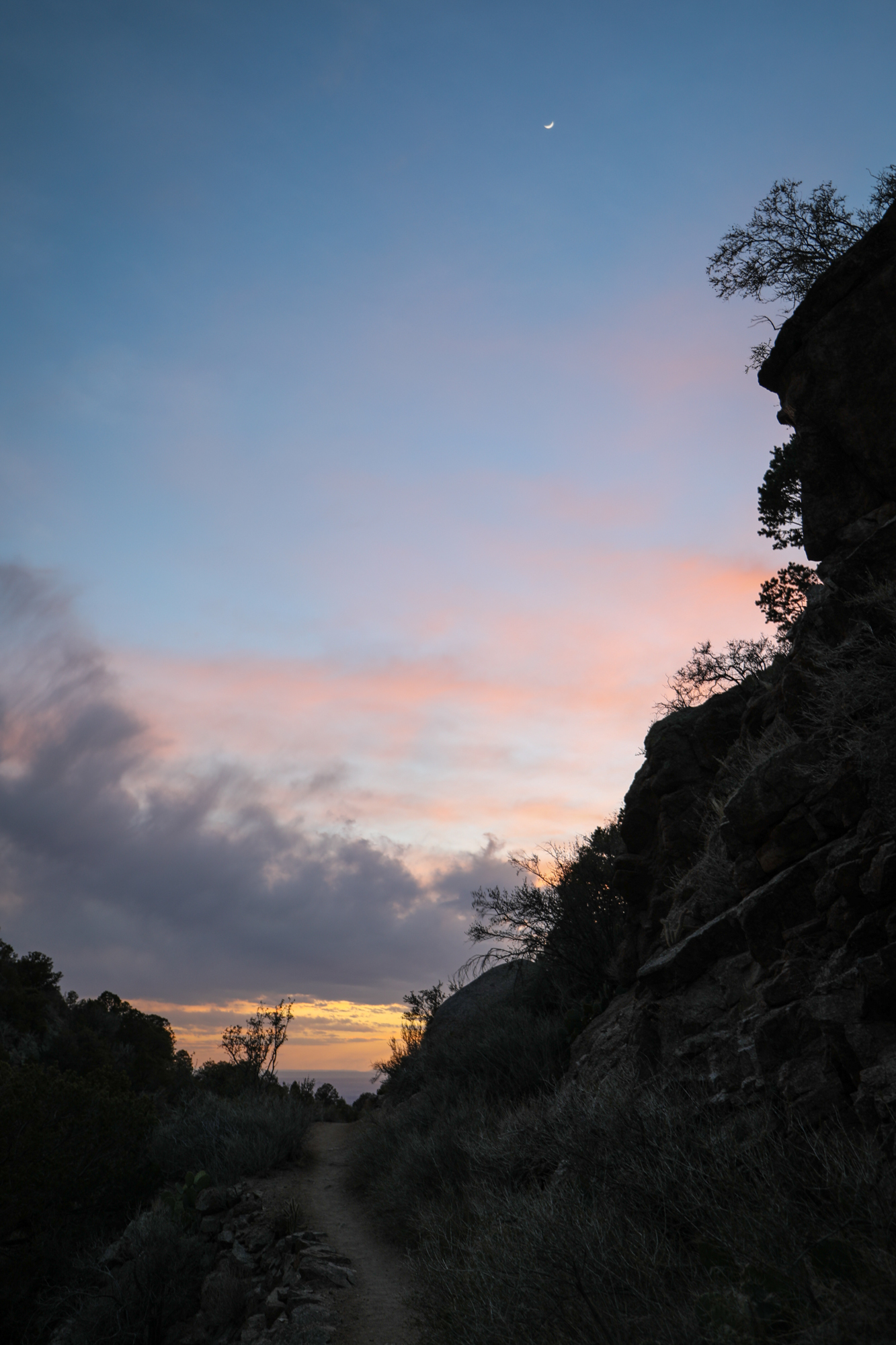 Ollie and I made it to a good lookout for a sunset timelapse, set up my phone, went a bit further. Realized doing a full sunset lapse would have us hiking down in the dark (lol duh, right? 😂) so went back for the phone and started hoofing it down the mountain (in my… rainboots??), except the sunset was really doing work so I had to keep stopping for pictures.
