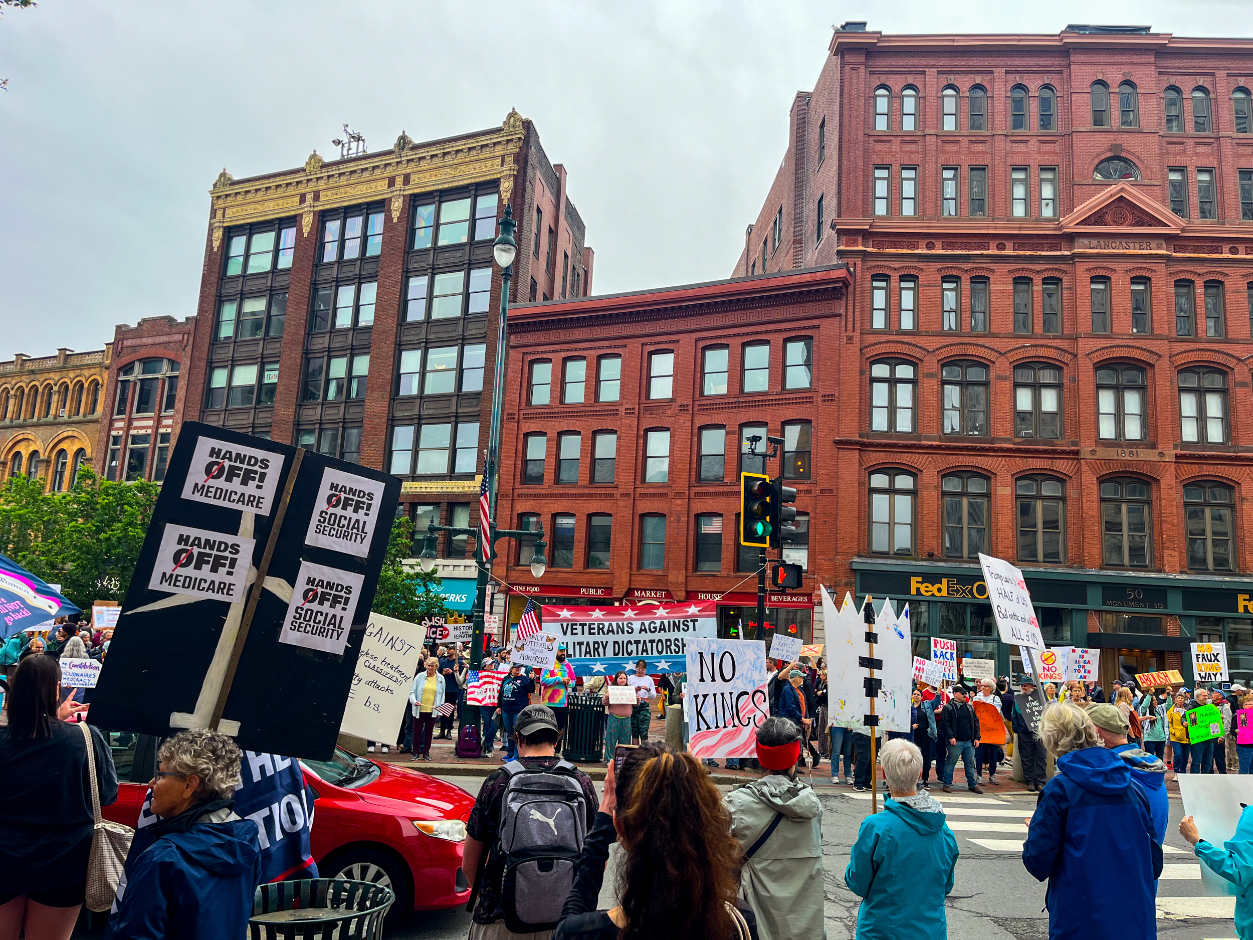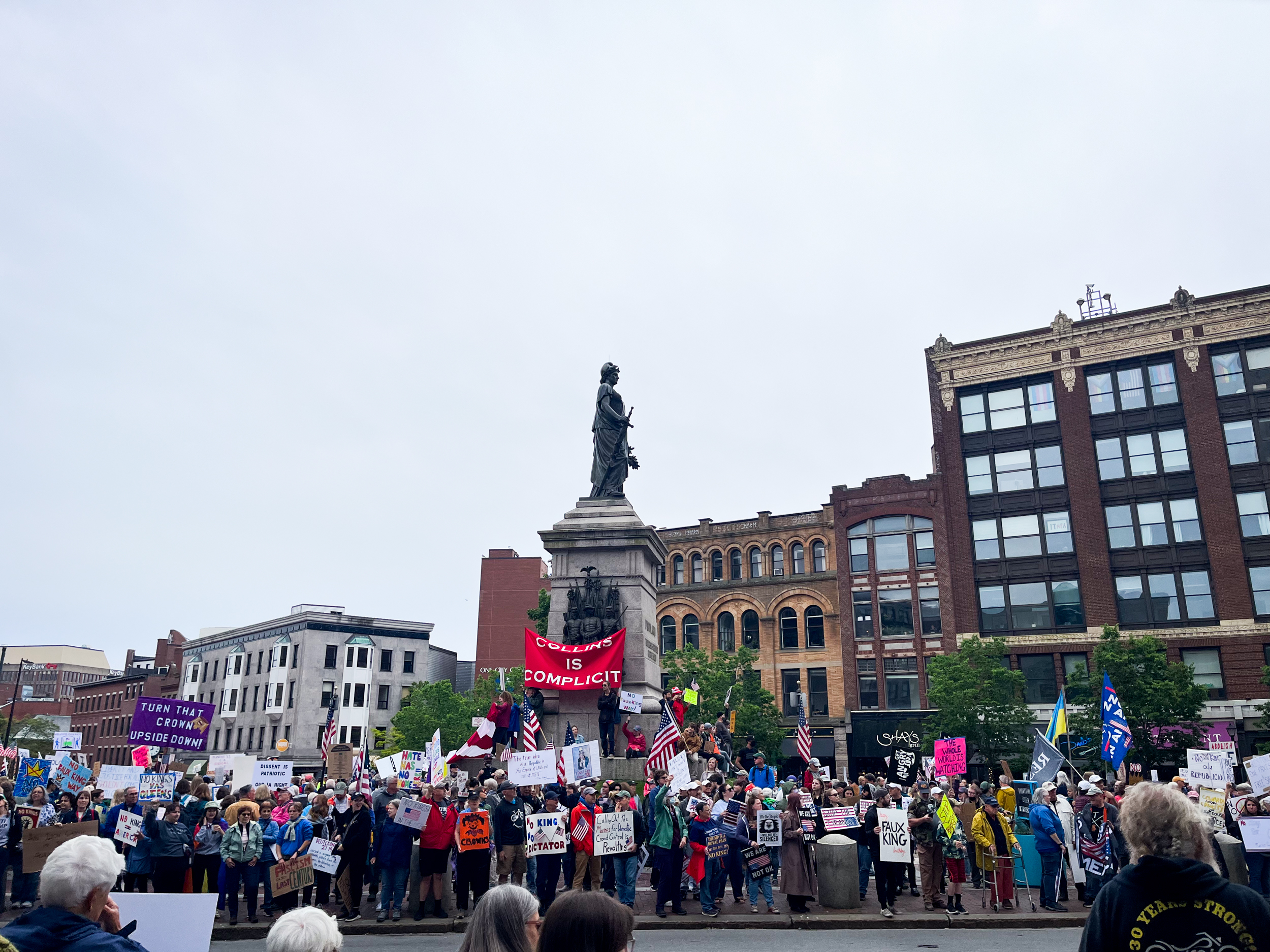 We stayed at a charming, quirky VRBO that felt like some kind of secret library alcove in what we learned was the Holt House, and spent Saturday morning meandering to the waterfront and ultimately finding ourselves at various stages of the local No Kings protest happening nationally. (At Lincoln Park it was almost incongruously cheerful with a brass band and skewed older/whiter; crowds along Congress Street were younger and a bit more diverse and the atmosphere seemed a bit more charged.)