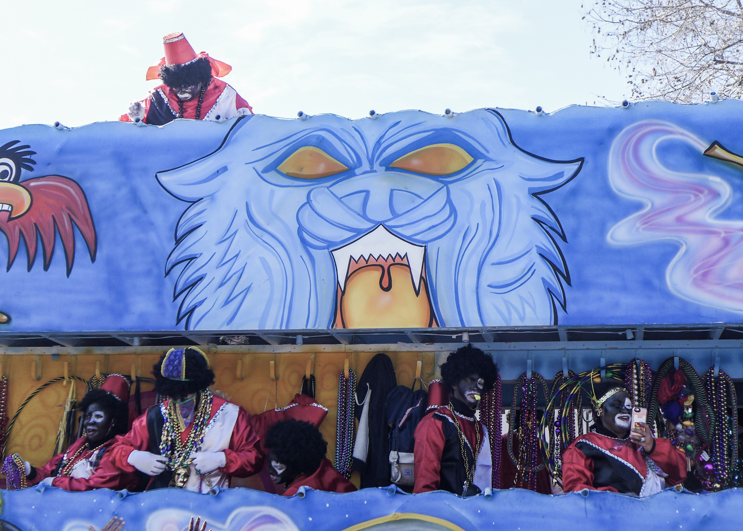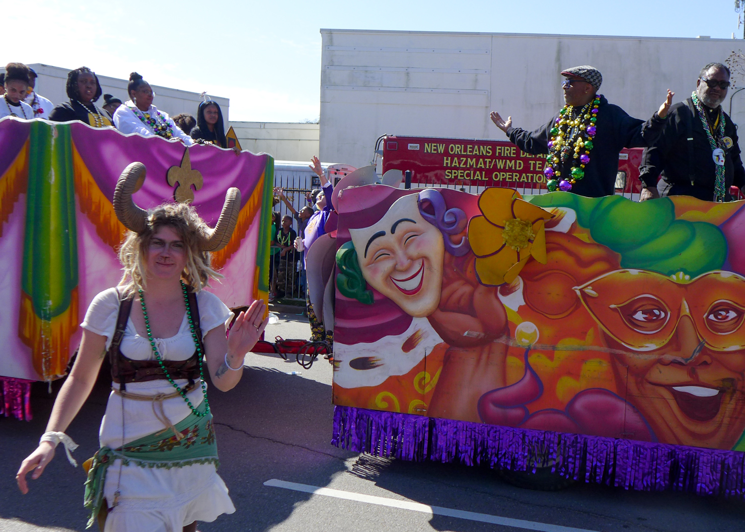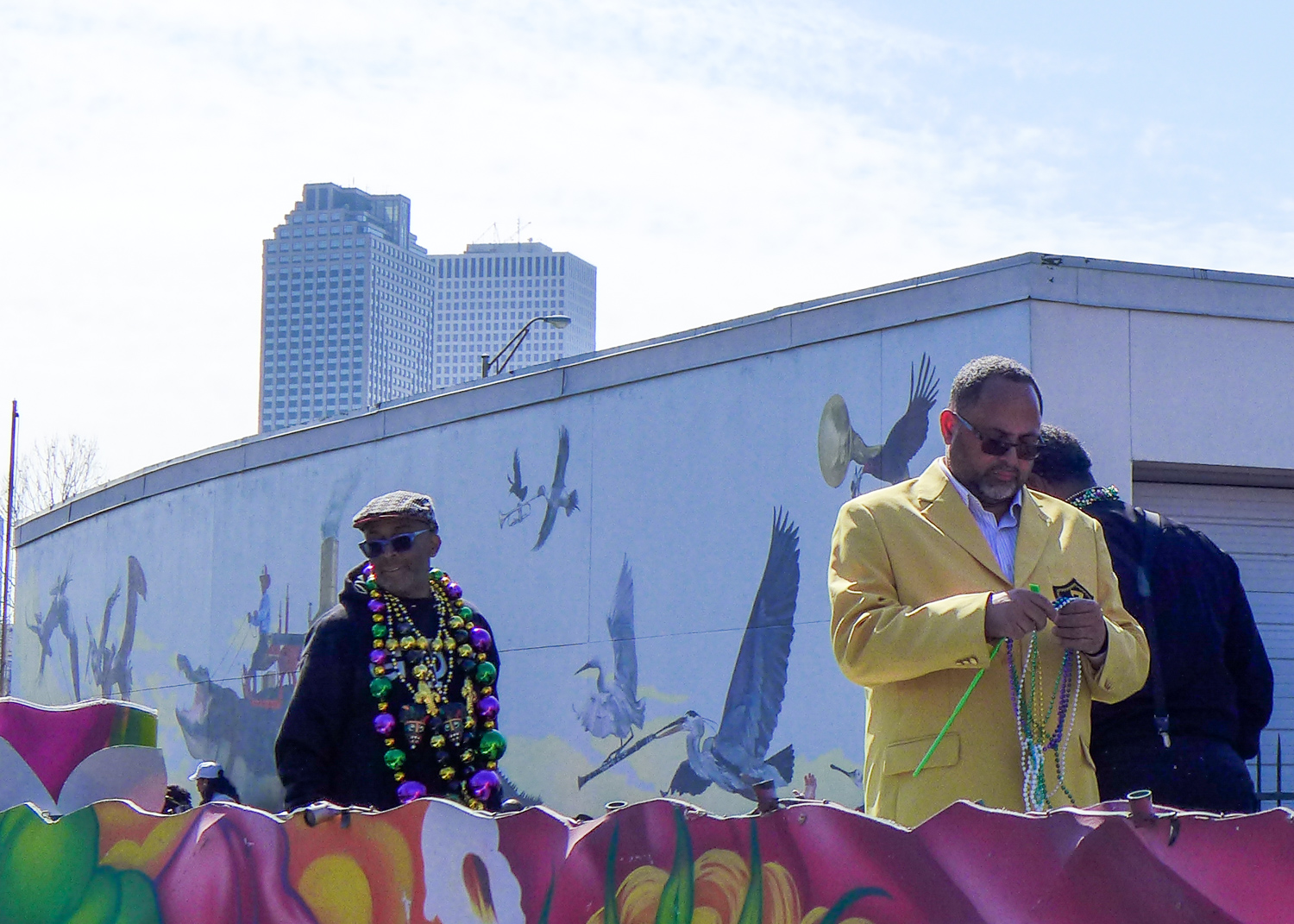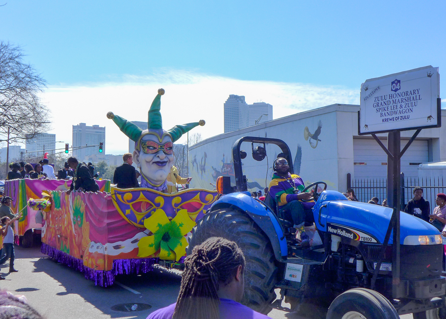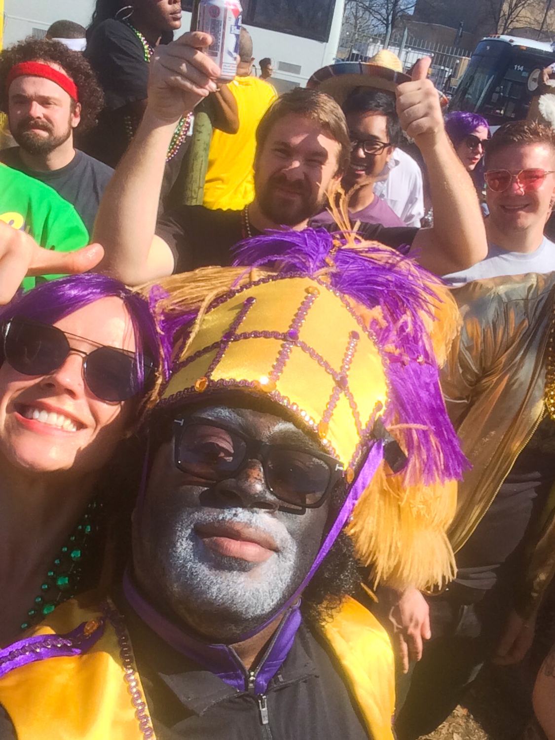 When Mardi Gras Day finally came around, I did the only sensible thing a remote employee (whose job doesn’t treat the holiday with the same reverence as New Orleans locals) could do and called out of work. For indeed it was a full day of festivities! I was both surprised and impressed to learn the Zulu parade kicked off at the early hour of 9 a.m., though it only reached our chosen viewing point of Basin and Villere an hour or two later. Highlights included Spike Lee as Honorary Grand Marshall and (miracle of miracles!) one of the costumed marchers approaching me to take a selfie with my phone and then bequeathing me a coveted Zulu coconut [prayer hands emoji].