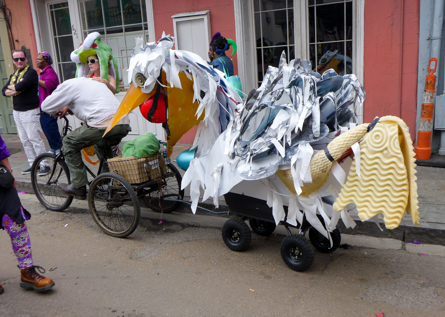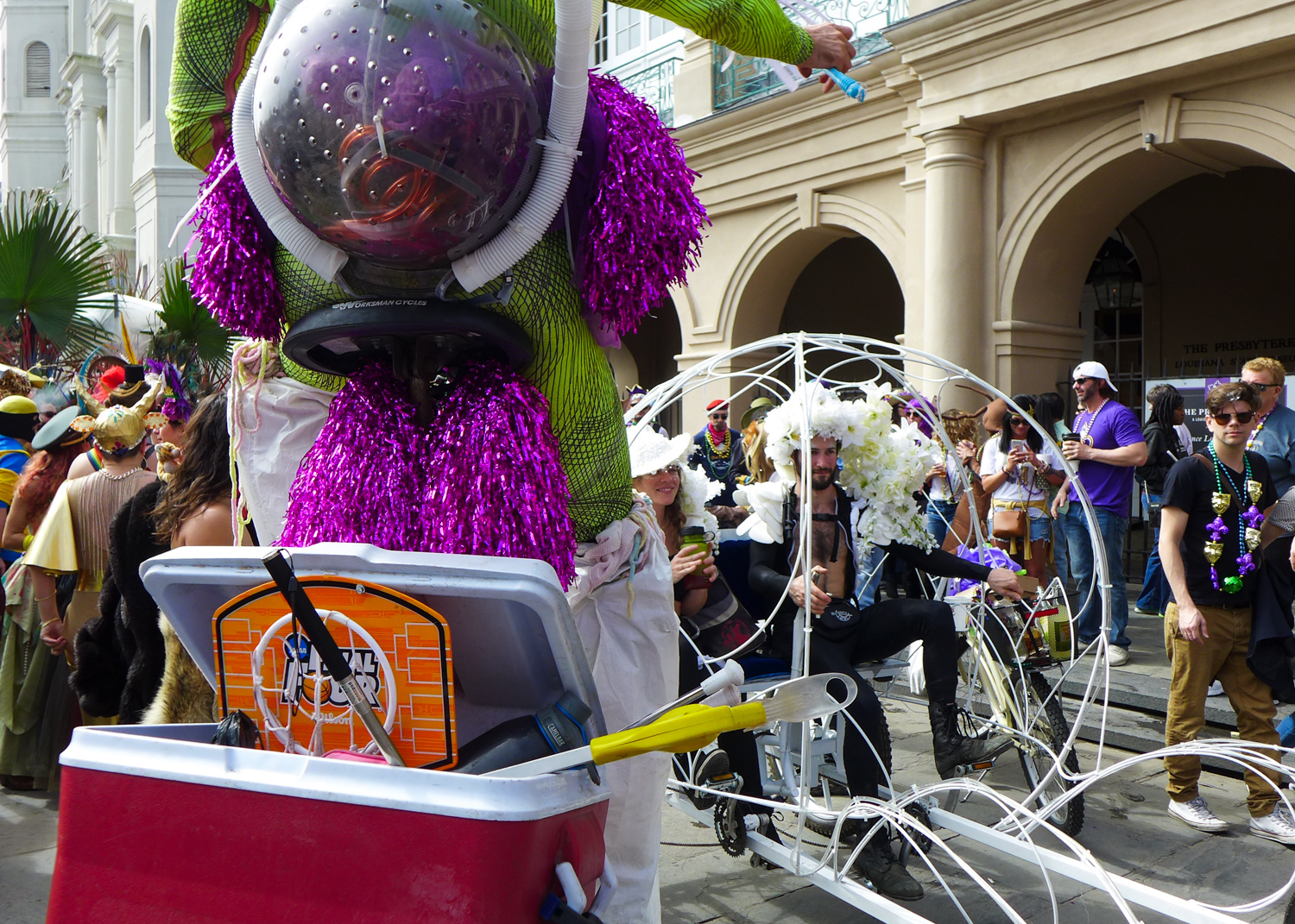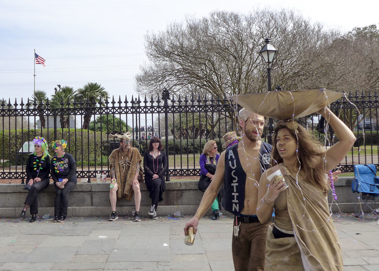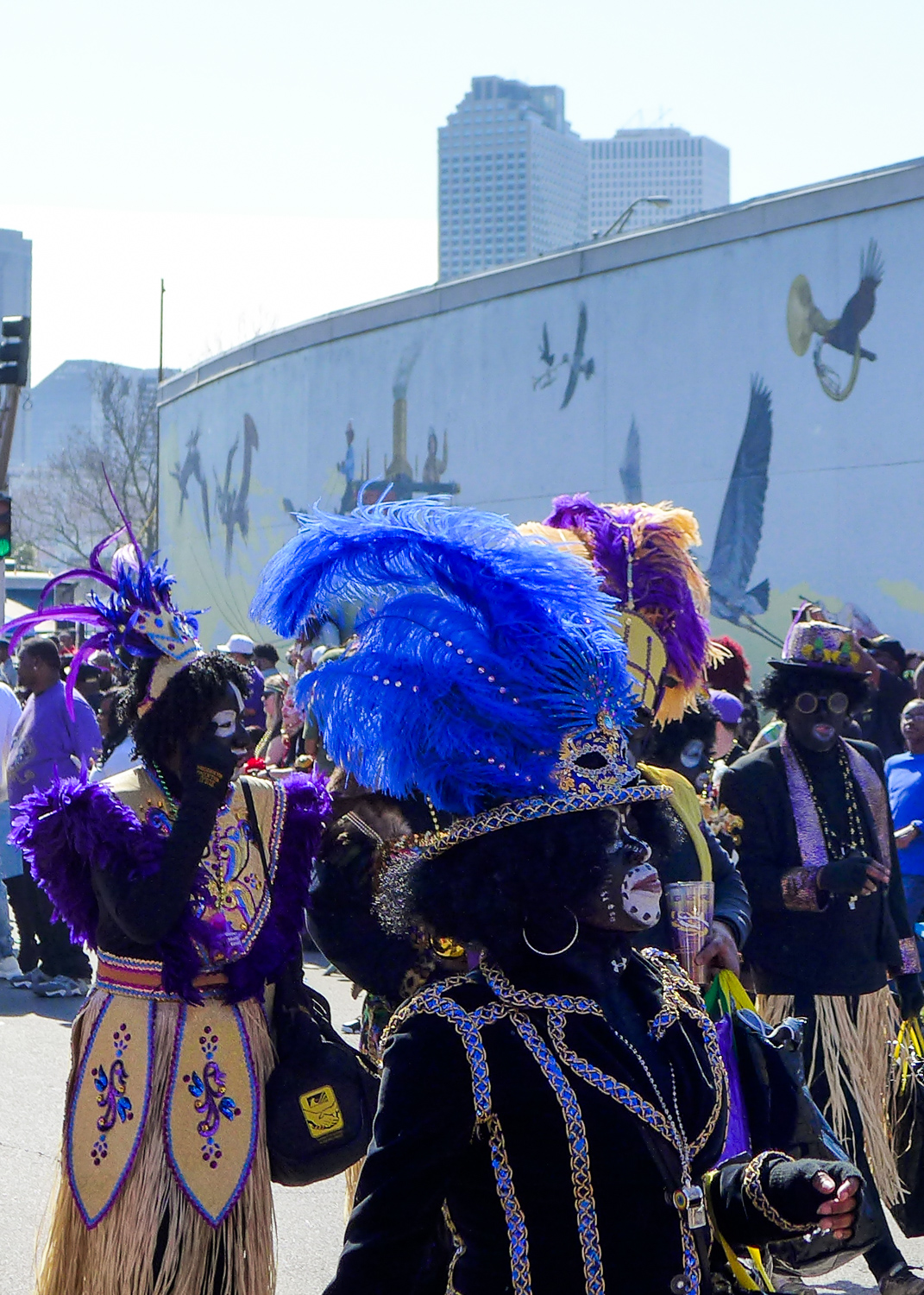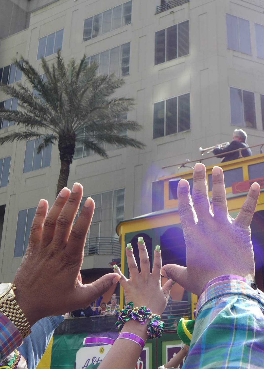 When Mardi Gras Day finally came around, I did the only sensible thing a remote employee (whose job doesn’t treat the holiday with the same reverence as New Orleans locals) could do and called out of work. For indeed it was a full day of festivities! I was both surprised and impressed to learn the Zulu parade kicked off at the early hour of 9 a.m., though it only reached our chosen viewing point of Basin and Villere an hour or two later. Highlights included Spike Lee as Honorary Grand Marshall and (miracle of miracles!) one of the costumed marchers approaching me to take a selfie with my phone and then bequeathing me a coveted Zulu coconut [prayer hands emoji].