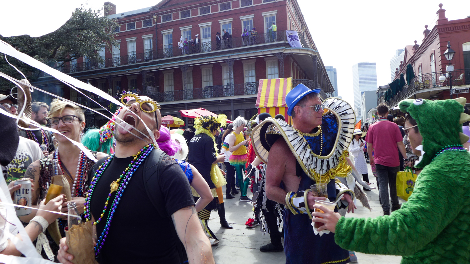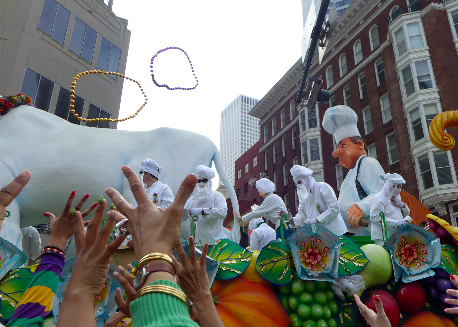 After Zulu we made our way through the madhouse that had become the French Quarter to catch the Rex parade as it came down Canal. Click here for more on the Zulu Social Club, or here for the Rex Organization.