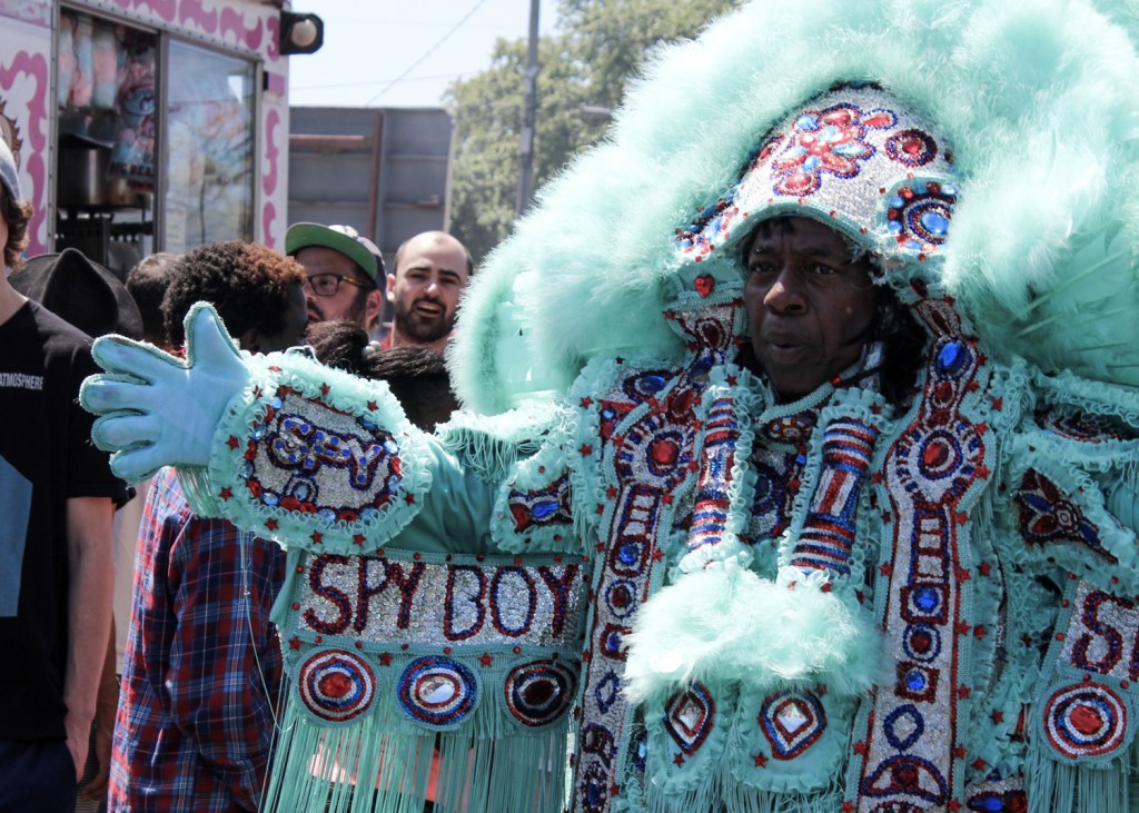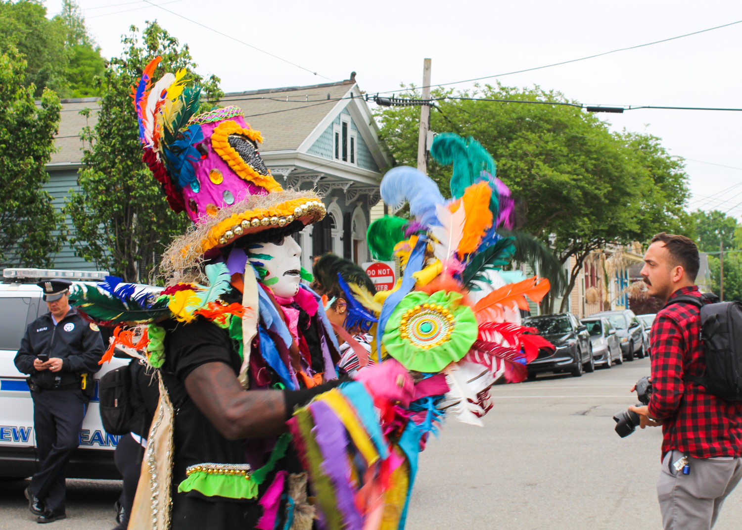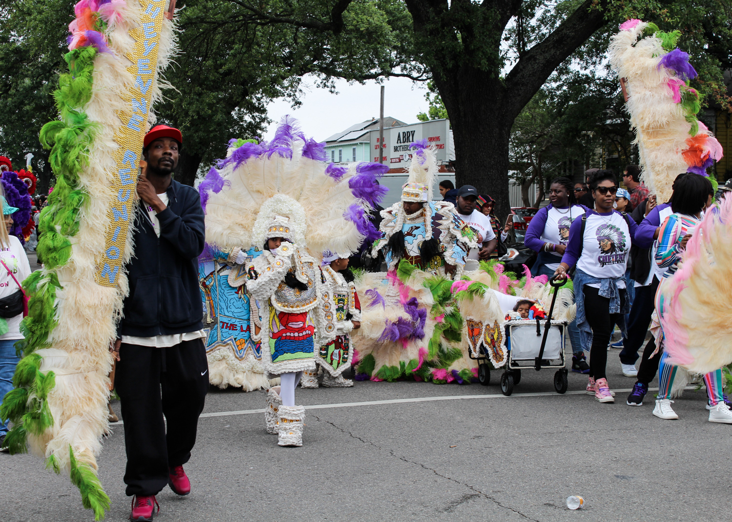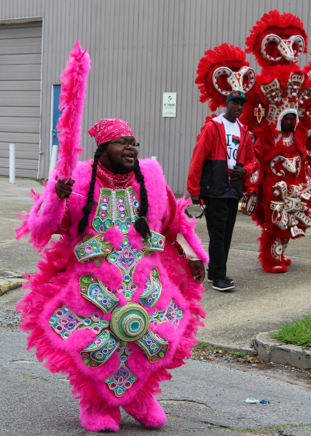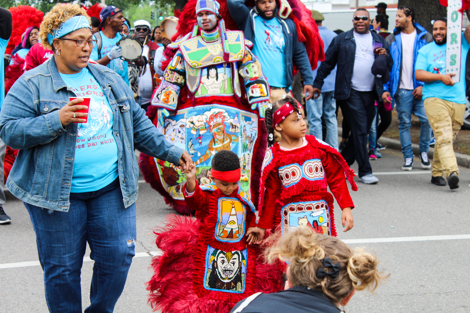 I admittedly had only the prominent storyline of Big Chief Lambreaux from the David Simon show Treme (required watching for any New Orleans transplant!) as background on the Indians before attending these events. This had given me at least some appreciation for the time, skill, and dedication that go into the fashioning of the suits (not to mention how seriously the tradition is taken by those who participate), but seeing so many in person, whooping and chanting and marching to the beat of any number of drums, was really a treat. Read more on the Indians here or here.