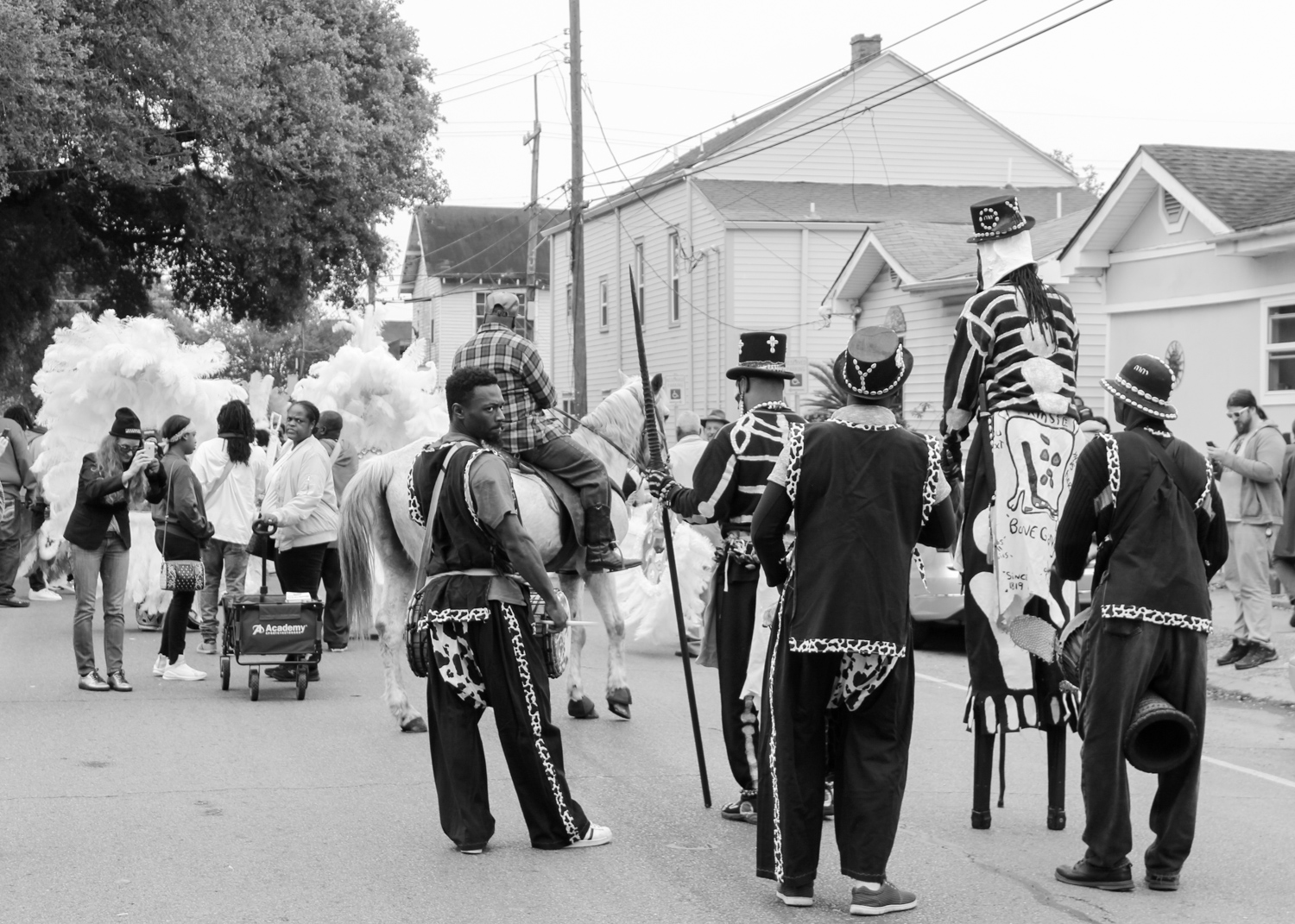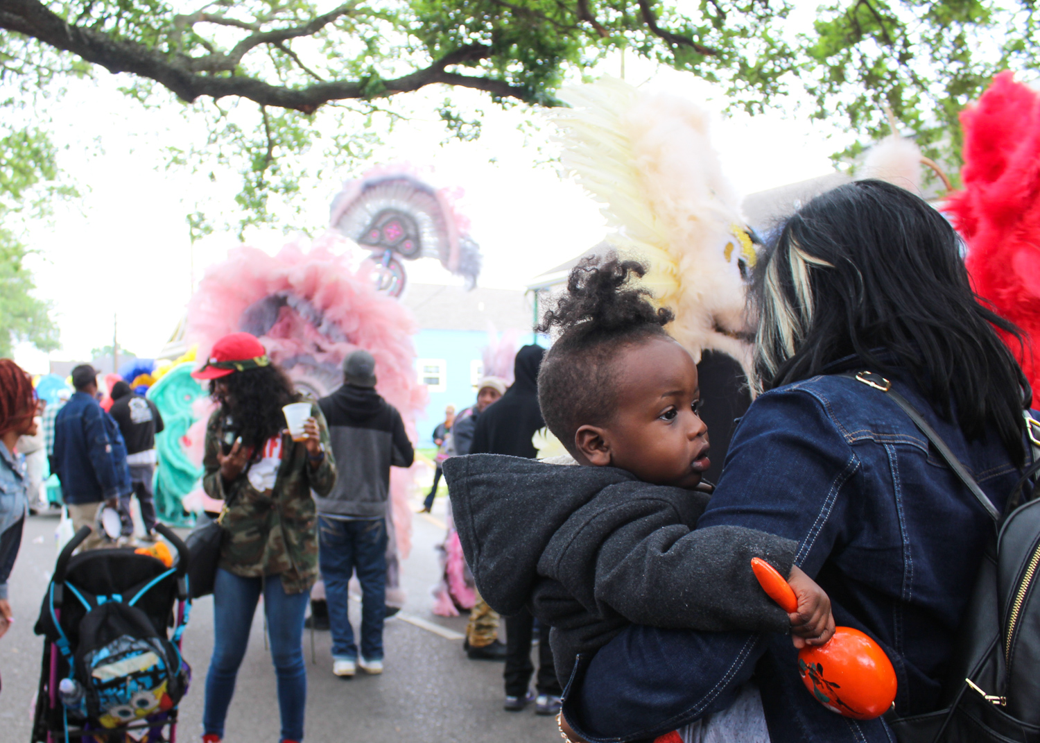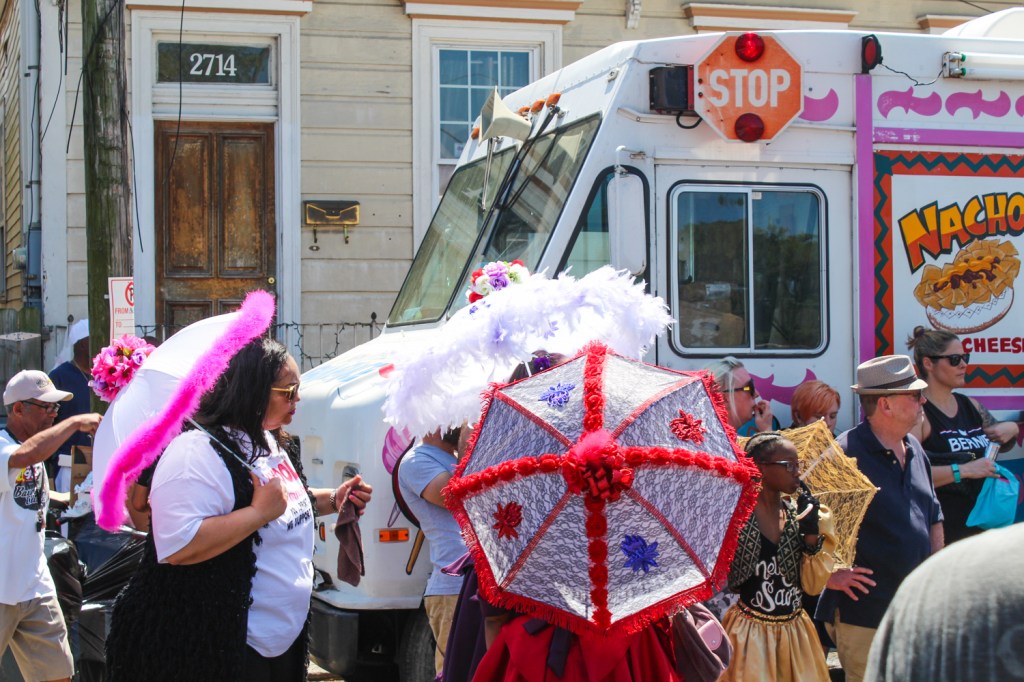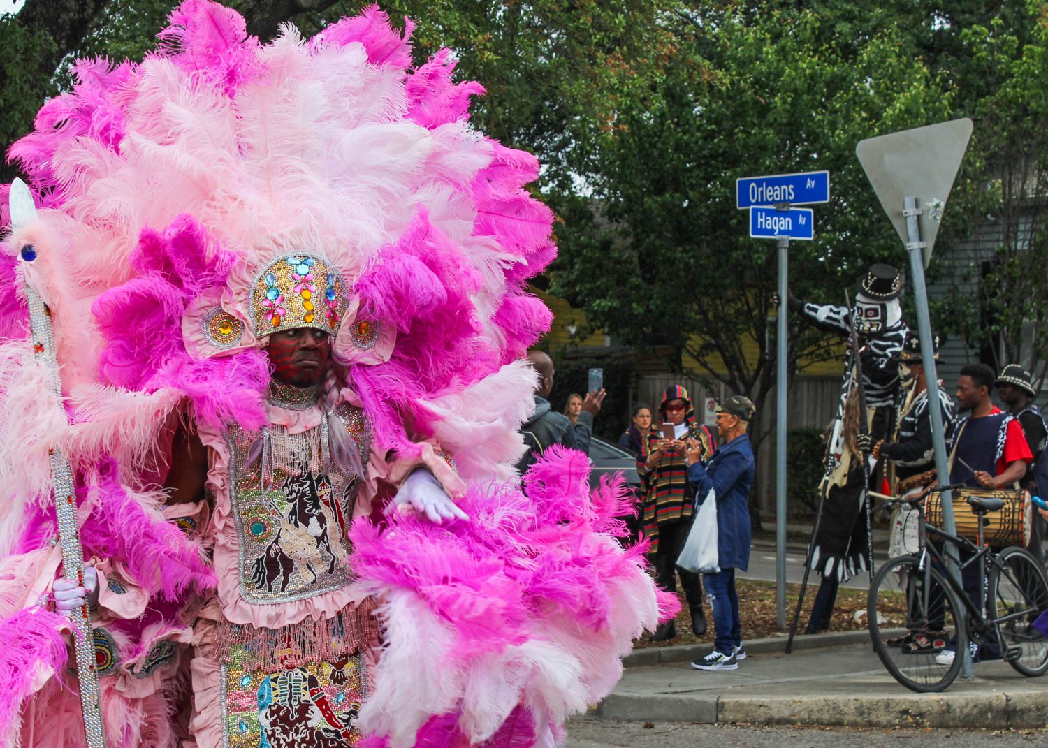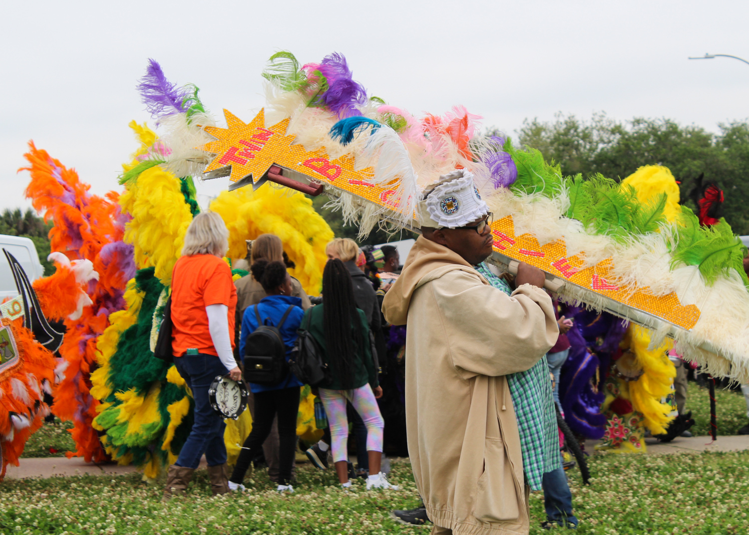 I admittedly had only the prominent storyline of Big Chief Lambreaux from the David Simon show Treme (required watching for any New Orleans transplant!) as background on the Indians before attending these events. This had given me at least some appreciation for the time, skill, and dedication that go into the fashioning of the suits (not to mention how seriously the tradition is taken by those who participate), but seeing so many in person, whooping and chanting and marching to the beat of any number of drums, was really a treat. Read more on the Indians here or here.