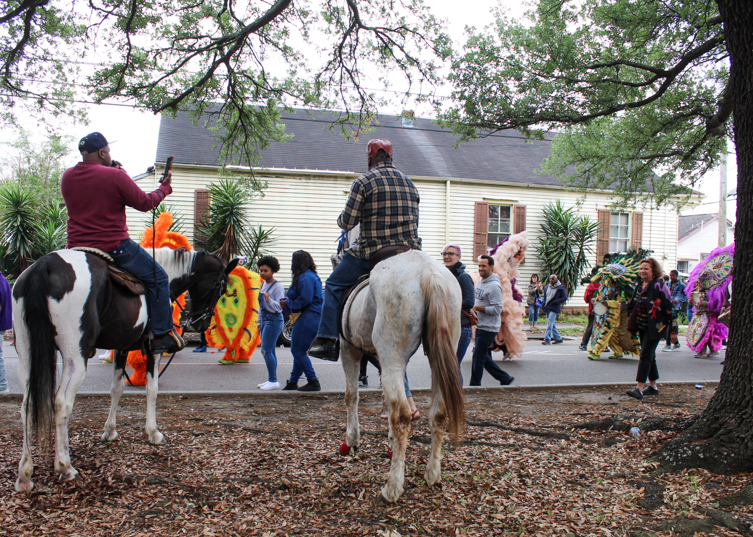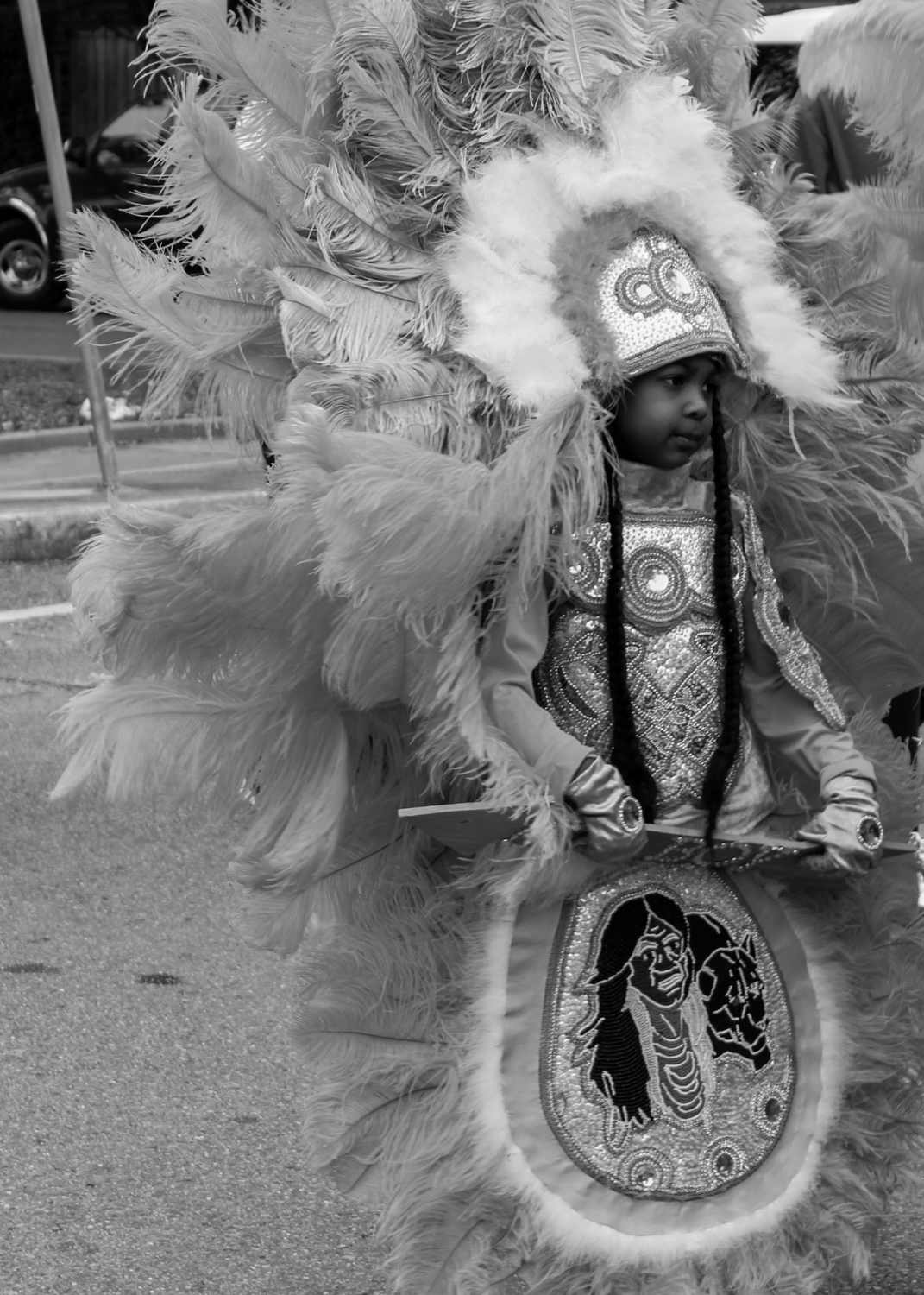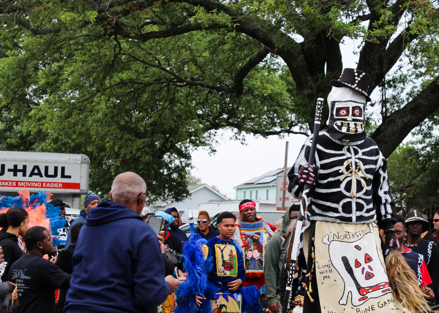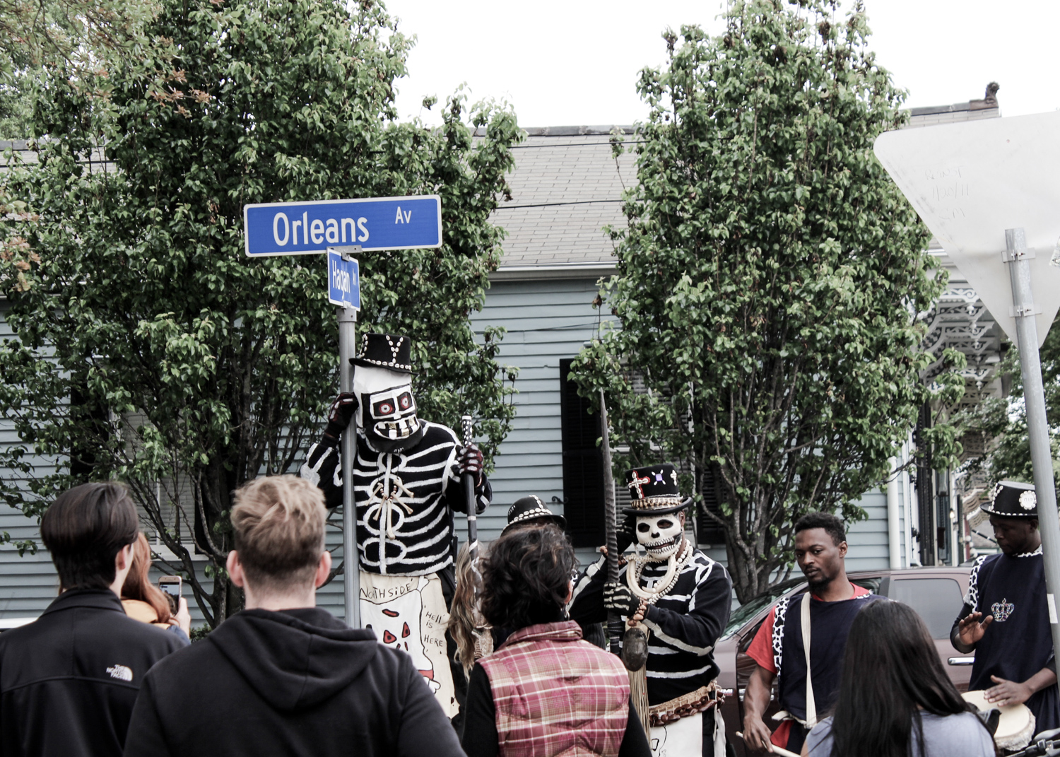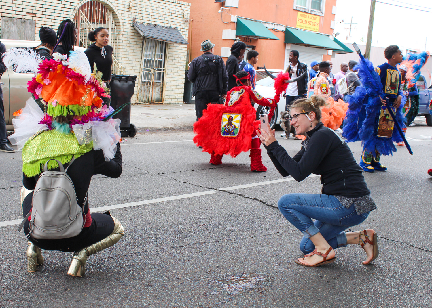 I admittedly had only the prominent storyline of Big Chief Lambreaux from the David Simon show Treme (required watching for any New Orleans transplant!) as background on the Indians before attending these events. This had given me at least some appreciation for the time, skill, and dedication that go into the fashioning of the suits (not to mention how seriously the tradition is taken by those who participate), but seeing so many in person, whooping and chanting and marching to the beat of any number of drums, was really a treat. Read more on the Indians here or here.
