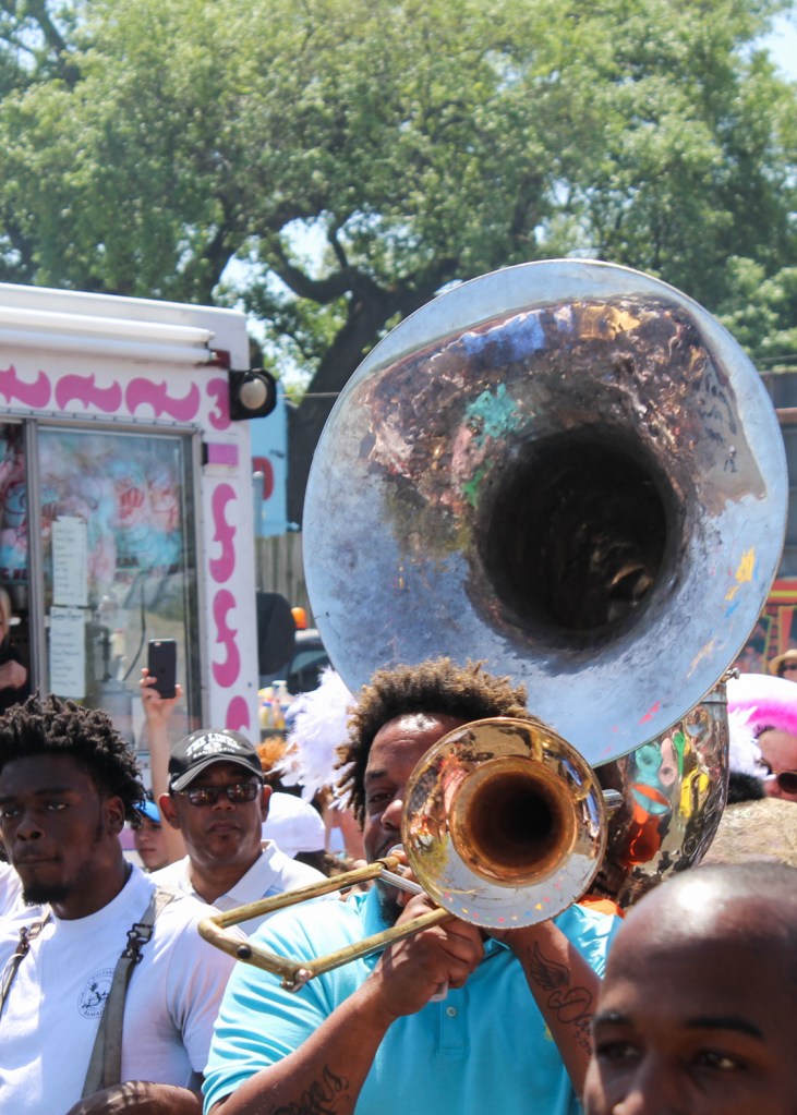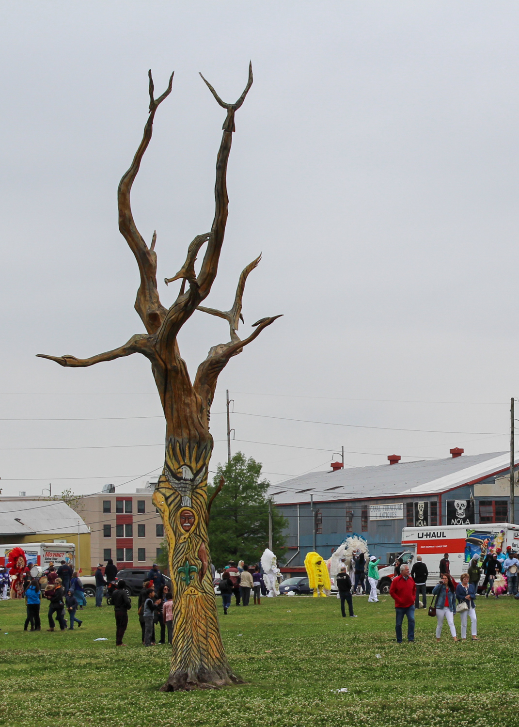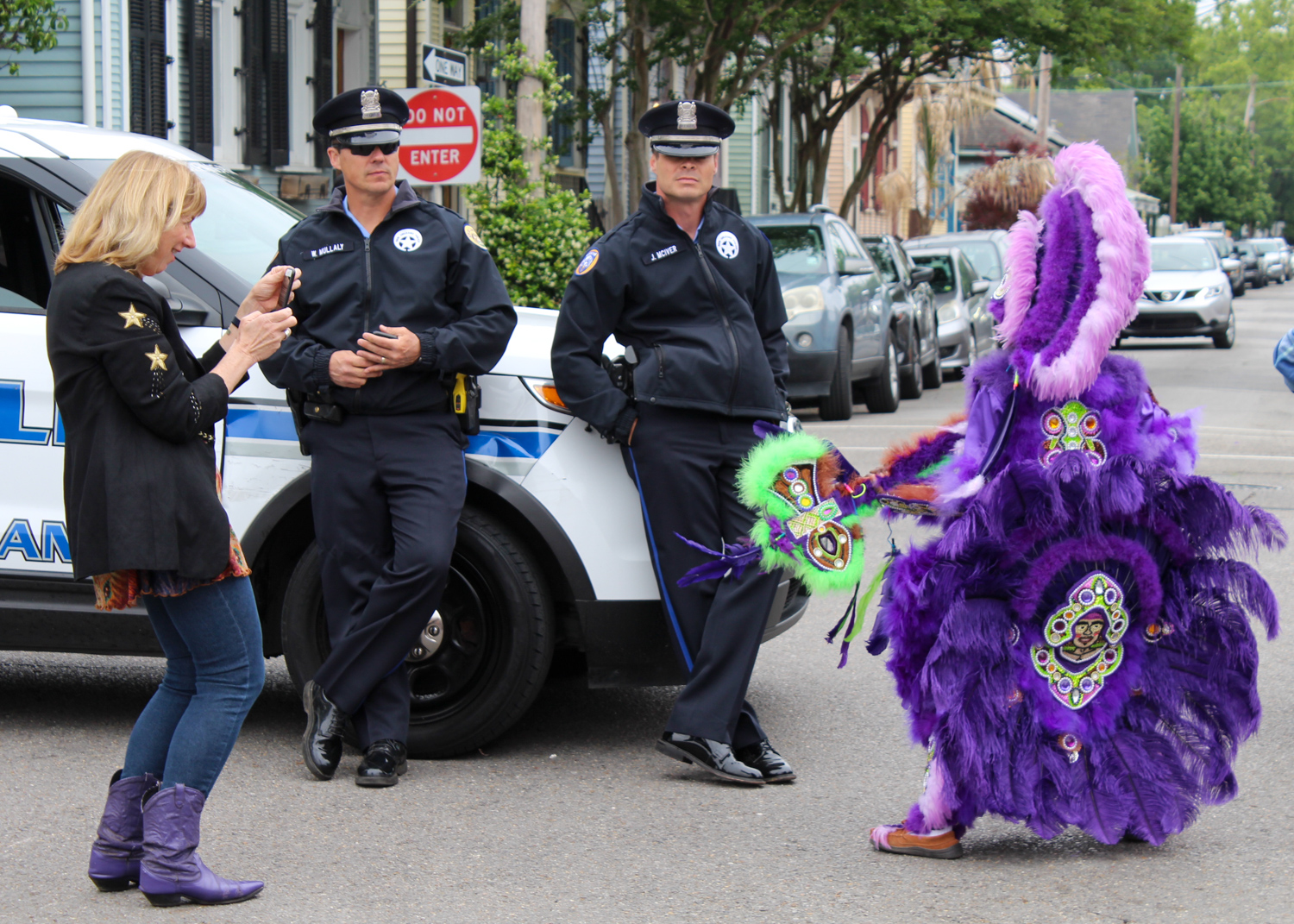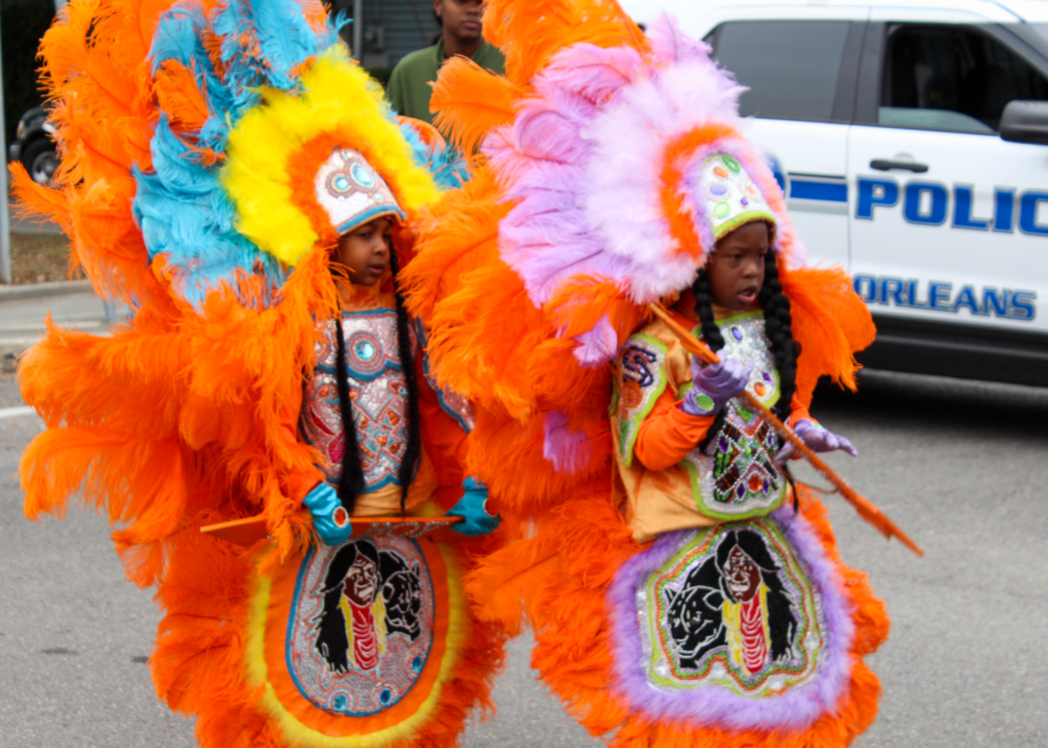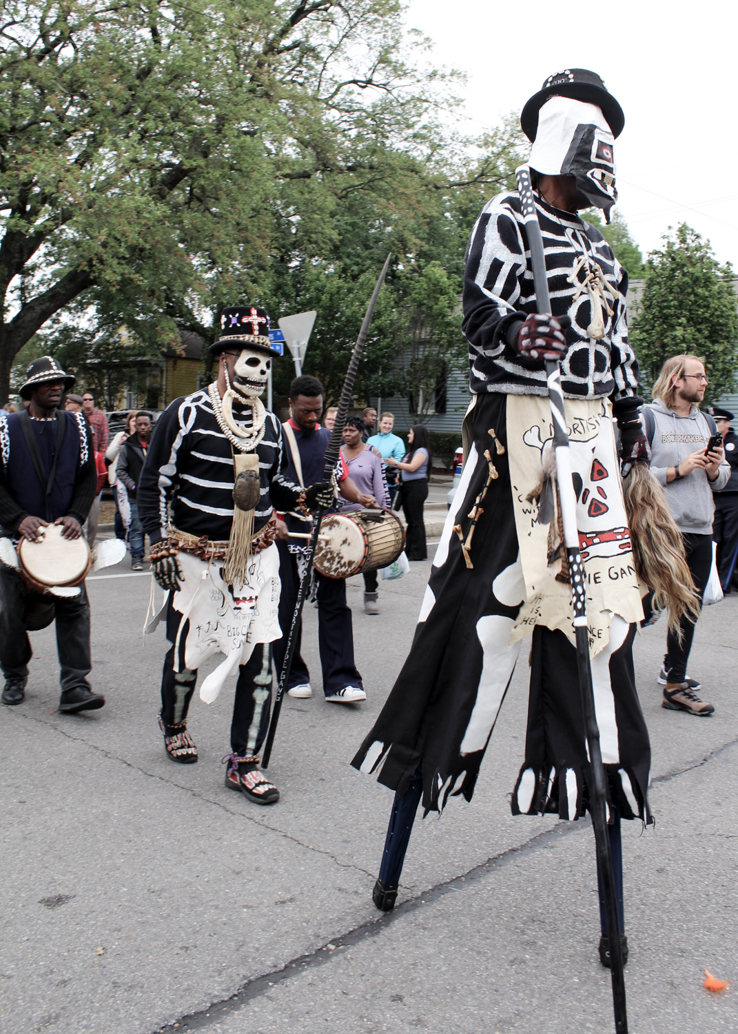 I admittedly had only the prominent storyline of Big Chief Lambreaux from the David Simon show Treme (required watching for any New Orleans transplant!) as background on the Indians before attending these events. This had given me at least some appreciation for the time, skill, and dedication that go into the fashioning of the suits (not to mention how seriously the tradition is taken by those who participate), but seeing so many in person, whooping and chanting and marching to the beat of any number of drums, was really a treat. Read more on the Indians here or here.