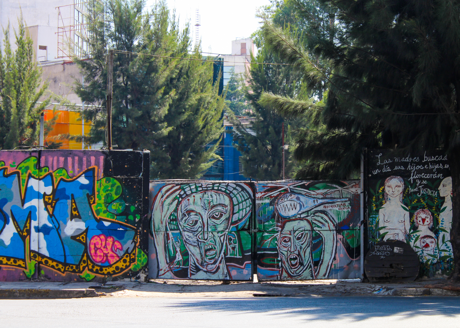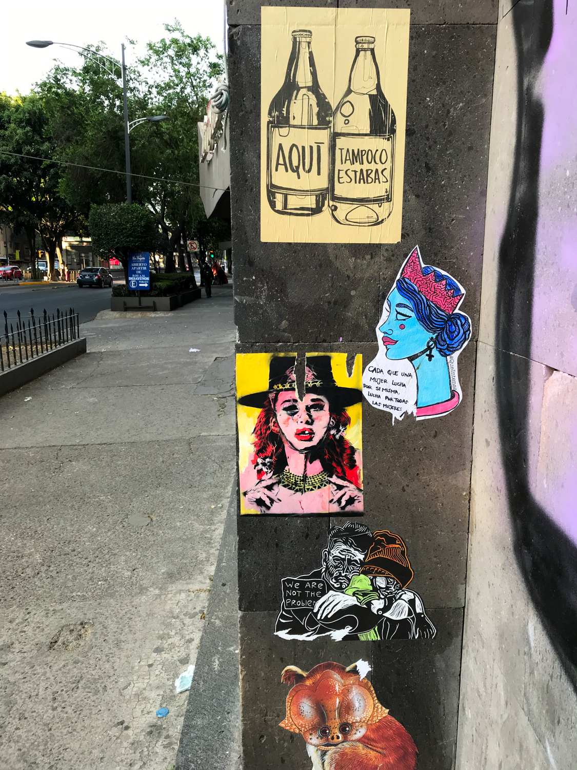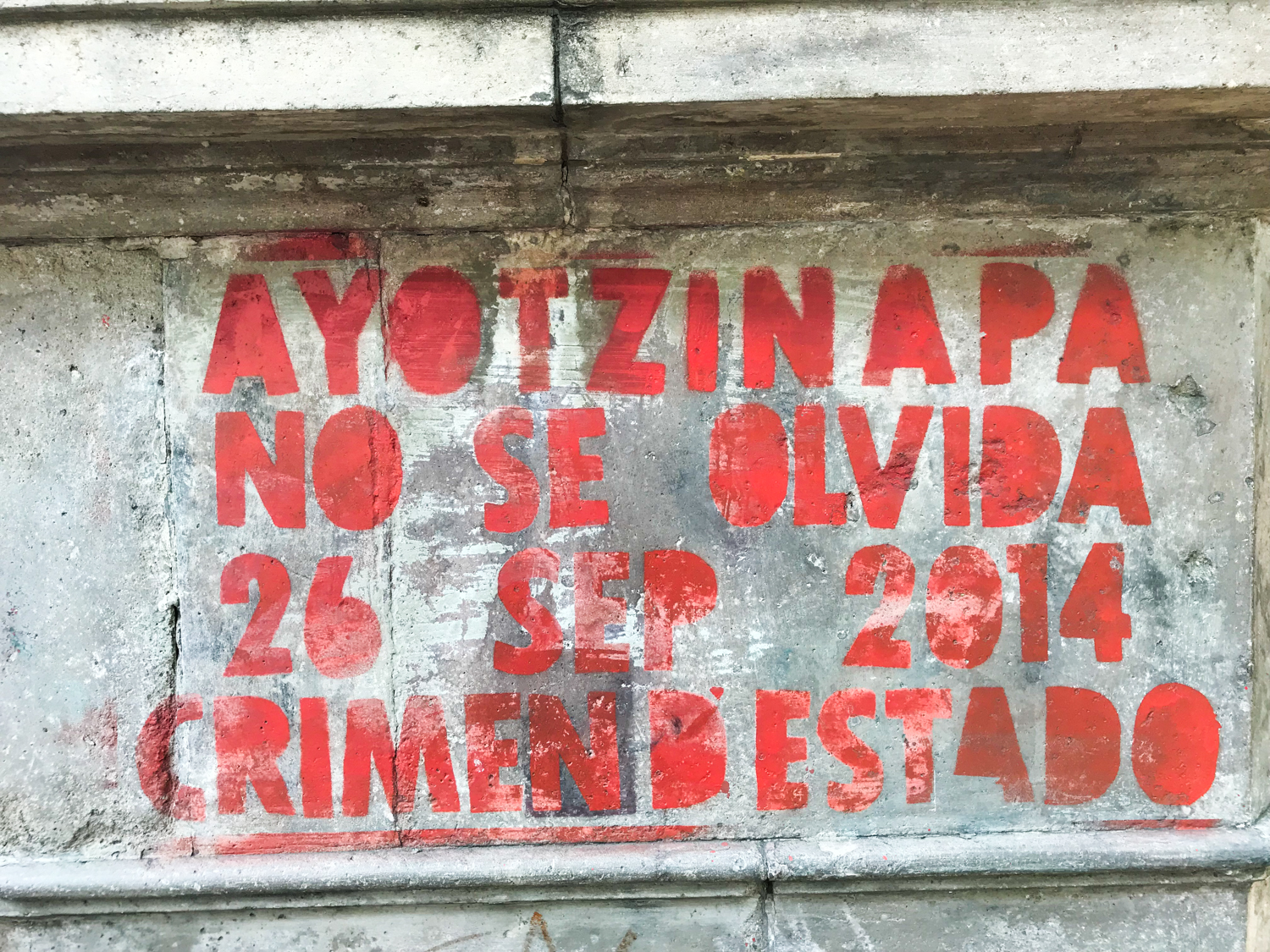 And to put a bow on this Mexico trip, here are some photos of the abundant street art I happened upon in Mexico City. Many I took on the first day were of political stencils along the Paseo de la Reforma. Common themes were justice for women, opposition to PIM (the Plan Integral Morales– an infrastructure project threatening indigenous communities not far from Mexico City), and continued outrage against the 2014 mass kidnapping of teachers from the Ayotzinapa Rural Teachers College.