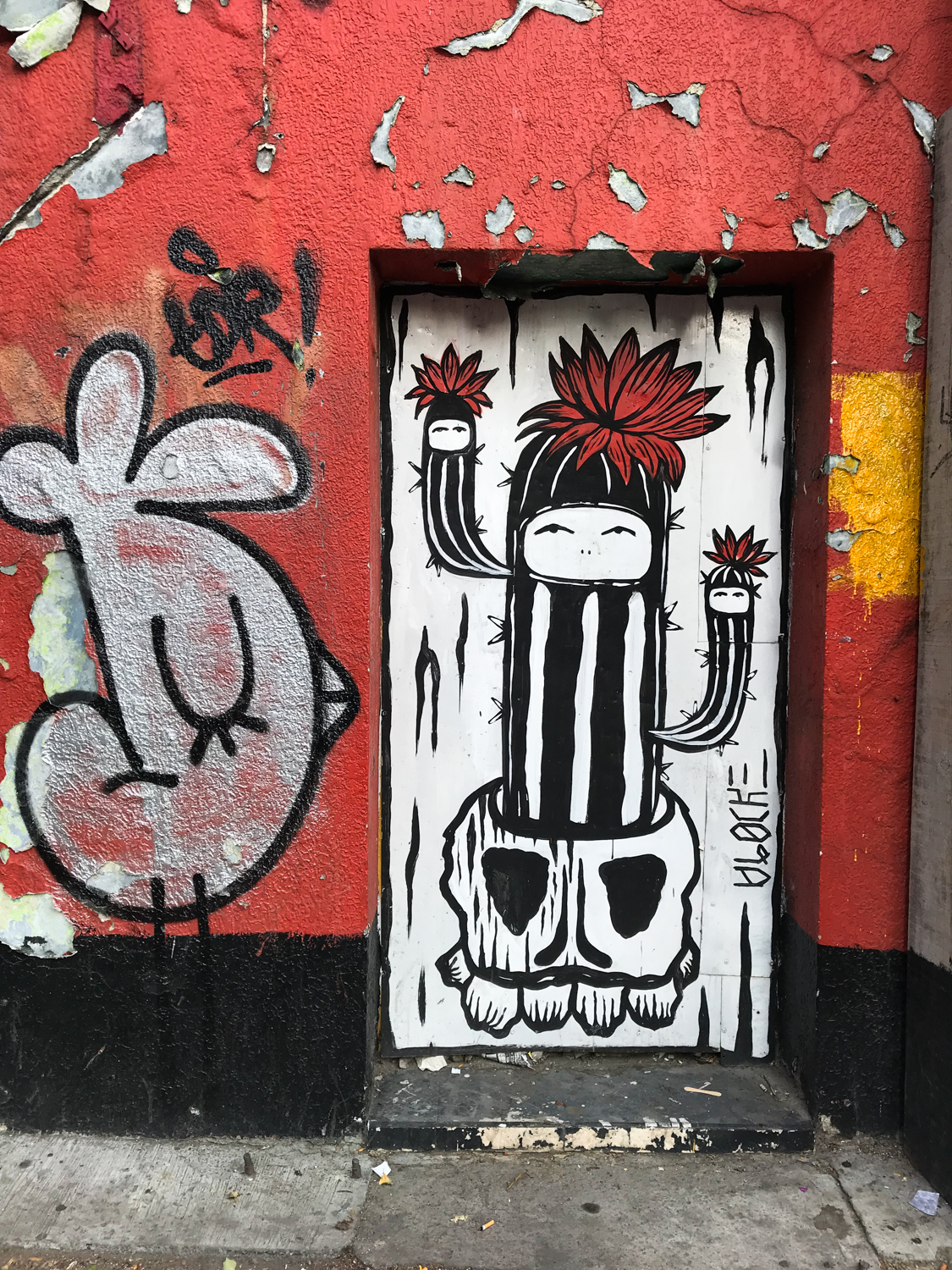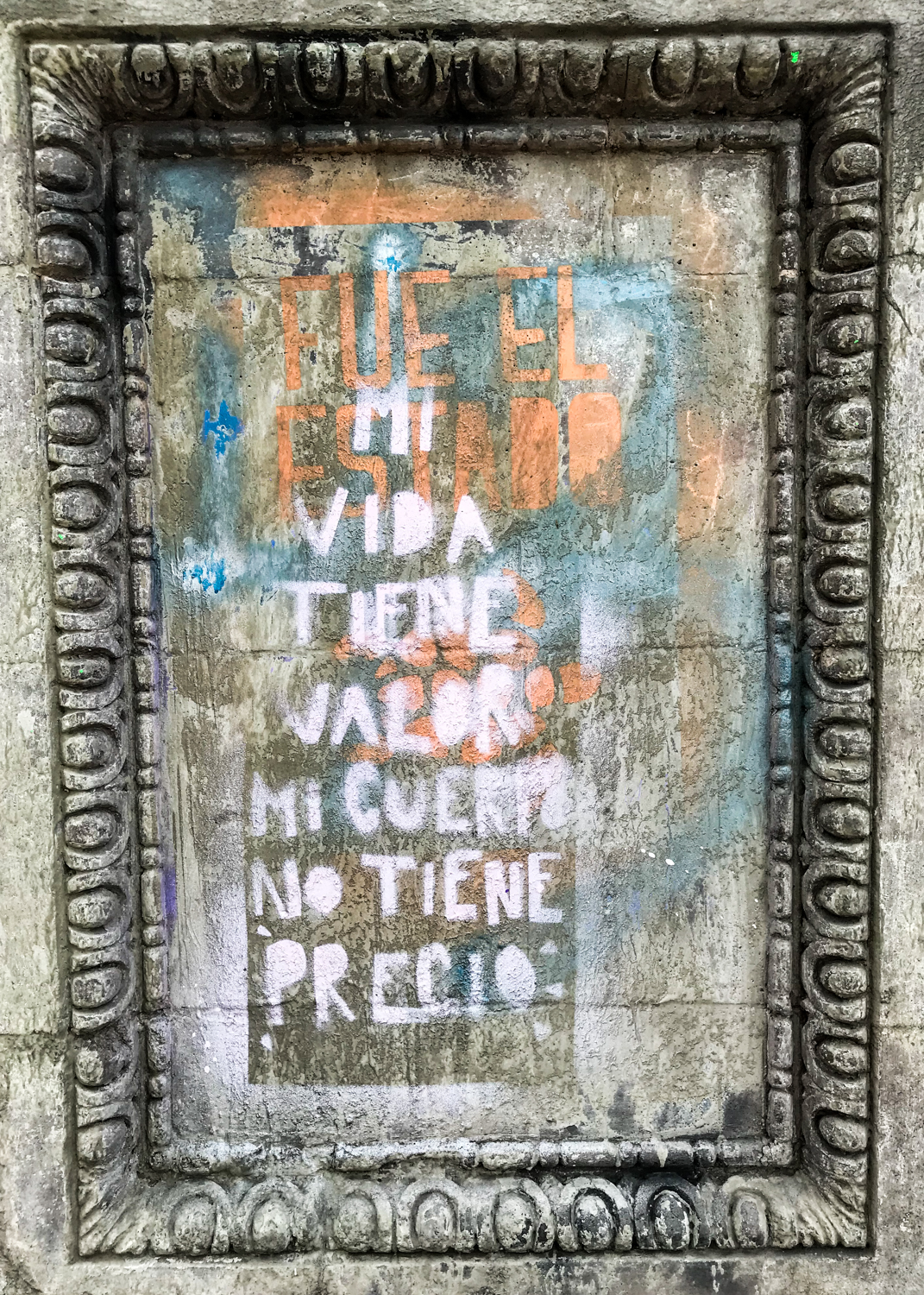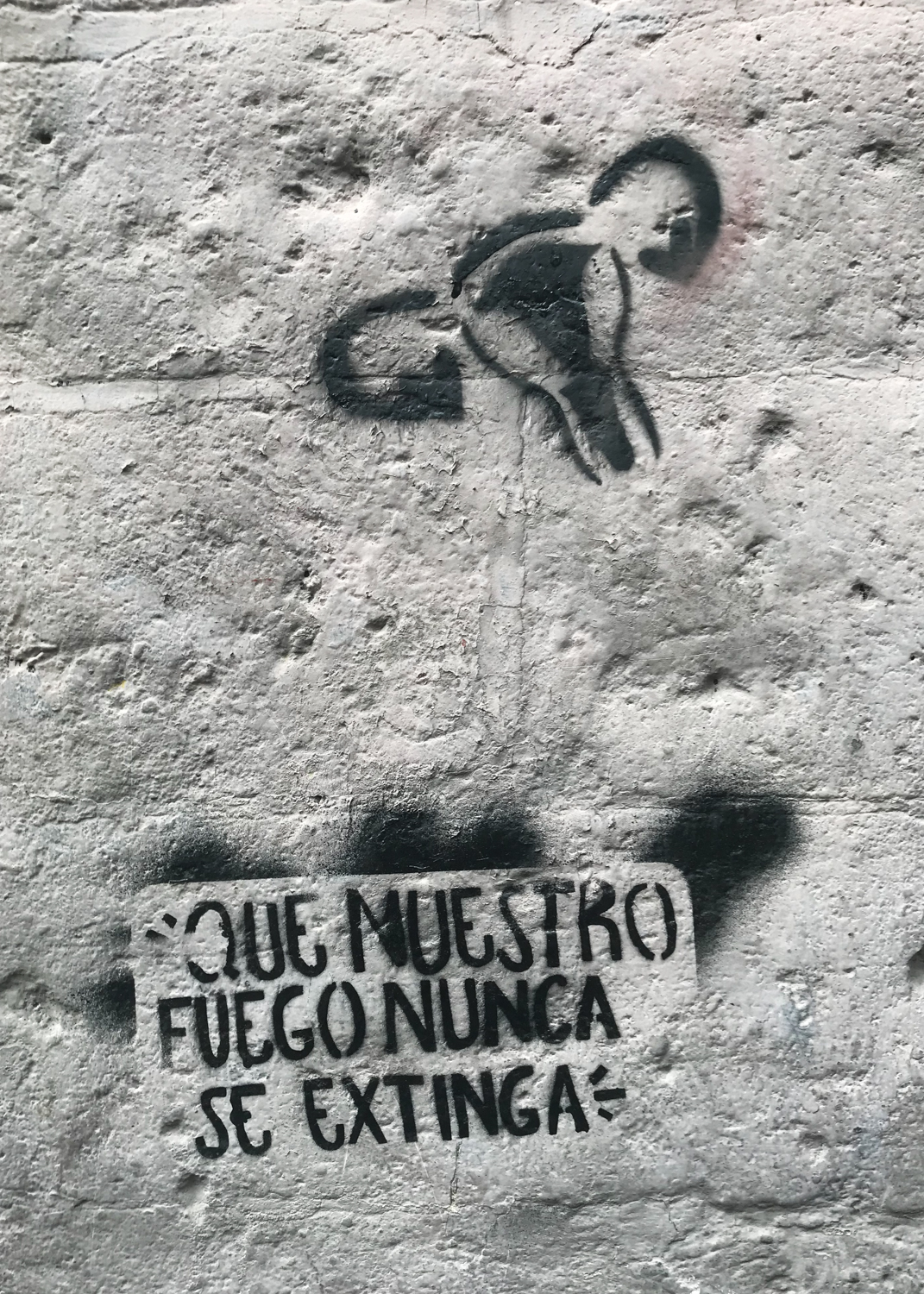 And to put a bow on this Mexico trip, here are some photos of the abundant street art I happened upon in Mexico City. Many I took on the first day were of political stencils along the Paseo de la Reforma. Common themes were justice for women, opposition to PIM (the Plan Integral Morales– an infrastructure project threatening indigenous communities not far from Mexico City), and continued outrage against the 2014 mass kidnapping of teachers from the Ayotzinapa Rural Teachers College.