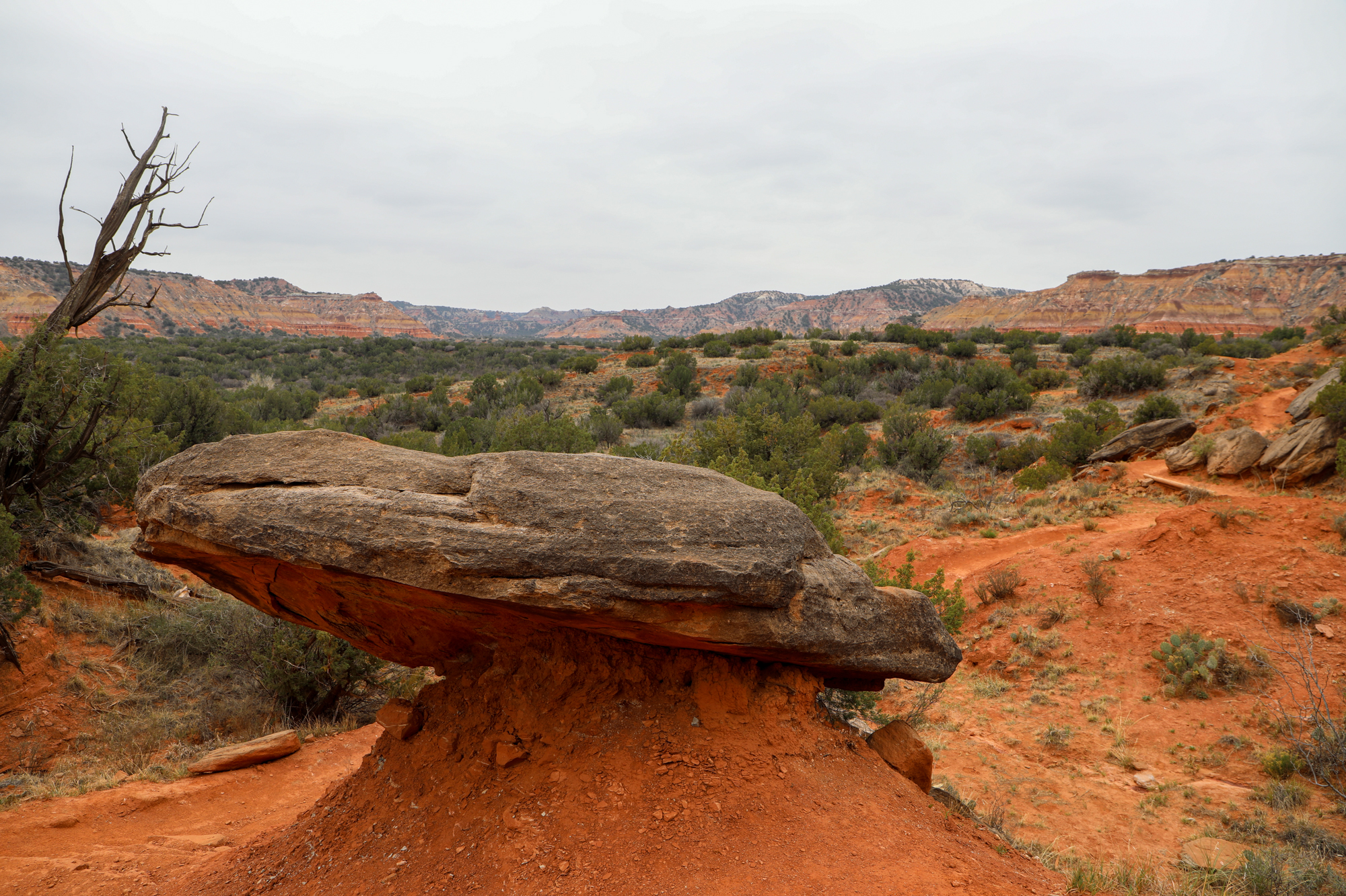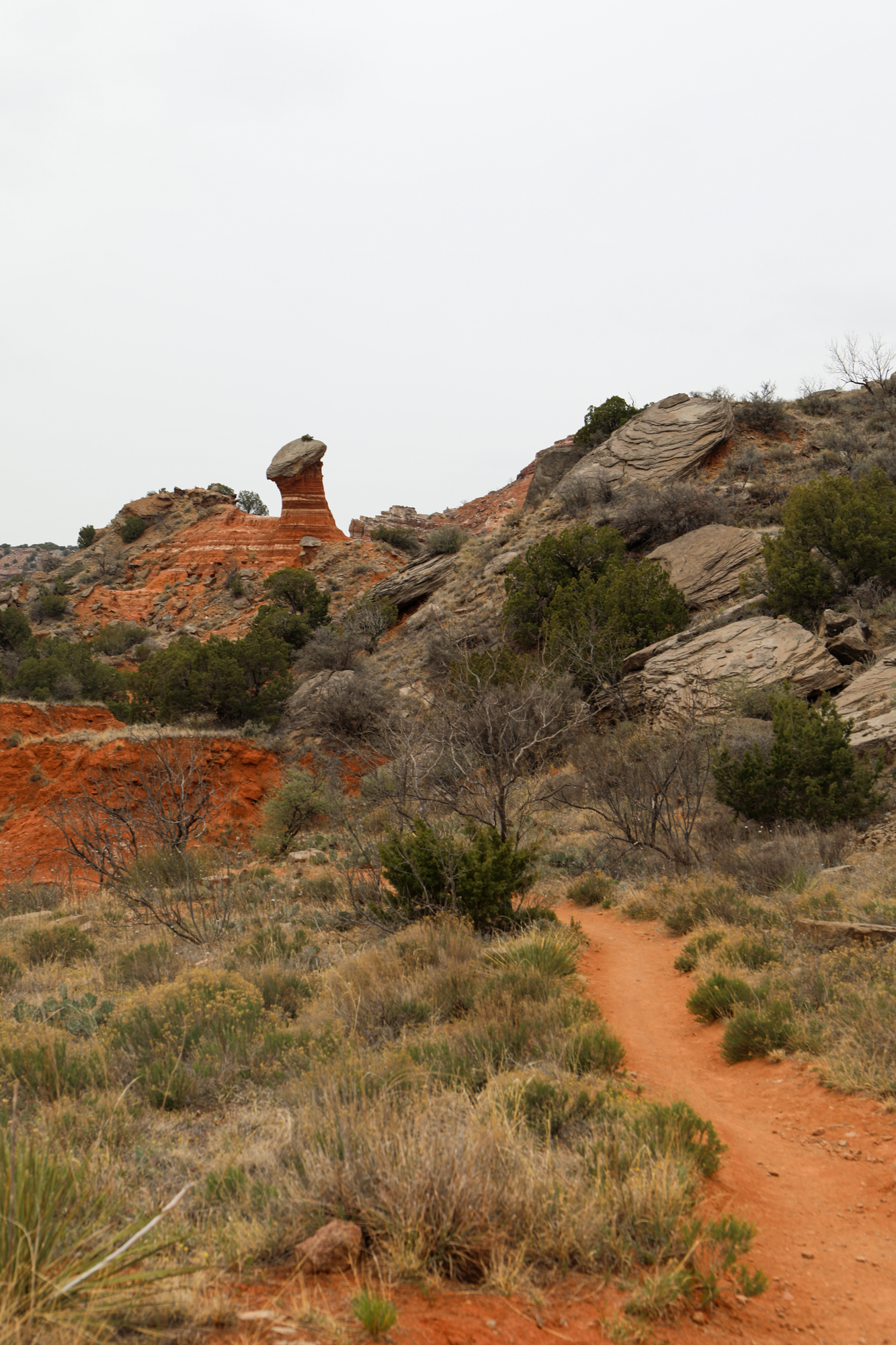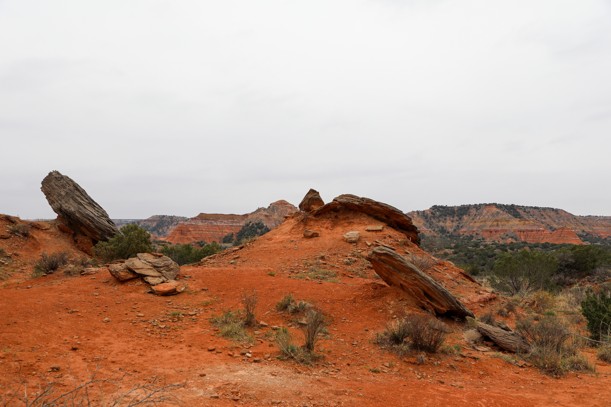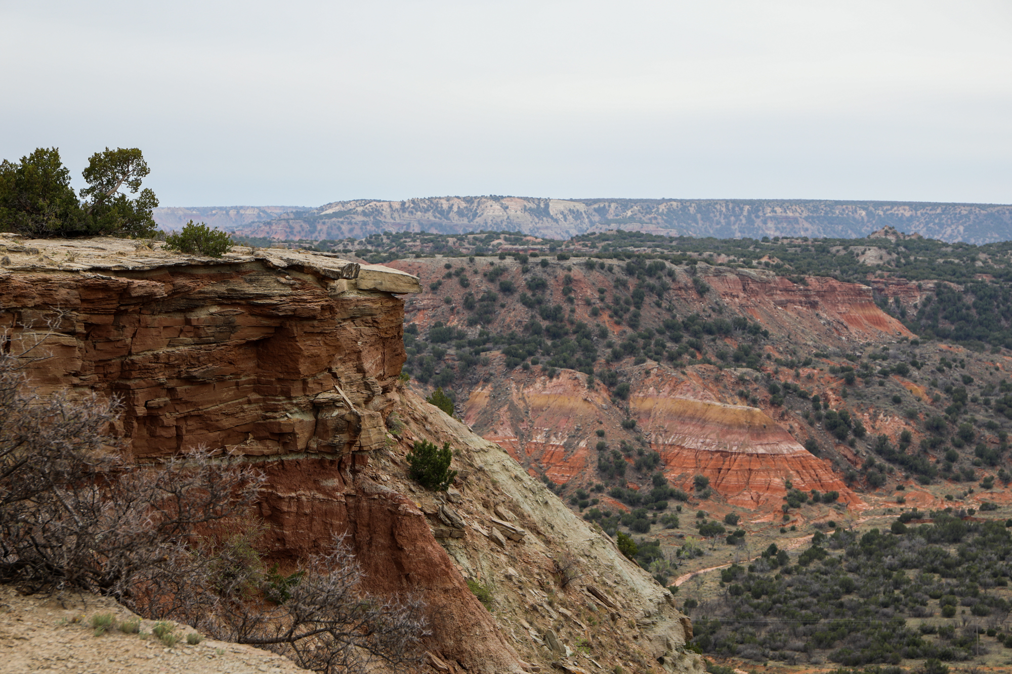 Palo Duro Canyon was formed by the Prairie Dog Fork of the Red River (my new preferred faux-expletive) carving its way through these High Plains over the centuries, revealing stripes of different colored stone from different geological eras.