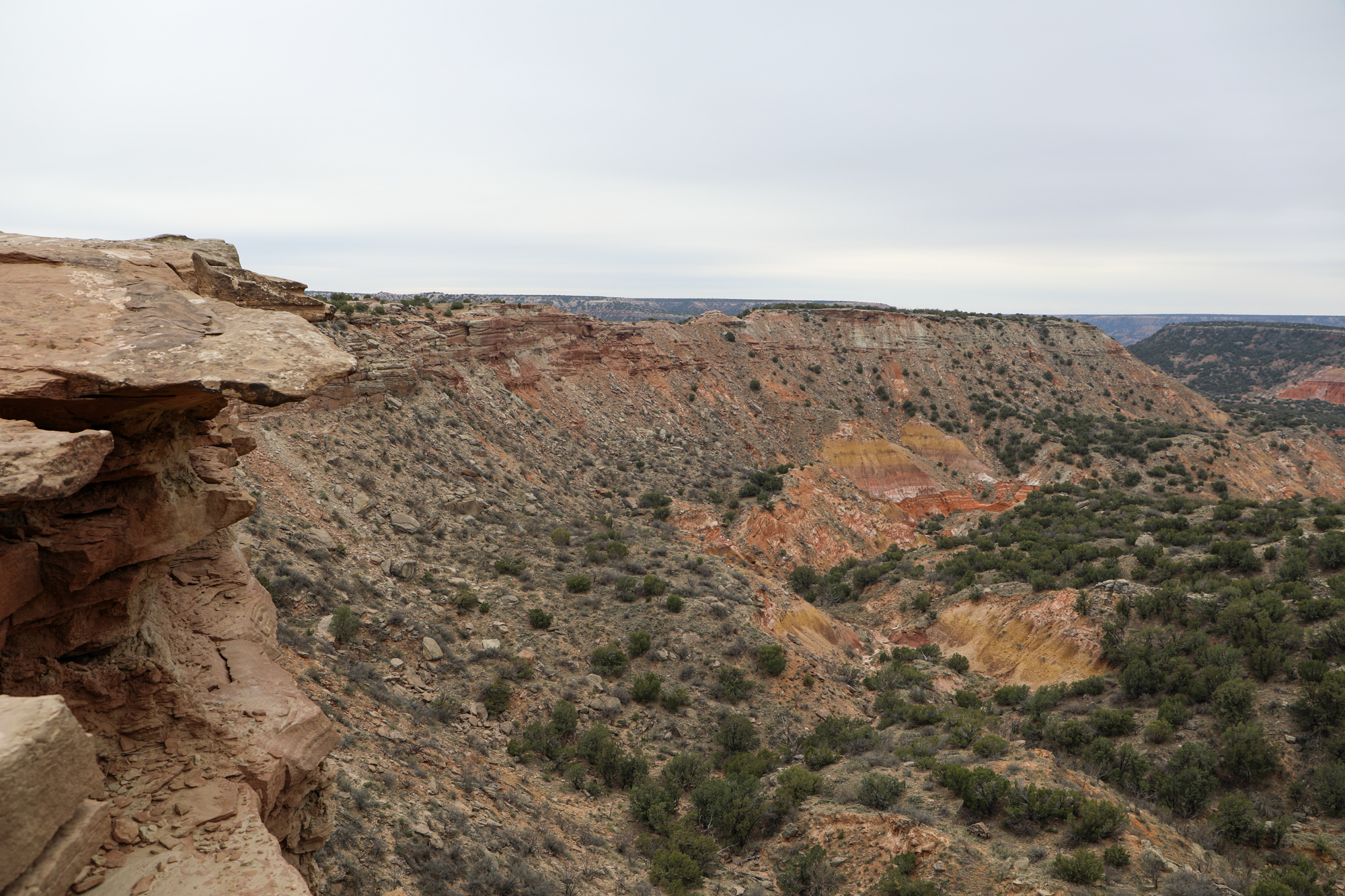 Just half an hour south of Amarillo is a real delight of a state park at Palo Duro Canyon, in aptly named Canyon, Texas. Amarillo was chillier than I expected it to be, and until visiting the park I didn’t realize that was partially because we were already at 3,605′ (1,099m) elevation.