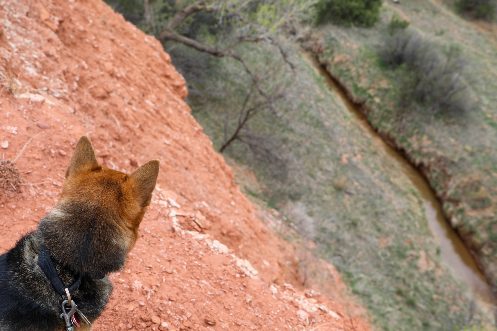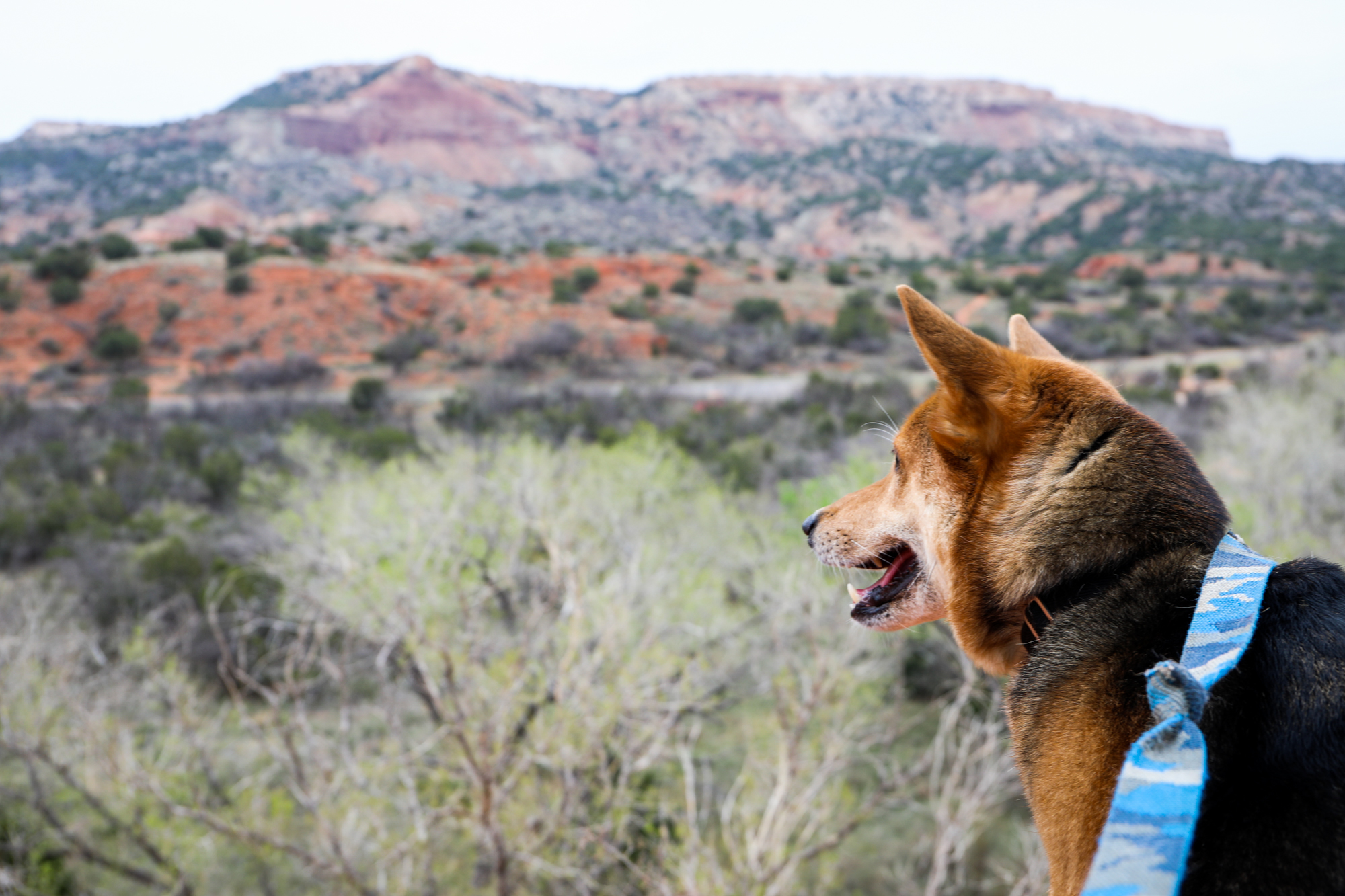 The park is expansive and Ollie and I only did portions of two of the sixteen trails. First we embarked along the CCC Trail, named for the New Deal program that put men to work in National Parks following the Great Depression. I found that the Texas parks made a real point of paying tribute to that program. This trek was cut short when my poor little companion stepped on a dang cactus.