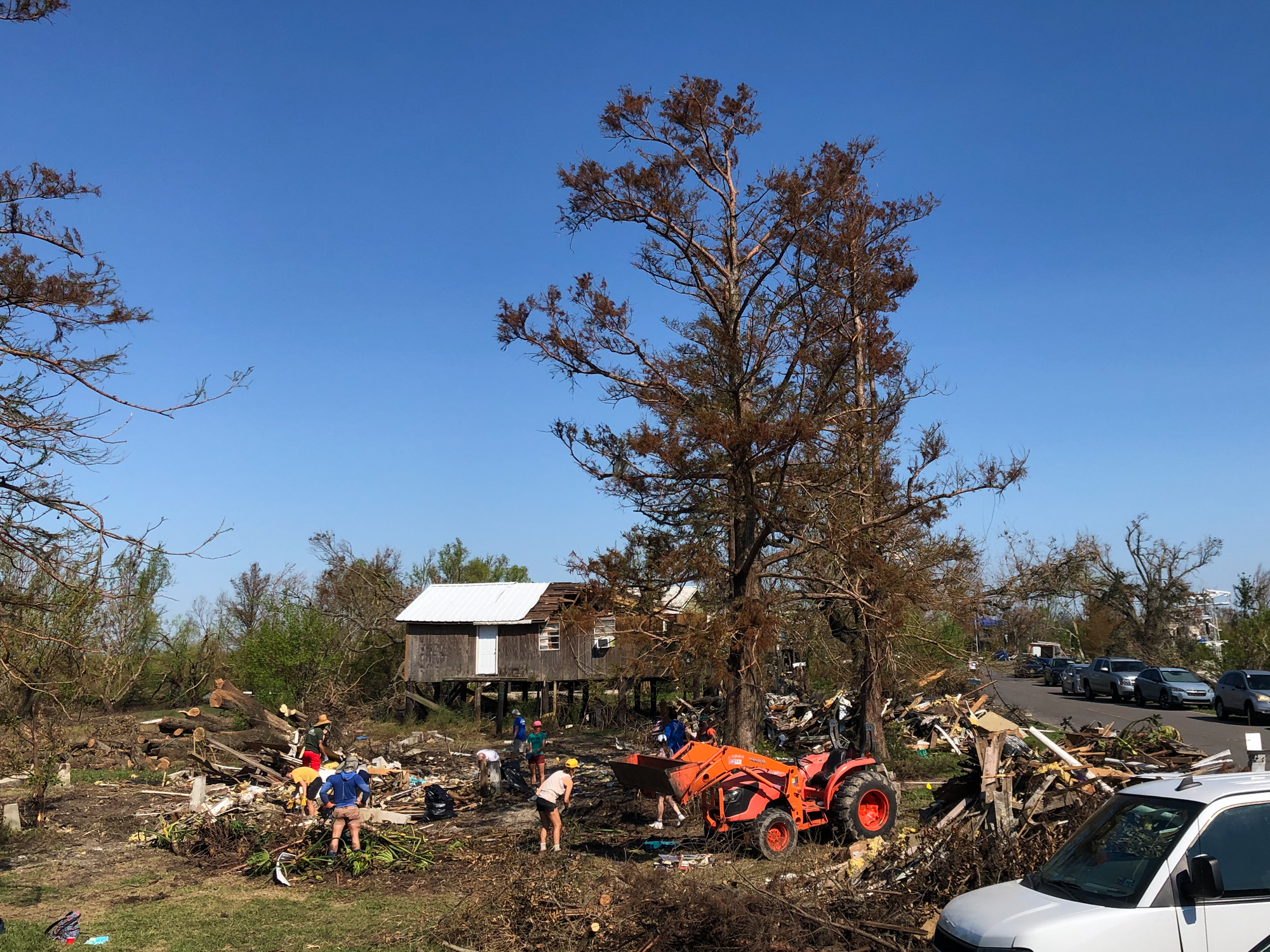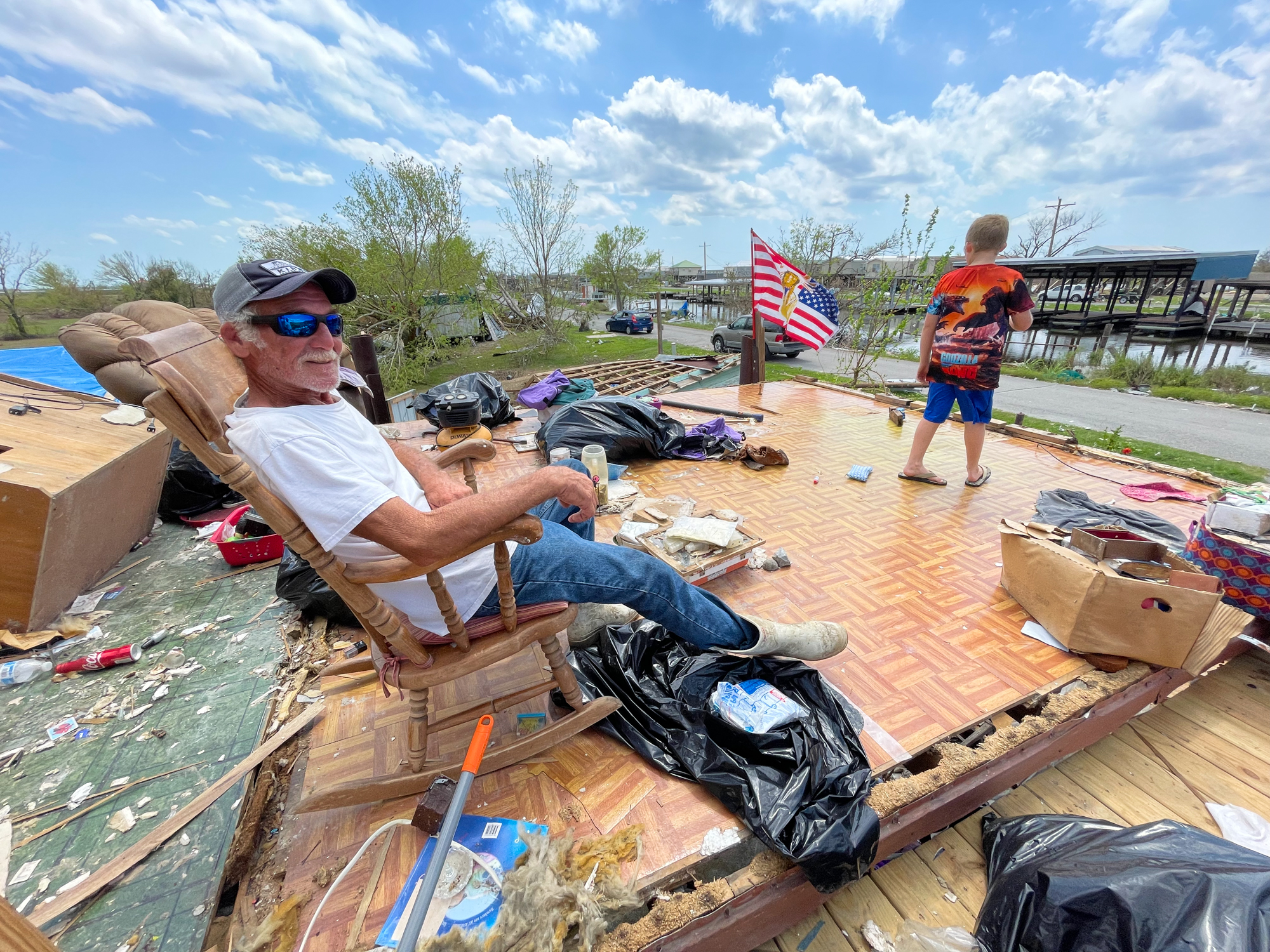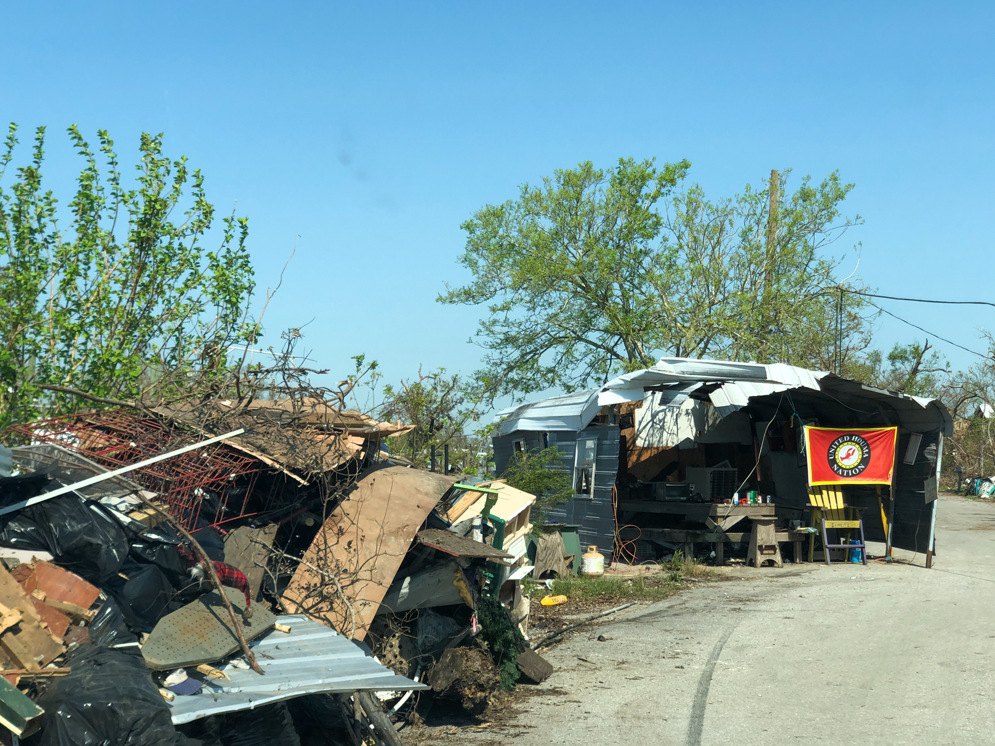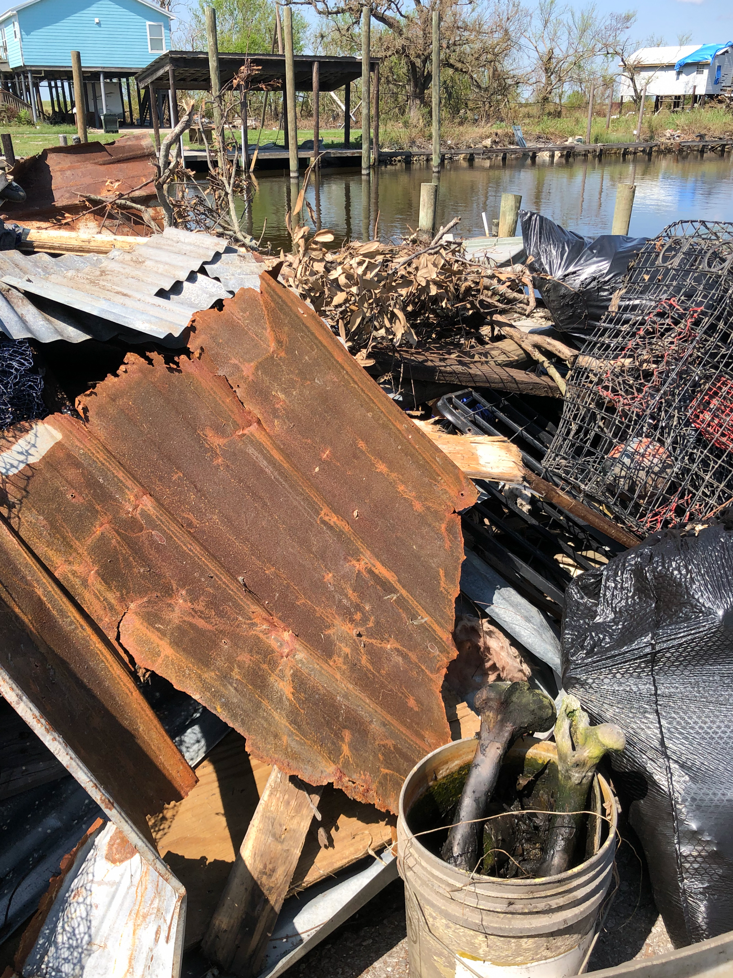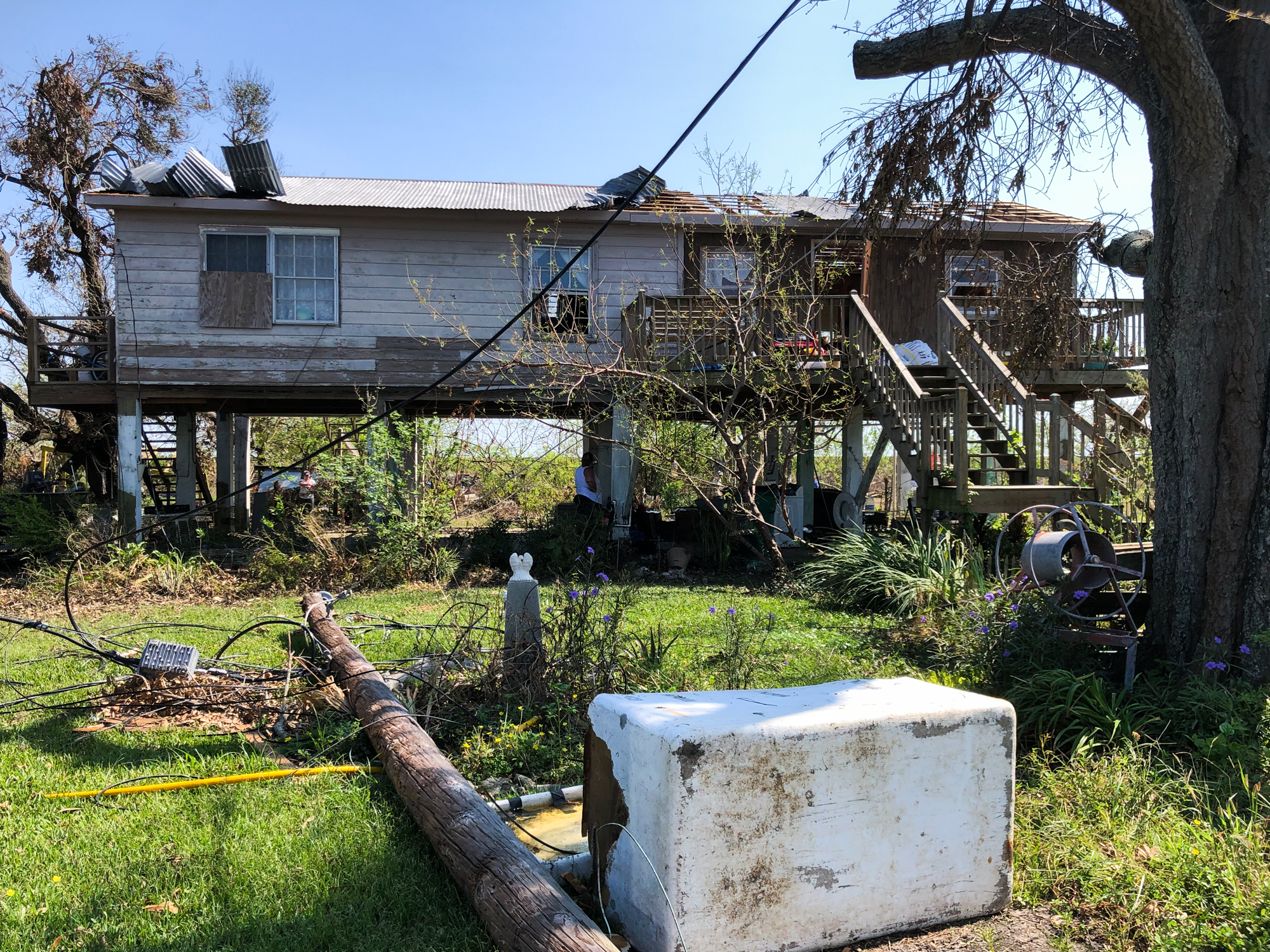 Most of the family had evacuated to Houma, which didn’t fare too great either, but Roland’s son, daughter-in-law, and grandson told us they had only gone as far as Cut Off. They’d booked a hotel but had their reservation canceled, as all hotel staff had evacuated. They had friends in Cut Off who’d evacuated and said they could use their house. They said they had to run from room to room during the storm as different parts of the roof blew away.