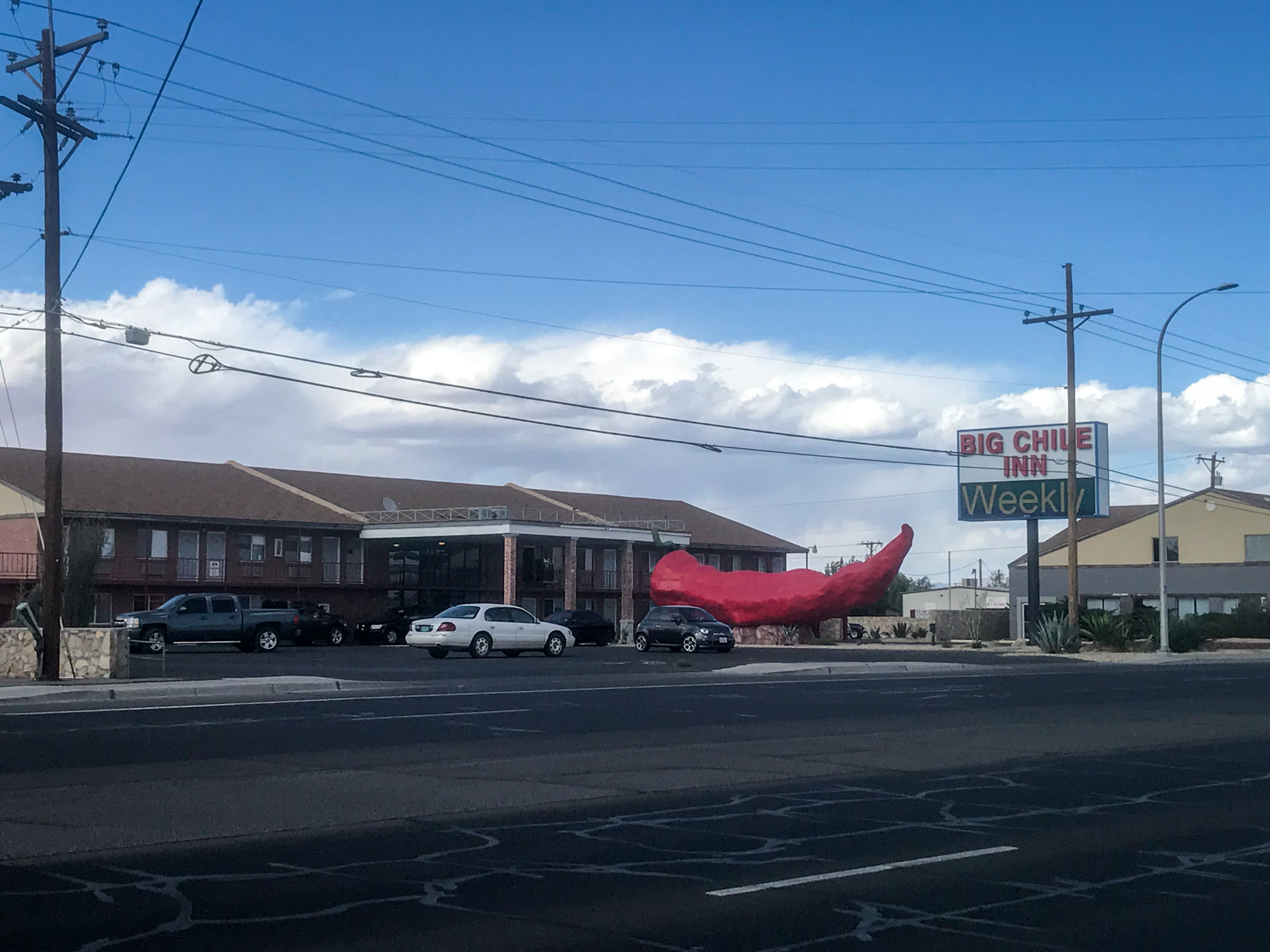 The next morning I packed up and set my GPS for White Sands National Monument! But something weird happened… it took me as far as the missile range, then completely diverted me, citing a road block. Everything about what was happening felt wrong, and it was: I got deposited at an empty hotel parking lot serving as basecamp for an overpass construction site, in the complete opposite direction of actual White Sands. I was too far gone to consider turning back.