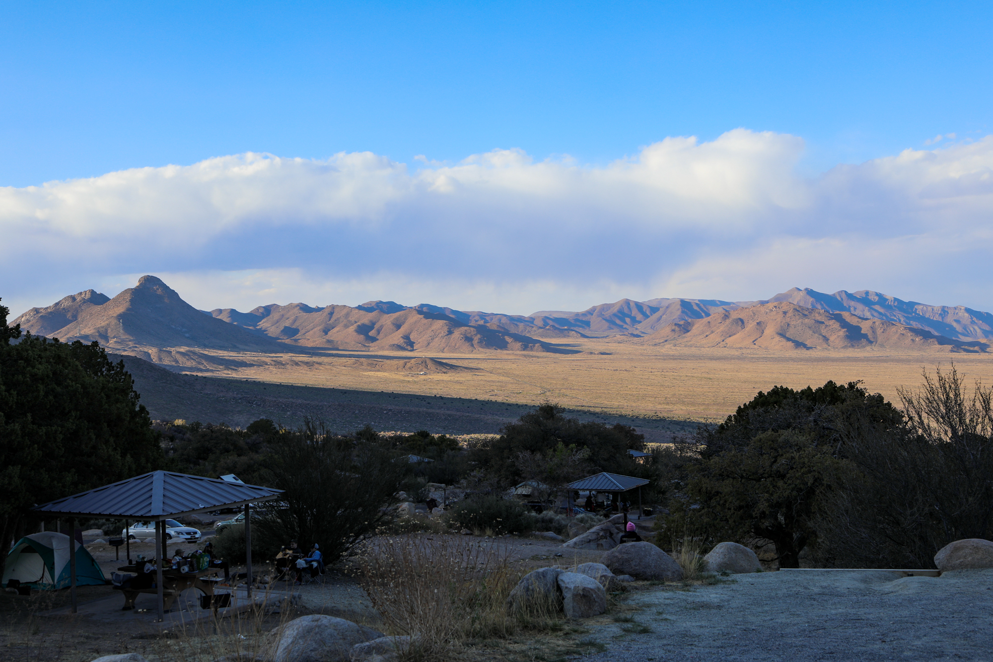 A neighbor at El Pais Motel in Tucson made a point of mentioning how much she’d loved visiting White Sands, New Mexico, so before commencing the next leg of my eastward journey on the morning of the 23rd I hastily looked up a campground for the evening in the White-Sands-adjacent Organ Mountains.