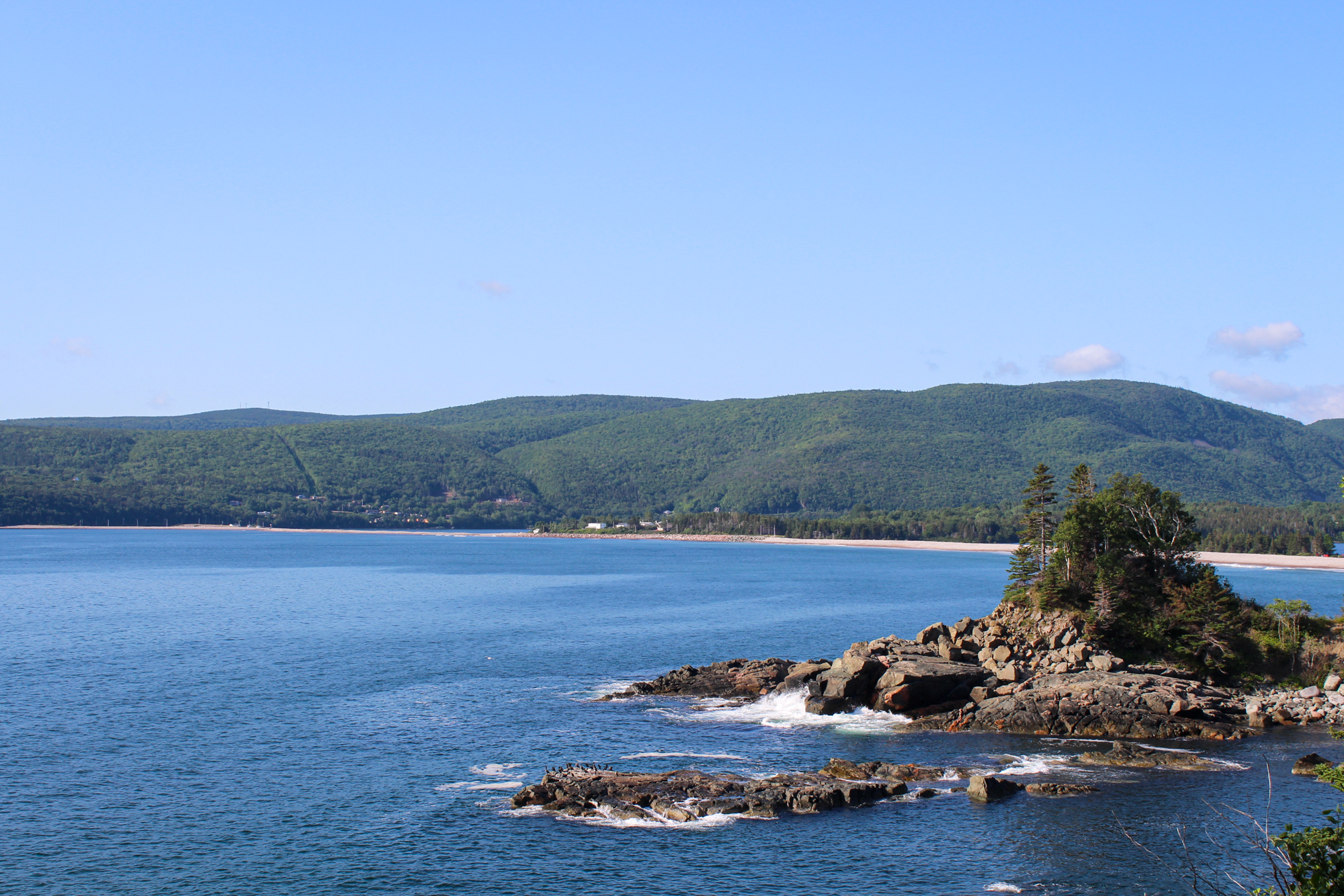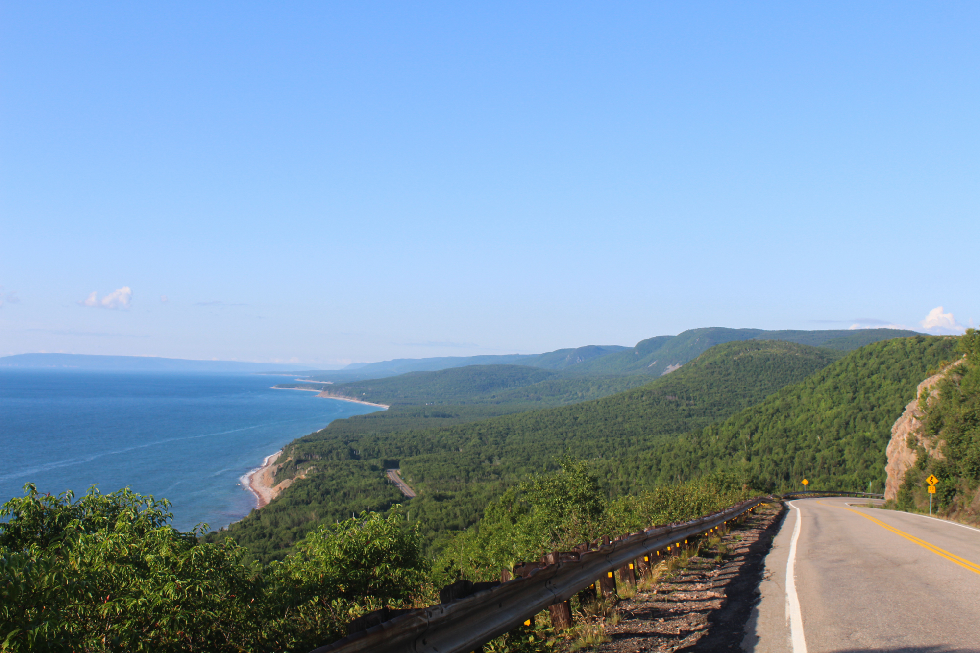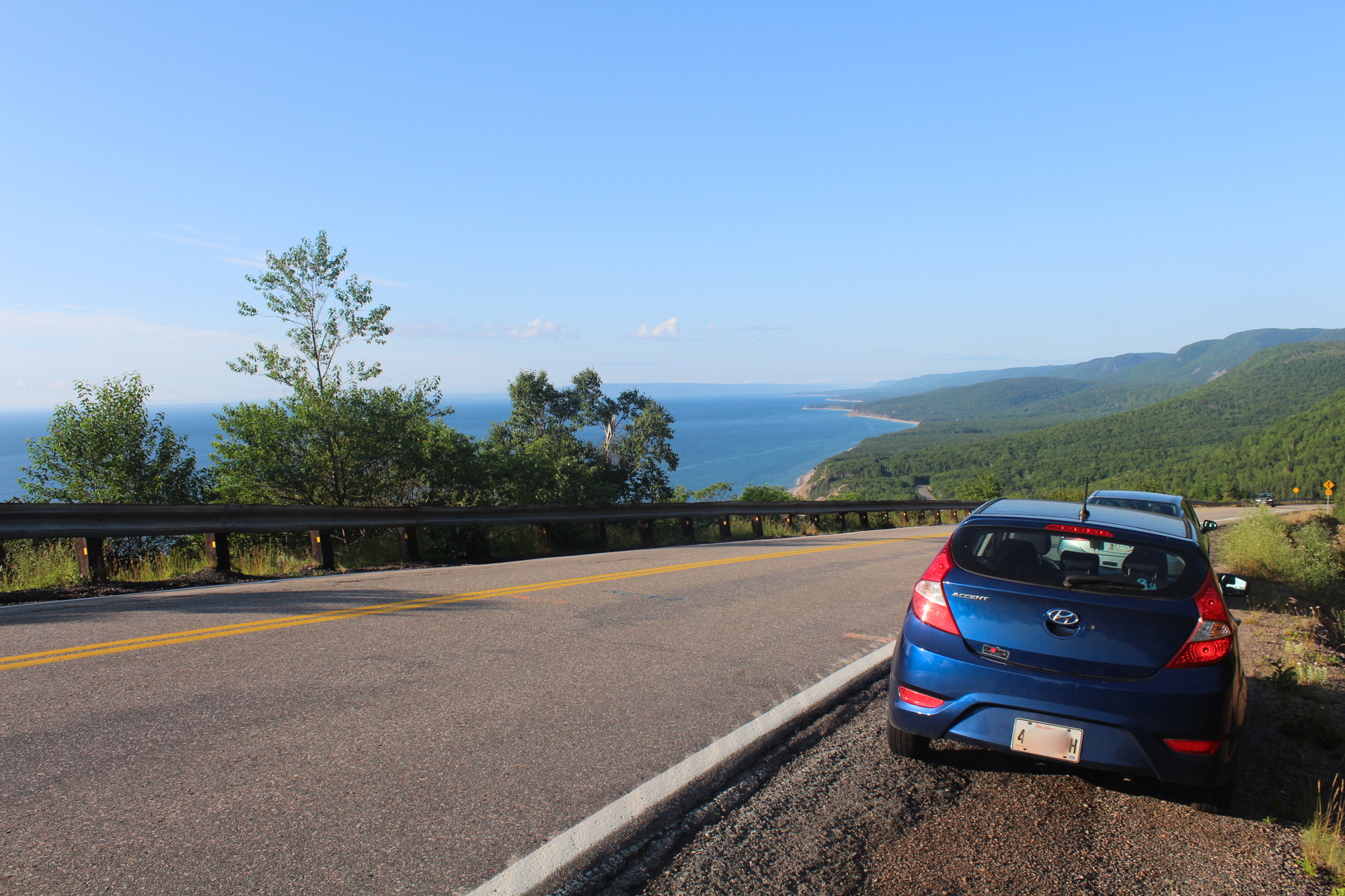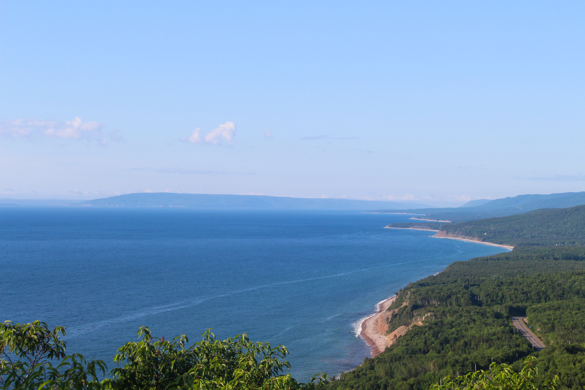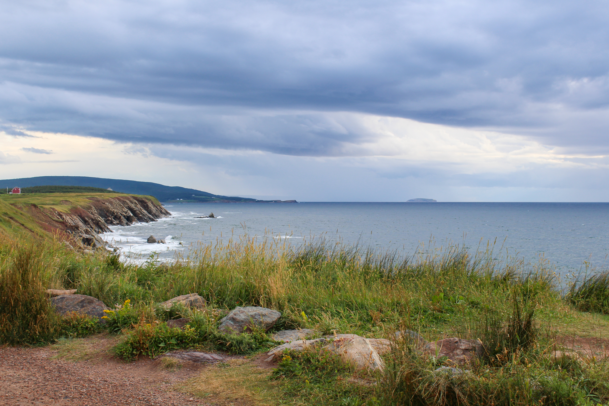 As promised: following my dear friend’s wedding at Grand Narrows, the happy couple graciously invited us to join them for a scenic tour of the Cabot Trail, a picturesque route along the cliffs and shores of the Cape Breton highlands. As we were leaving Grand Narrows we were confronted with a hectic downpour that made us slightly nervous about the sight-seeing conditions, but thankfully things cleared up in the course of our lunch in the cute town of Baddeck. (Of note: all the towns were cute; I’ll lose that adjective.)