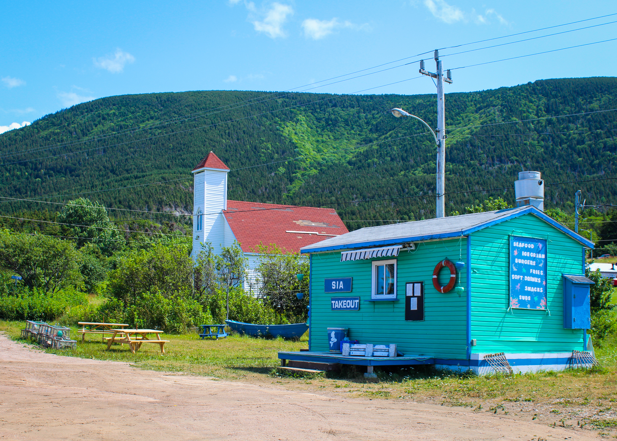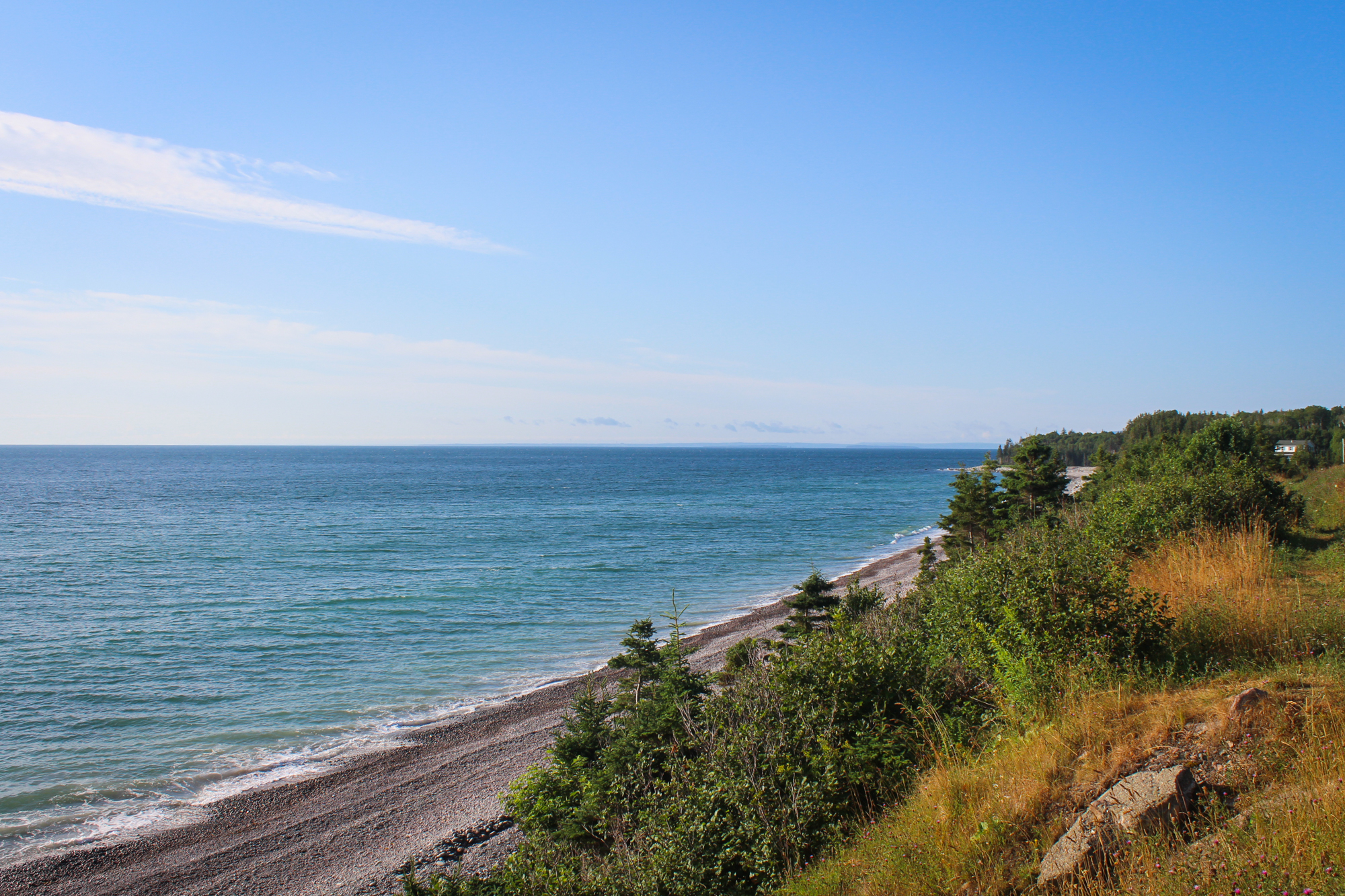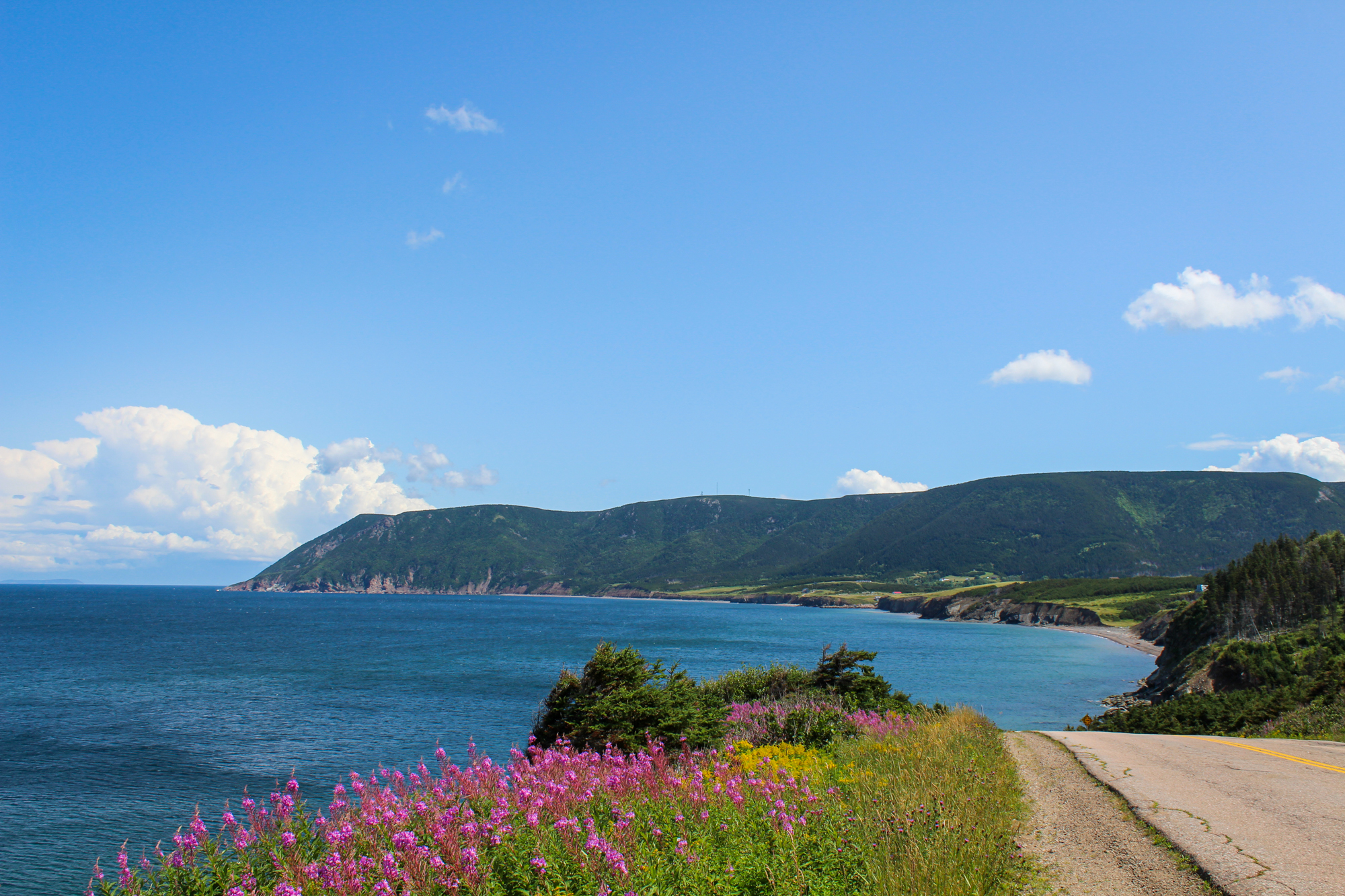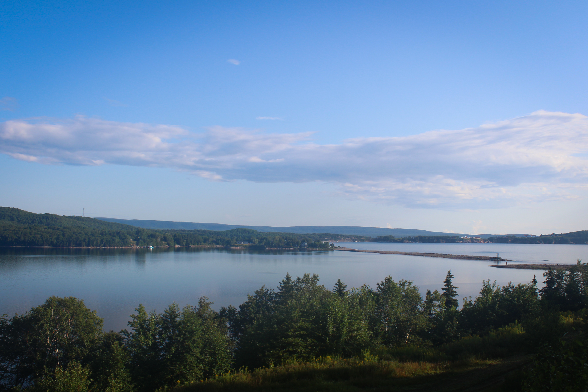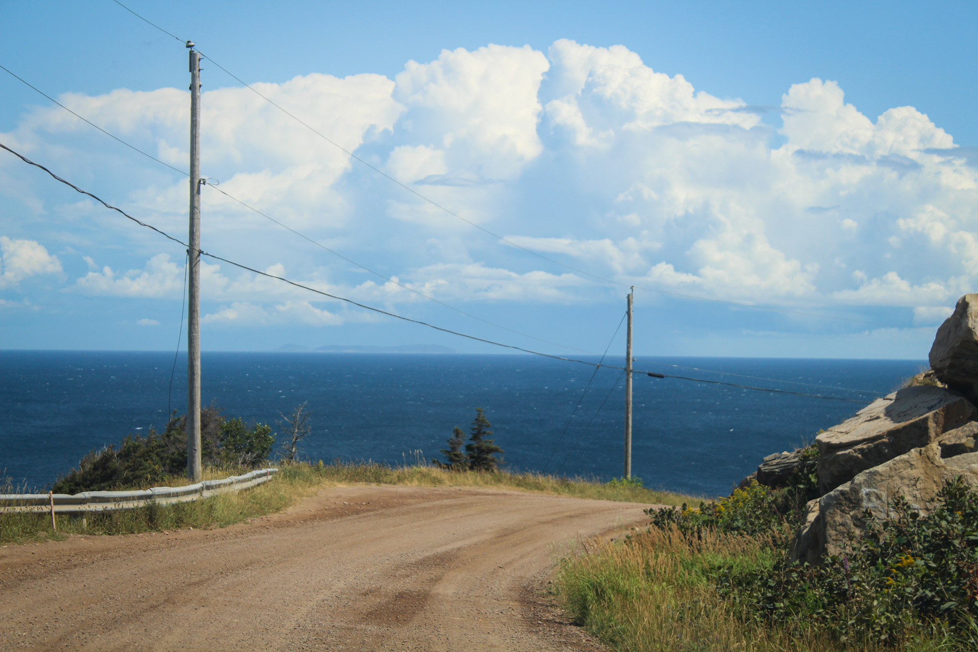 As promised: following my dear friend’s wedding at Grand Narrows, the happy couple graciously invited us to join them for a scenic tour of the Cabot Trail, a picturesque route along the cliffs and shores of the Cape Breton highlands. As we were leaving Grand Narrows we were confronted with a hectic downpour that made us slightly nervous about the sight-seeing conditions, but thankfully things cleared up in the course of our lunch in the cute town of Baddeck. (Of note: all the towns were cute; I’ll lose that adjective.)