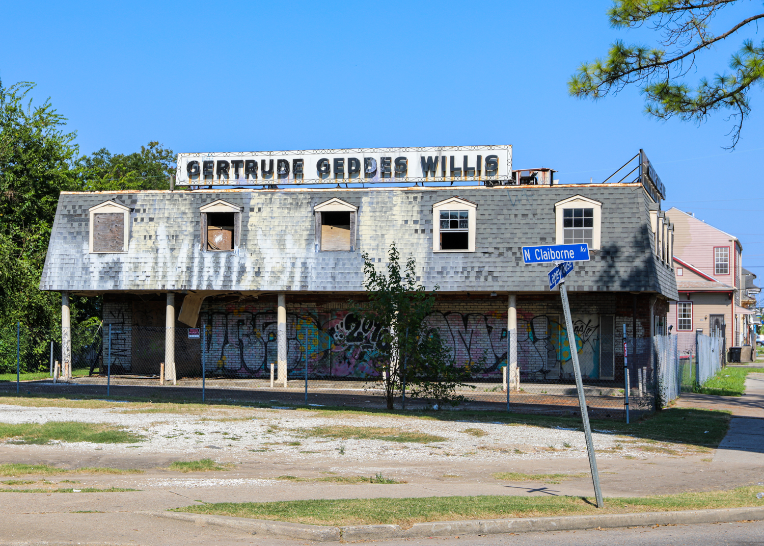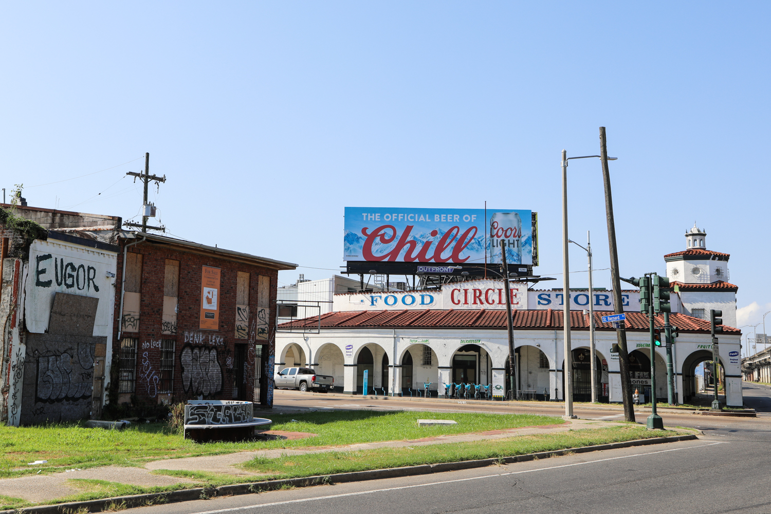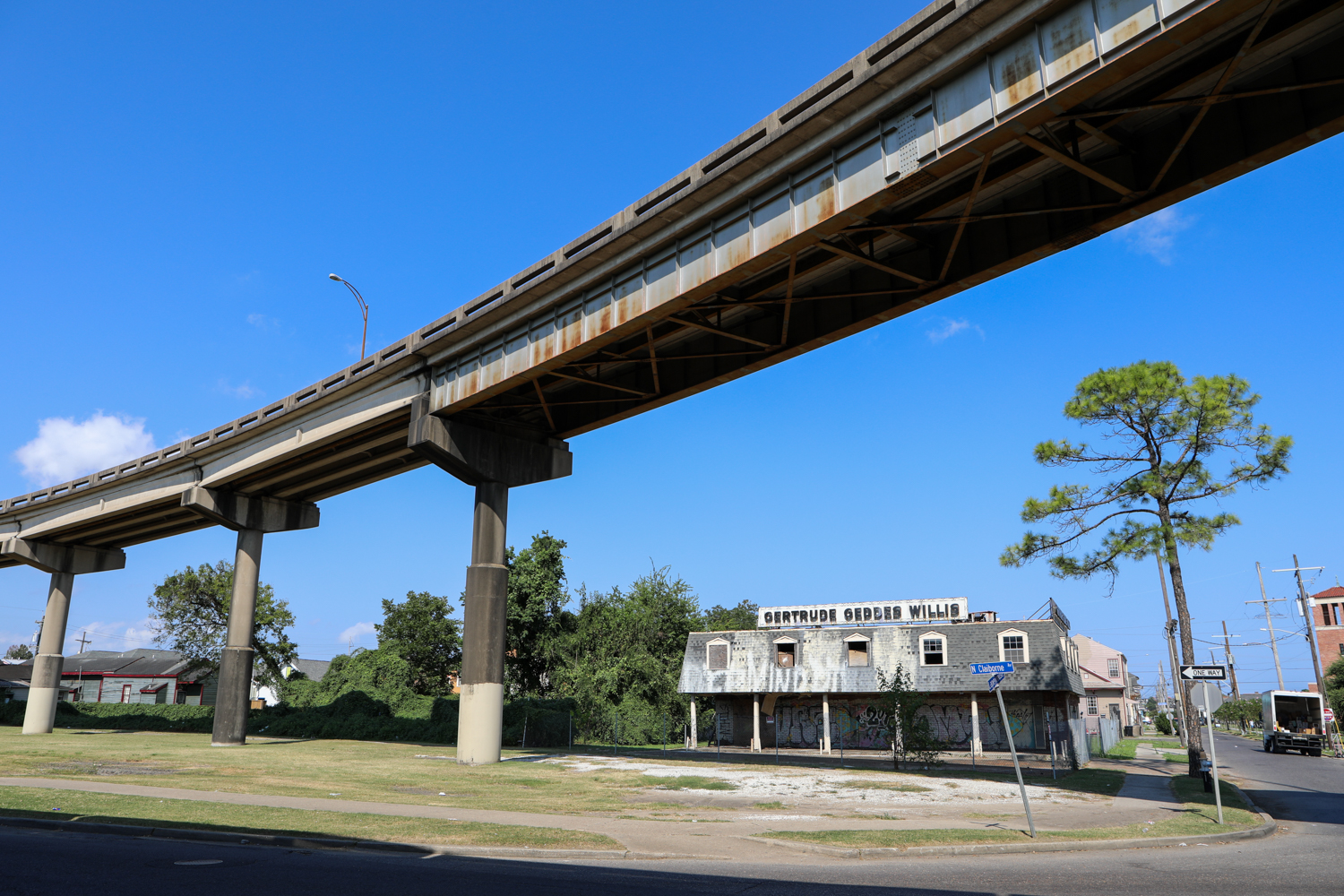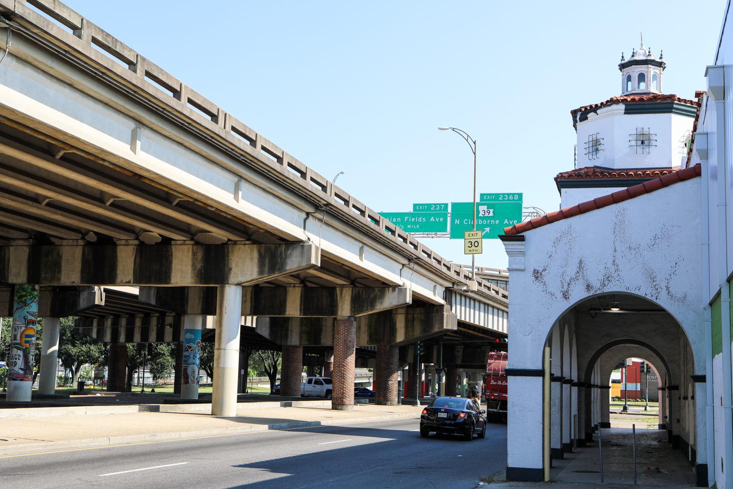 Up until the ’70s, the Claiborne Corridor was a thriving Black business district, with stately live oaks along the neutral ground (as can be found along Esplanade or Saint Charles still today) where the concrete columns supporting the highway now stand. It is one of the shameful facts of development in New Orleans that, of course, this was the thoroughfare selected for the route of the interstate when it came time to link the Big Easy up to the modern American highway system. The impact the decision had on the flourishing community there was severe, and devastating. Property values plummeted, businesses closed, and longtime residents were forced from their homes (or simply chose to relocate, after the green views outside their front door were replaced with cement).