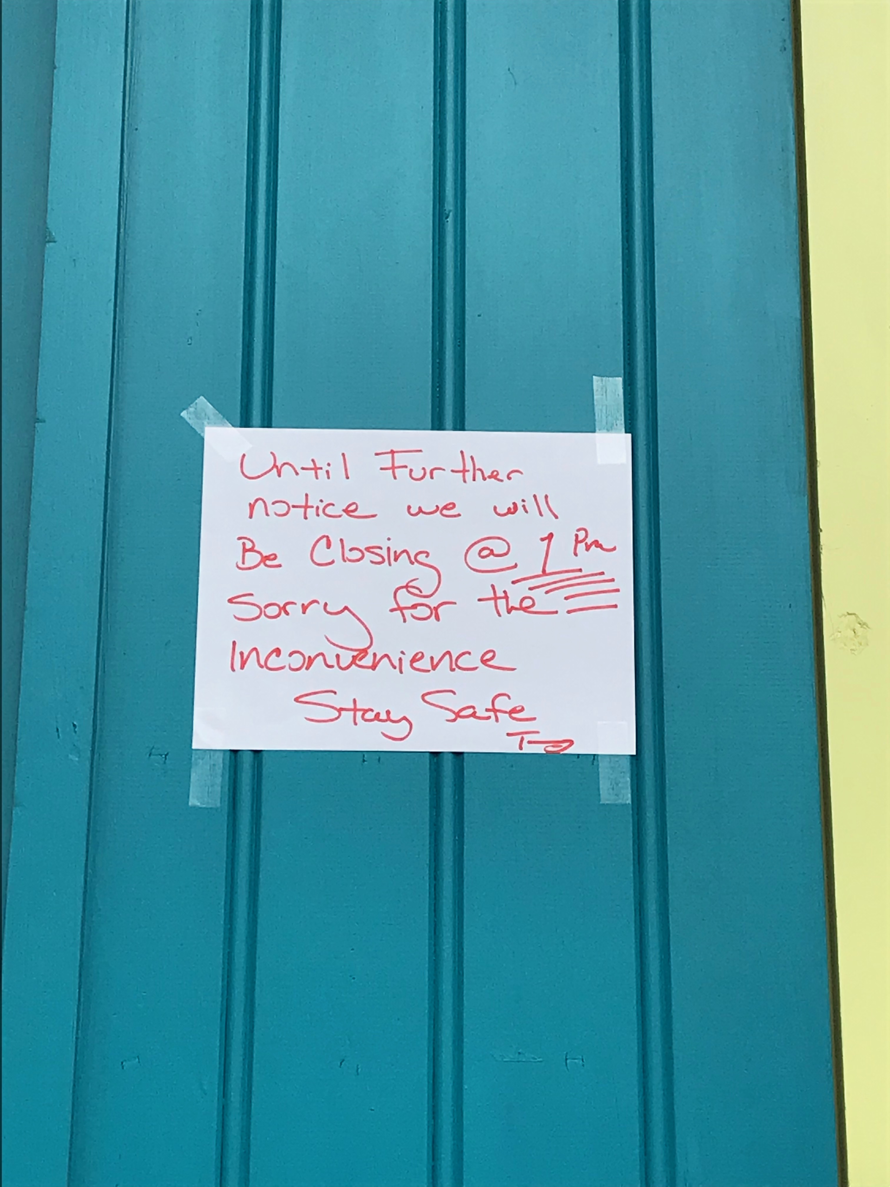 quarantine week 1 – 2 treme coffeehouse shutdown sign