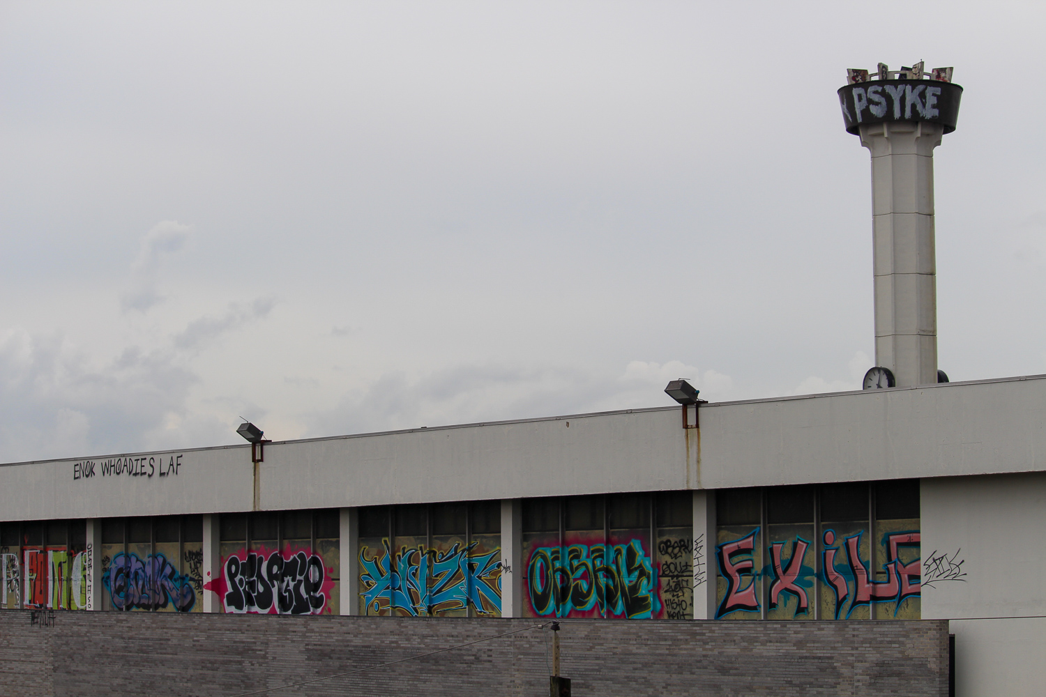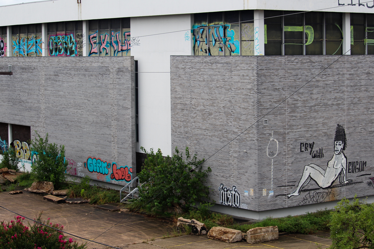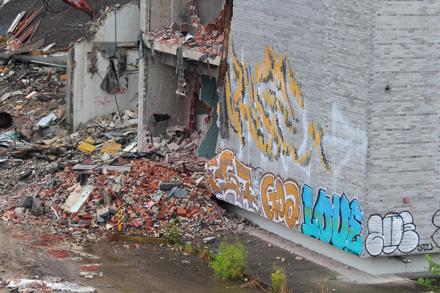 When it ceased to operate as a news center, the building became a hub for a different sort of communication as street artists slathered the walls– inside and out– with their tags and graphics. It was an eye-catching landmark that I, admittedly, took for granted the myriad times I passed it on the Pontchartrain Expressway, until I learned it was scheduled to be razed for a golf center. I took to the Broad Street bridge in June 2019 to catch some photos of the historic building’s demise: