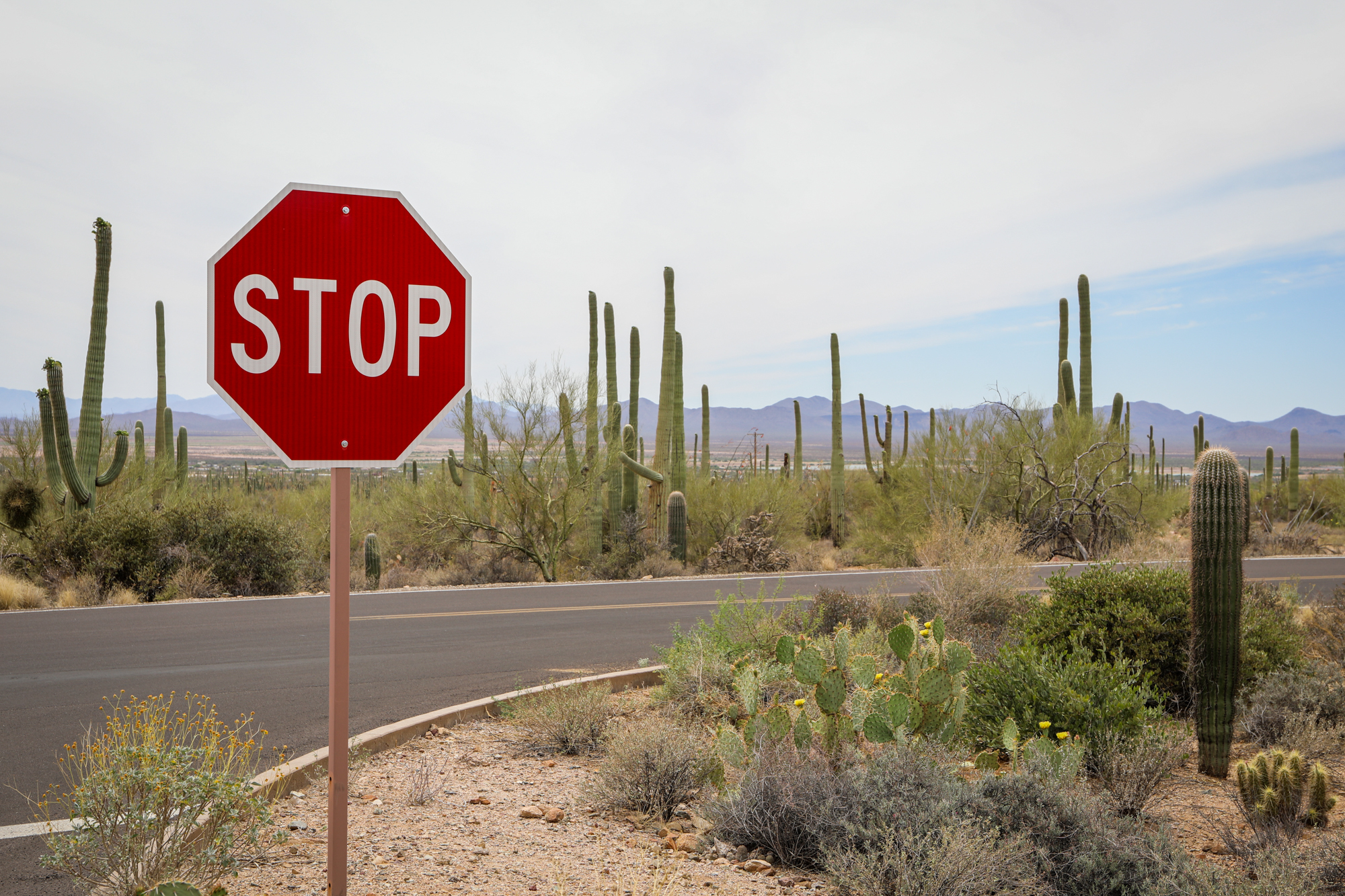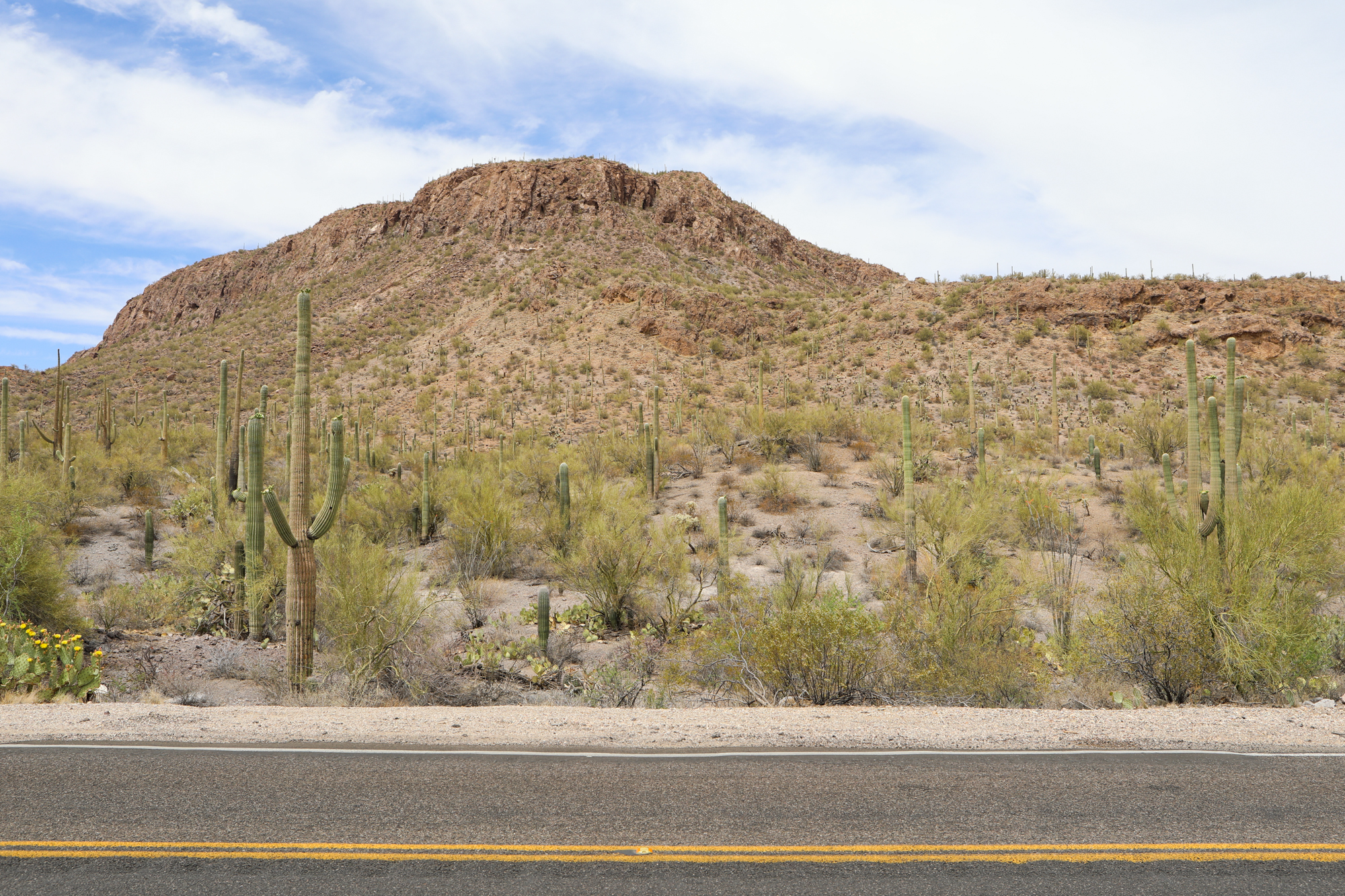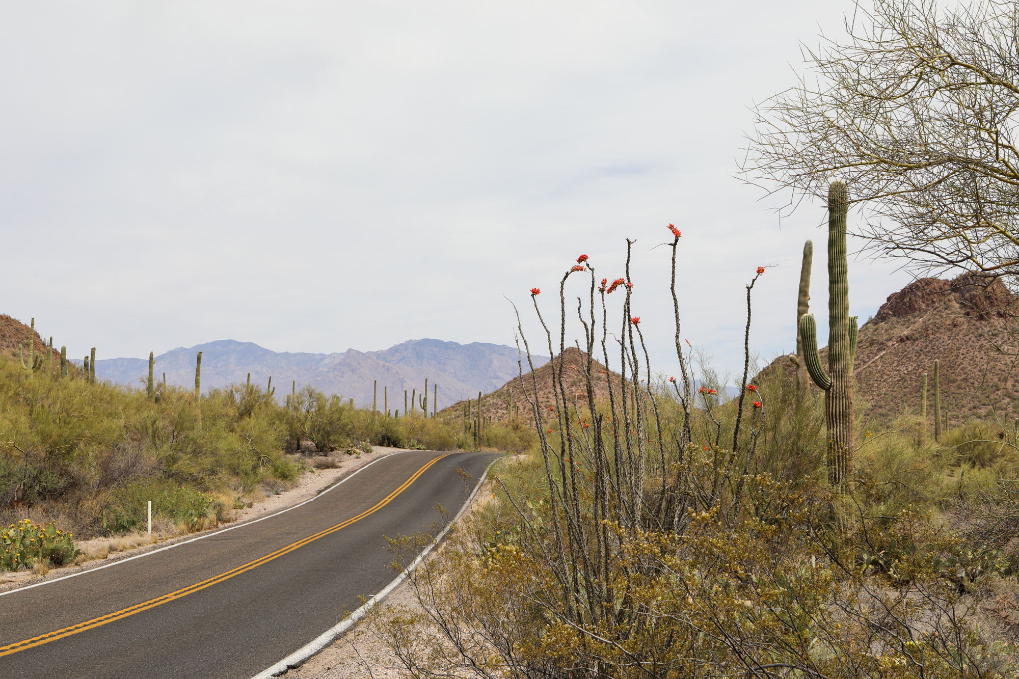 Without Route 66 as the blueprint, I set my course around a few hastily-chosen and conveniently-located cities and landmarks. The first leg was to Tucson, via Saguaro National Park. The theme of ‘going all the way to but not actually entering a point of interest’ (as begun by my near misses at Petrified Forest and Meteor Crater on my way to Flagstaff) was continued here: I was under the correct impression that it was National Park Week, but under the incorrect impression that that gave free entry to all parks all week (it was just the first day). Once again feeling that a quick drive-through wasn’t worth the $25 admission, I took some pictures in the Visitor’s Center parking lot and continued on my journey.