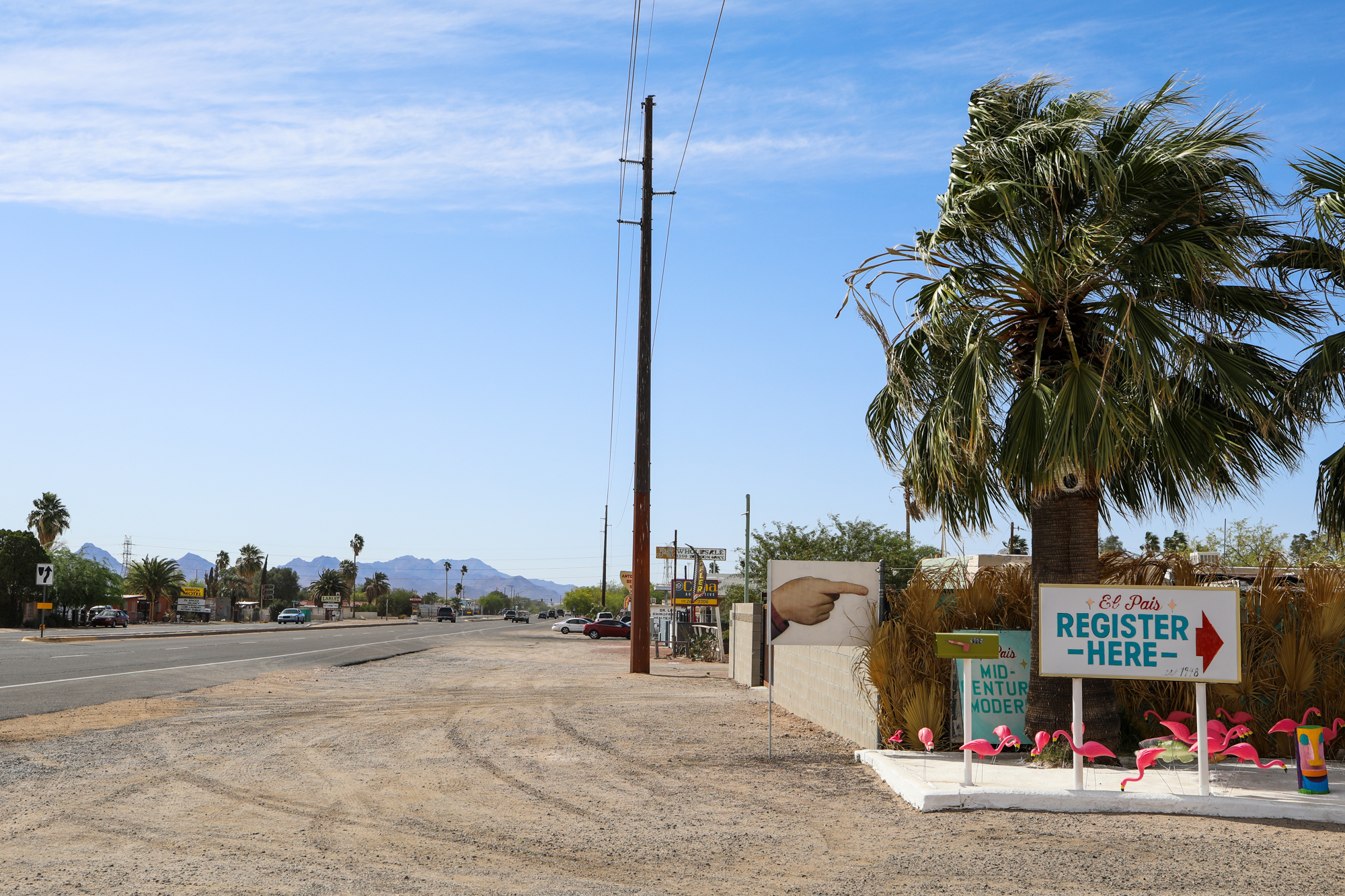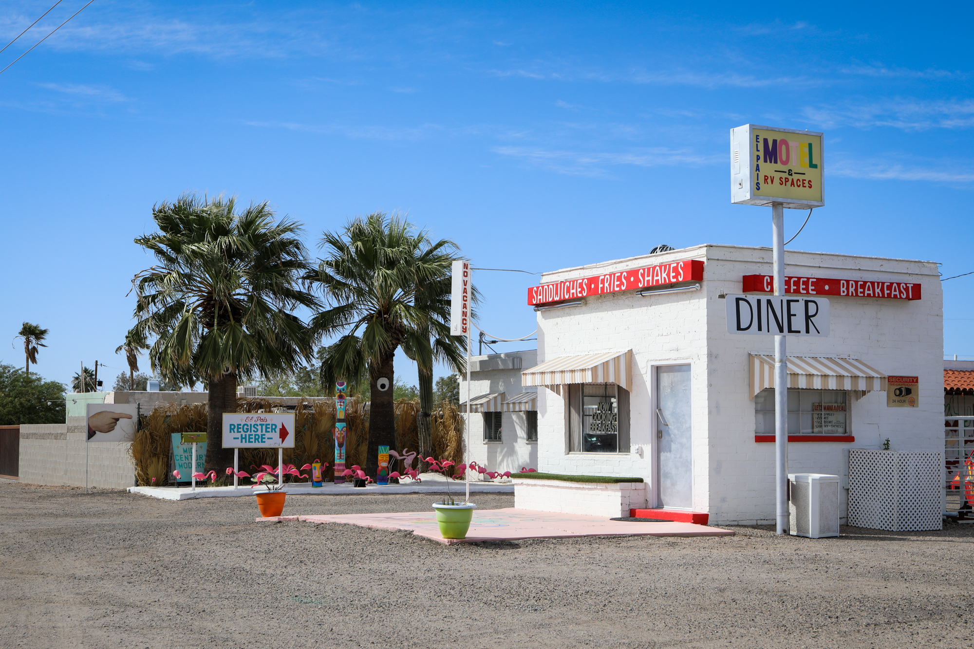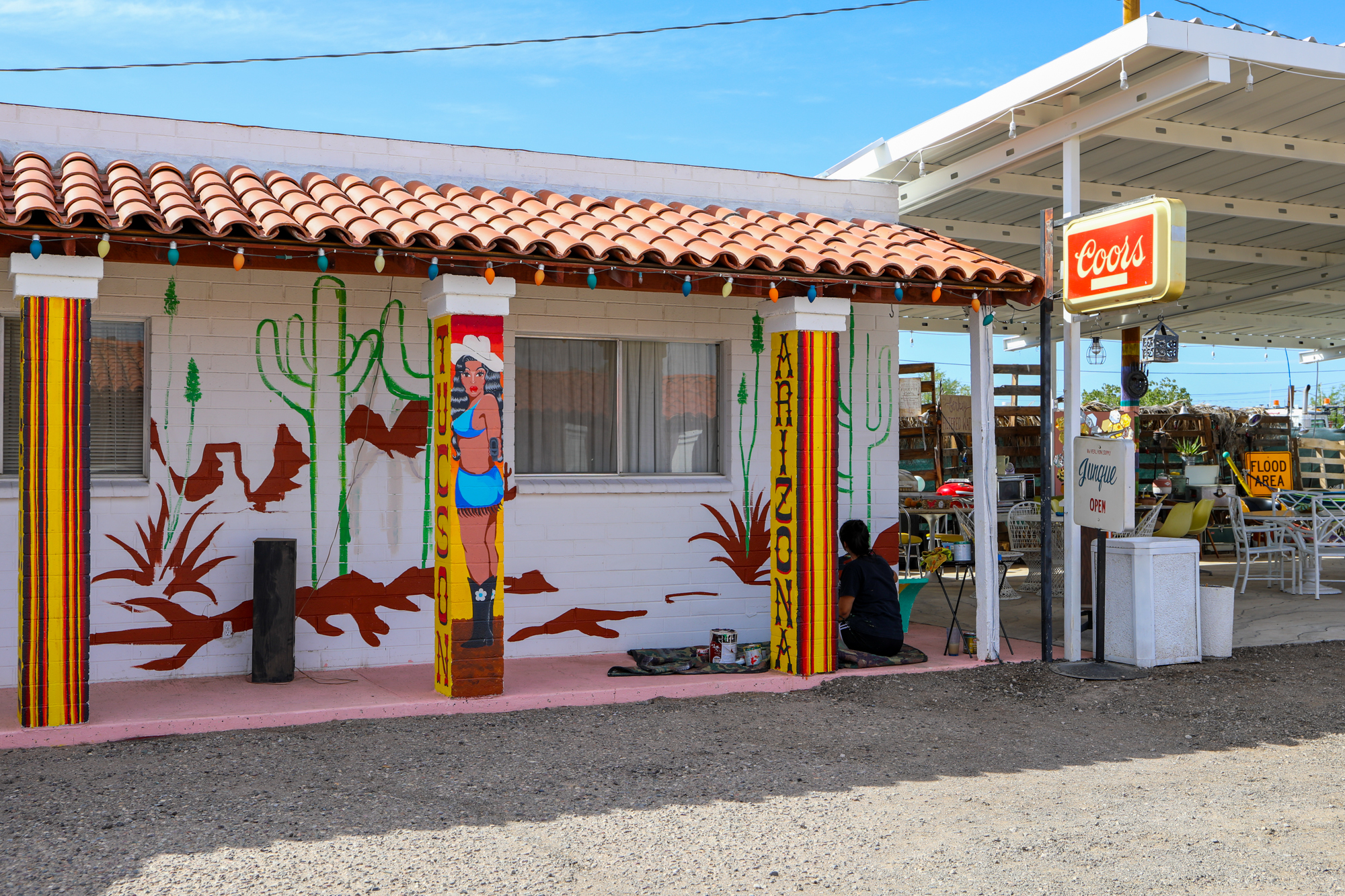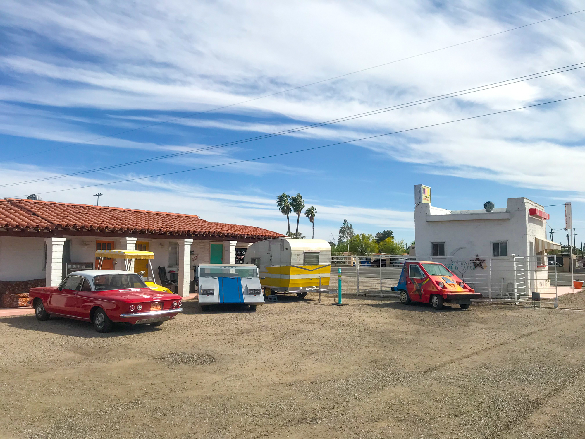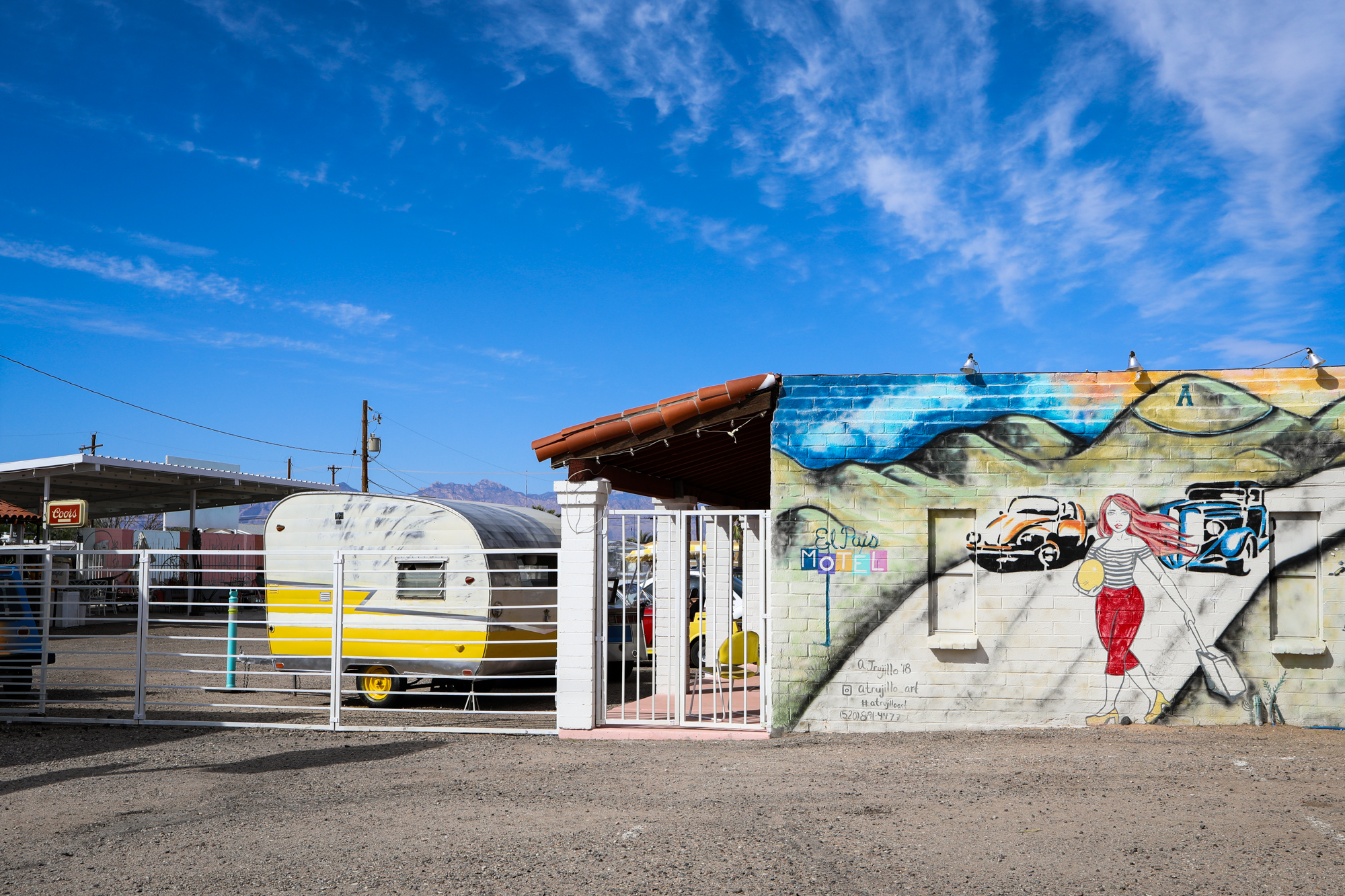 In Tucson I stayed at a cool and quirky spot I’d found on Hipcamp called El Pais Motel. While it was a motel with proper rooms, now that I was making my southern route where evening temps stayed out of the 40s, I decided it was time to save a bit of money and return to the camping routine. Which was… funny in the El Pais lot. It was very windy and dusty, which makes for difficult set-up as a solo camper.