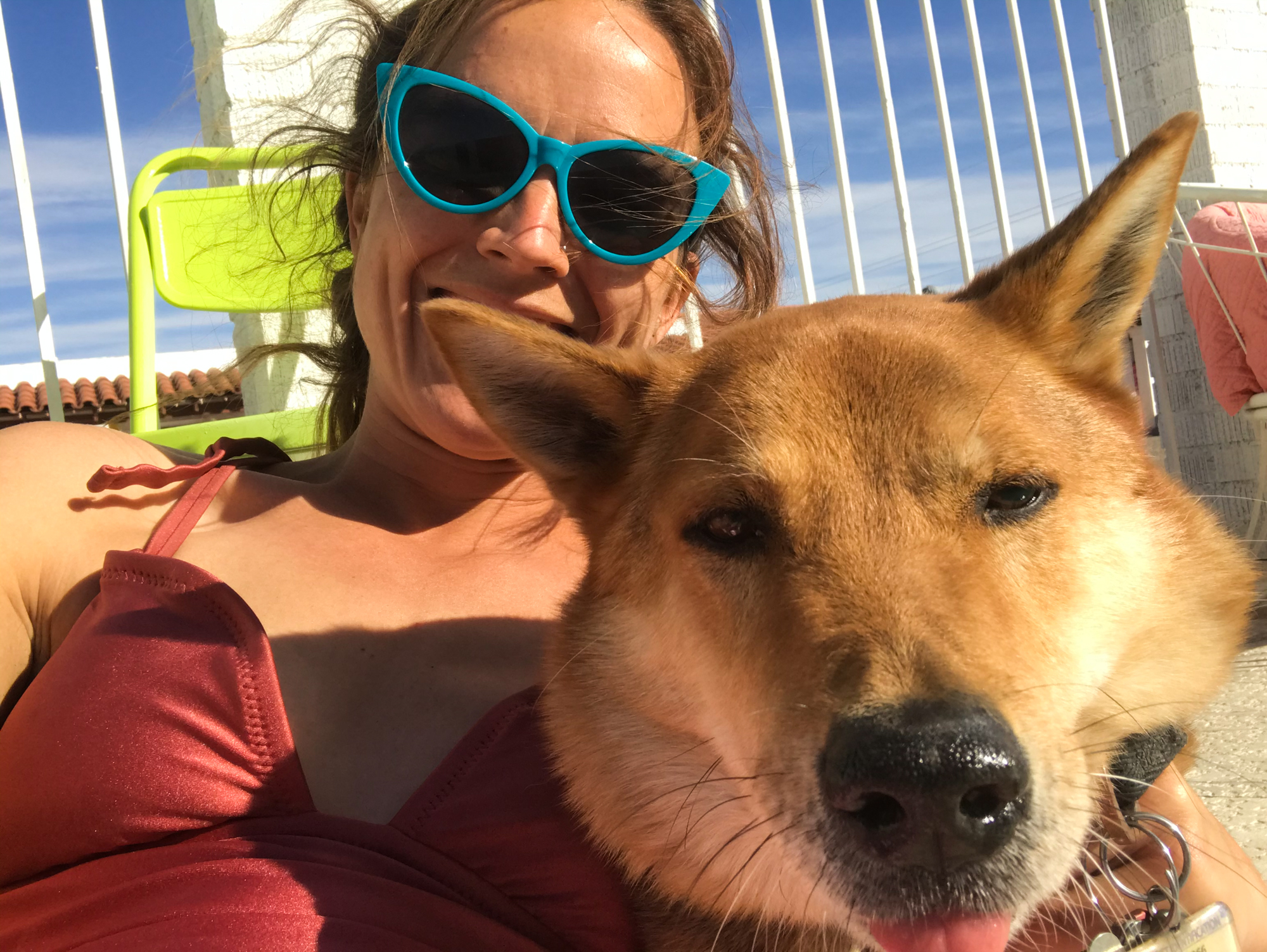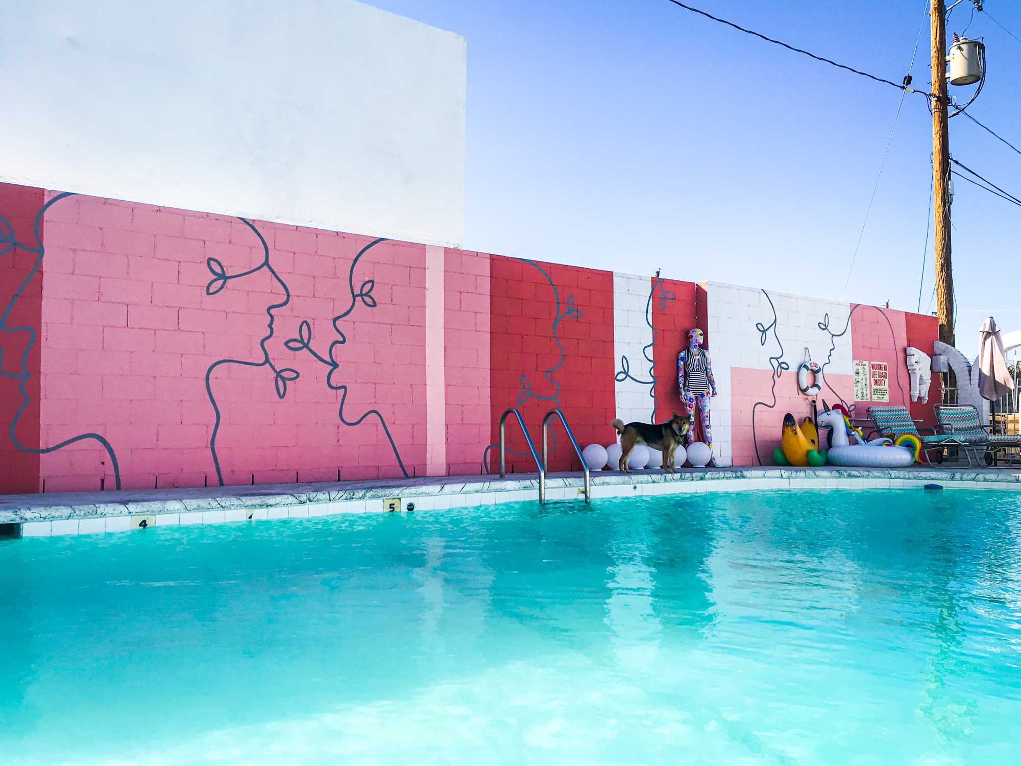But I finally succeeded and then had an actual, open pool awaiting me. My pooltime was interrupted by a brief heart attack when I realized Ollie was no longer in the pool area– he’d found a sneaky second gate that hadn’t been shut properly. I found him by the resident chicken coop amidst the vintage trailers, but he gave chase until the nightmare culminated with him running toward the busy street just outside the property. However, the only rules he ever obeys are the rules of the road, so he stopped at the stop sign, then bolted back to the property at my ‘kennel up!’ command. Crisis averted.