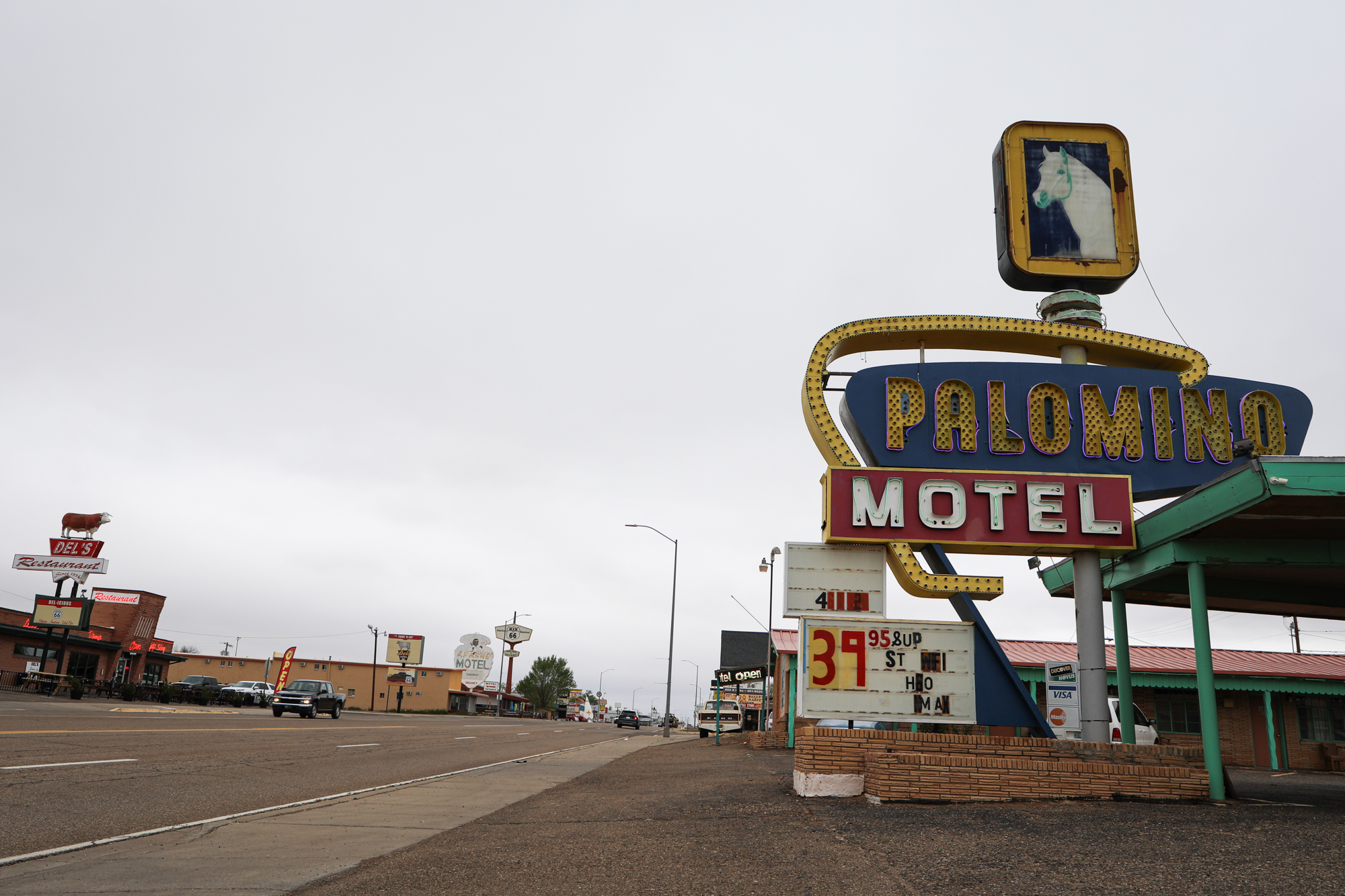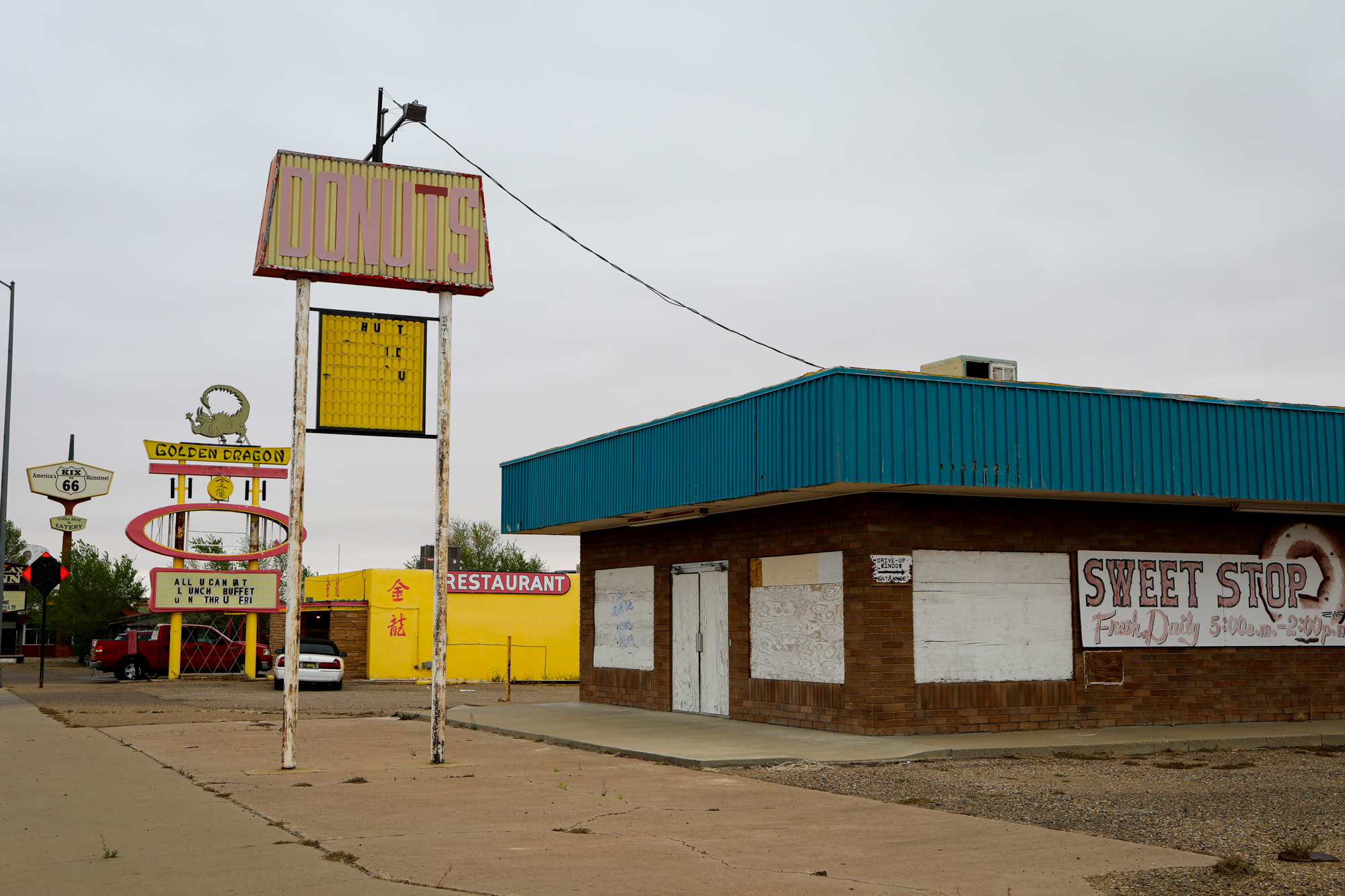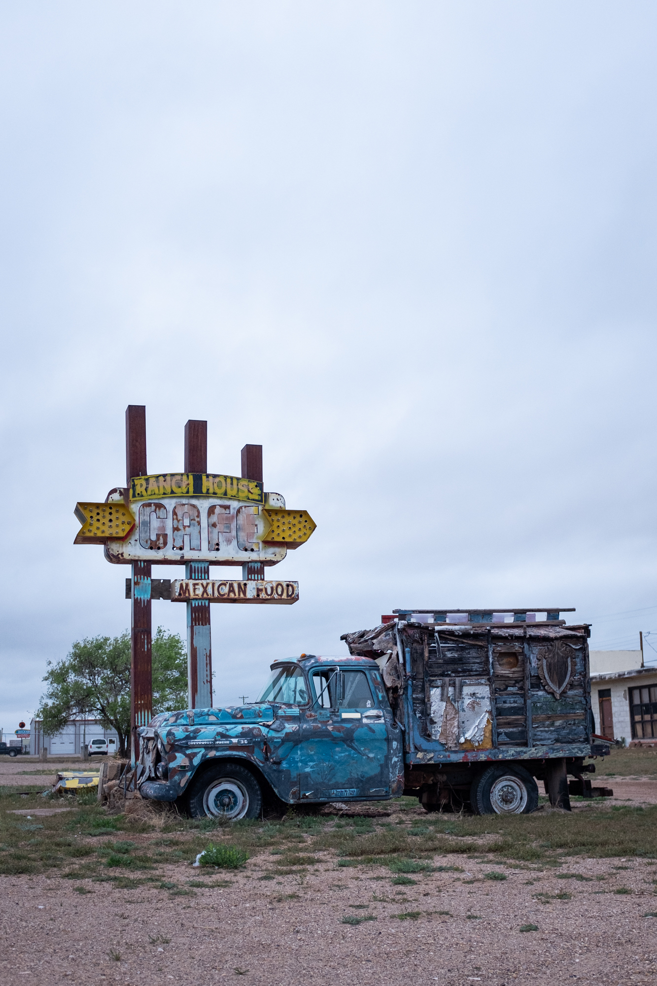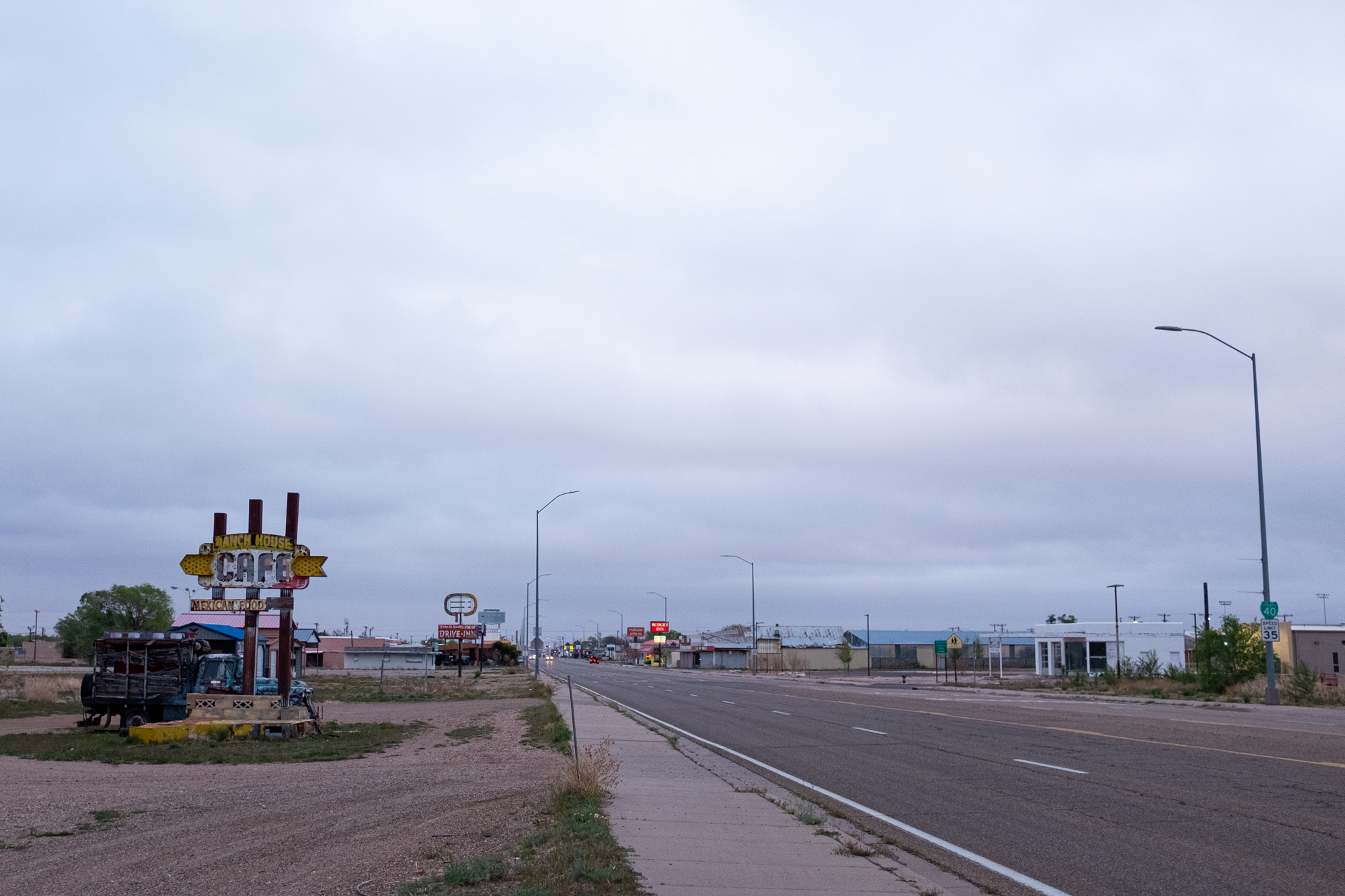 It earns that accolade because it gave me one of the most thorough and intimate windows into the Route 66 experience. I booked a room at the Roadrunner Lodge (one of the few pet-friendly motels in town), and initially did a short photo-walk around that stretch of Route 66. It was definitely peppered with abandoned establishments, but there were signs of life. The kitsch and burned-out neon I’d come for: some actual relics and some new things made to look old, an anachronistic village unsure of its era.