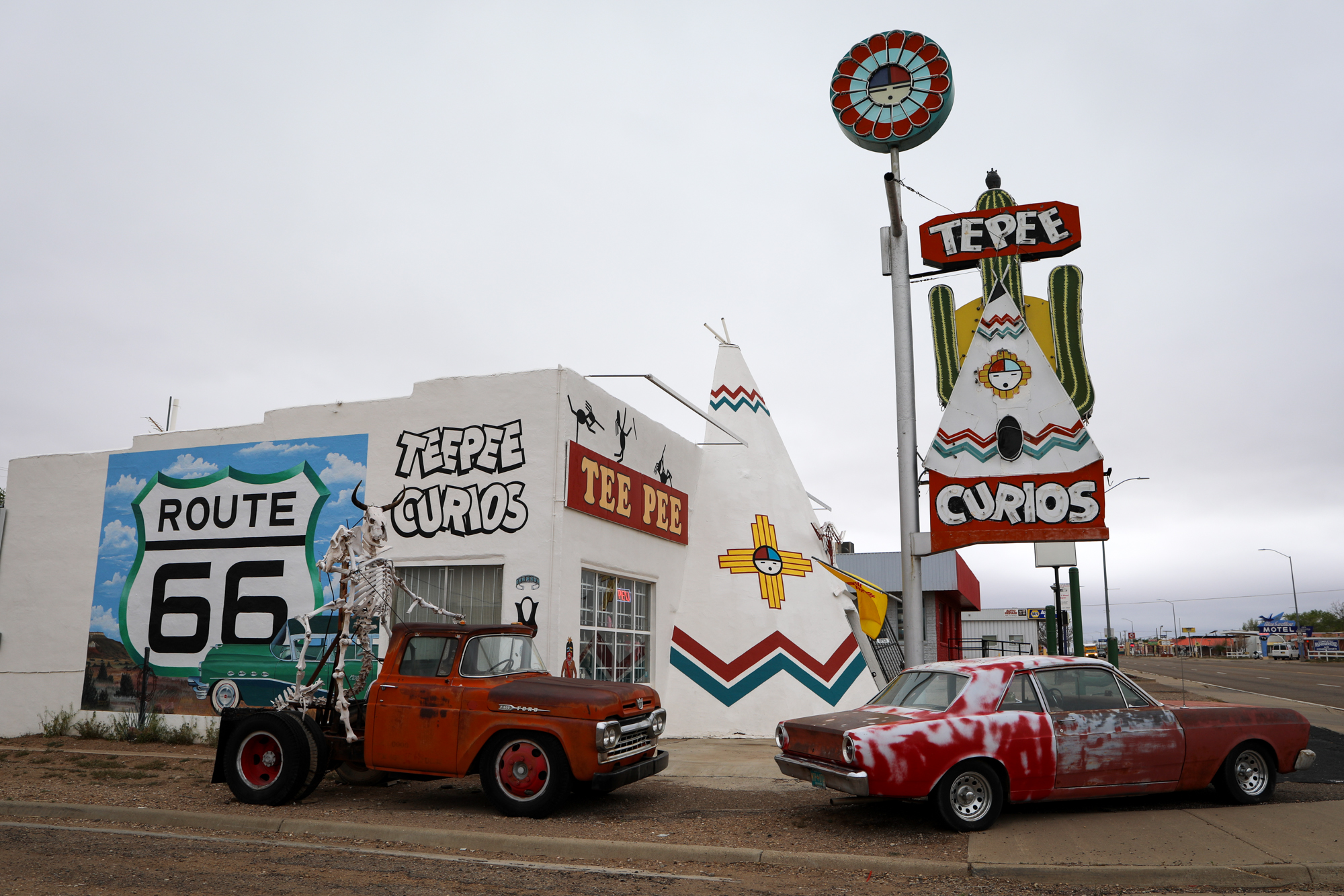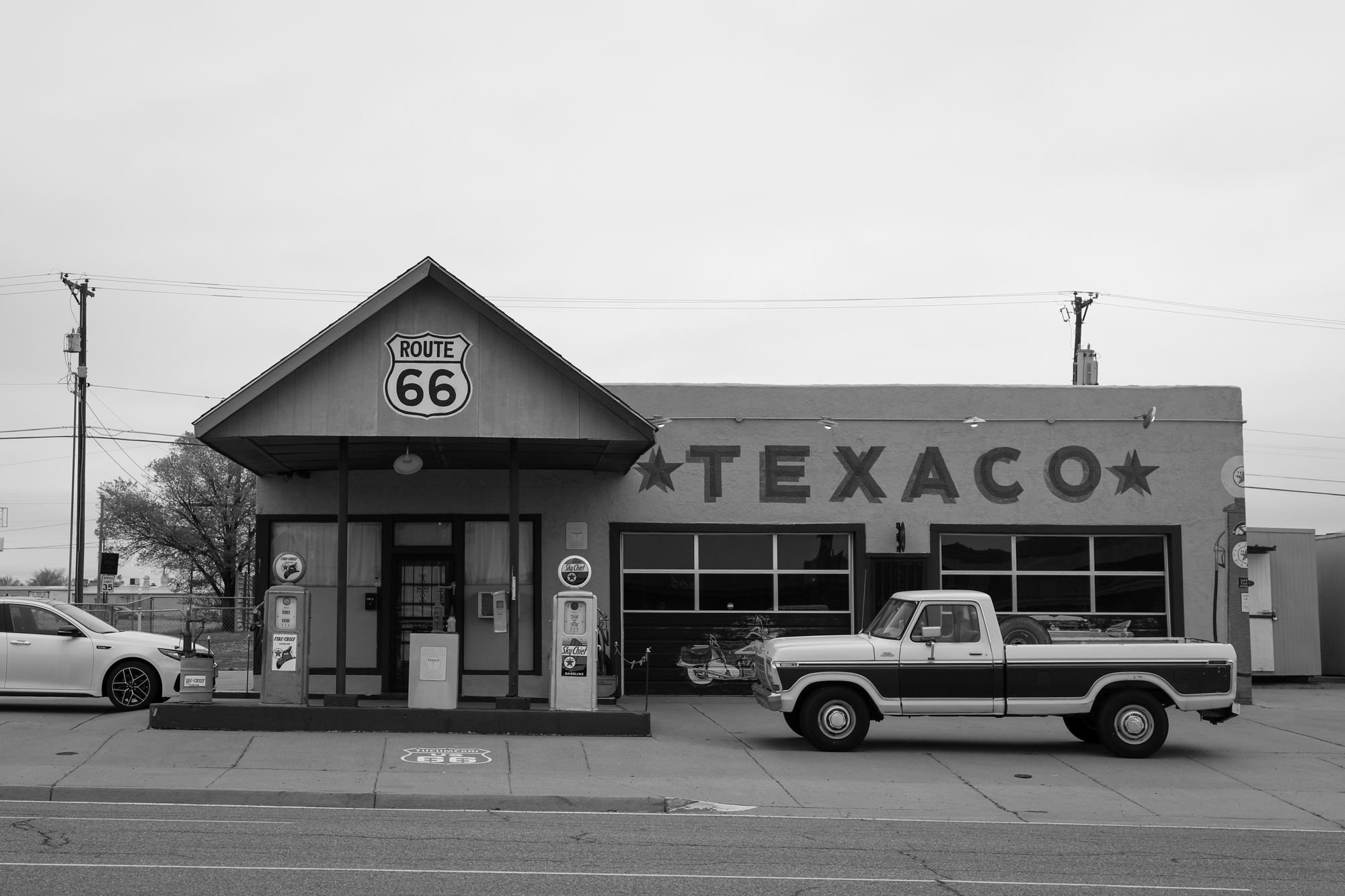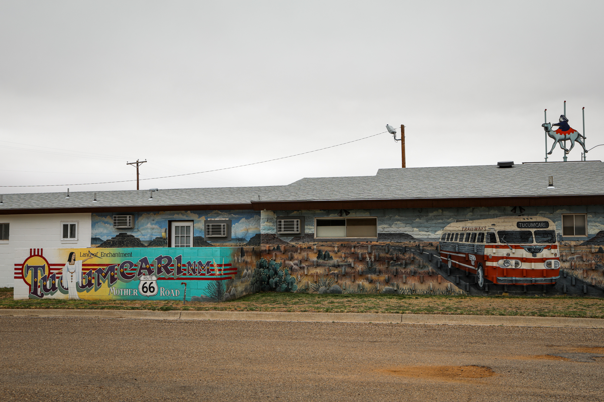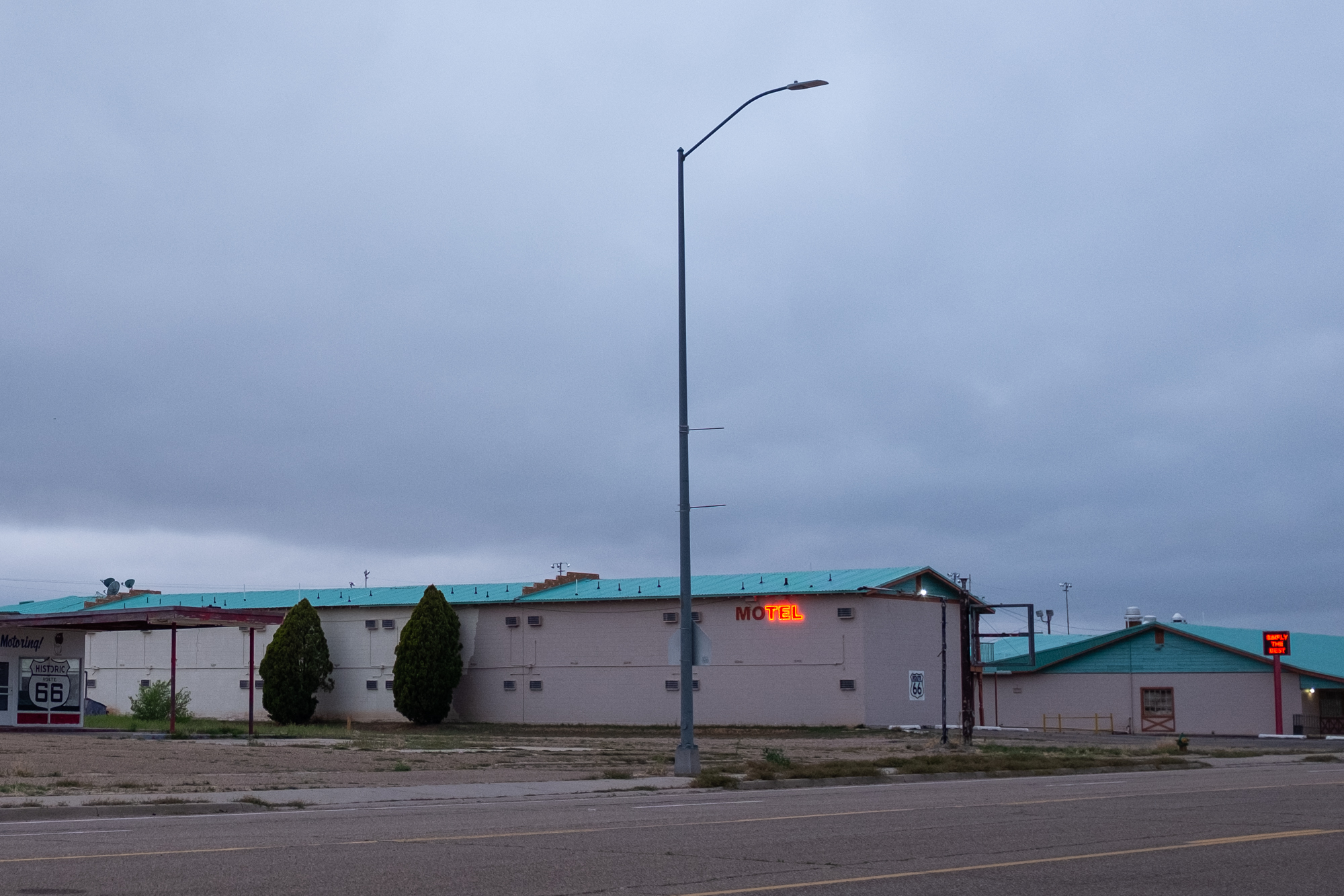 It earns that accolade because it gave me one of the most thorough and intimate windows into the Route 66 experience. I booked a room at the Roadrunner Lodge (one of the few pet-friendly motels in town), and initially did a short photo-walk around that stretch of Route 66. It was definitely peppered with abandoned establishments, but there were signs of life. The kitsch and burned-out neon I’d come for: some actual relics and some new things made to look old, an anachronistic village unsure of its era.