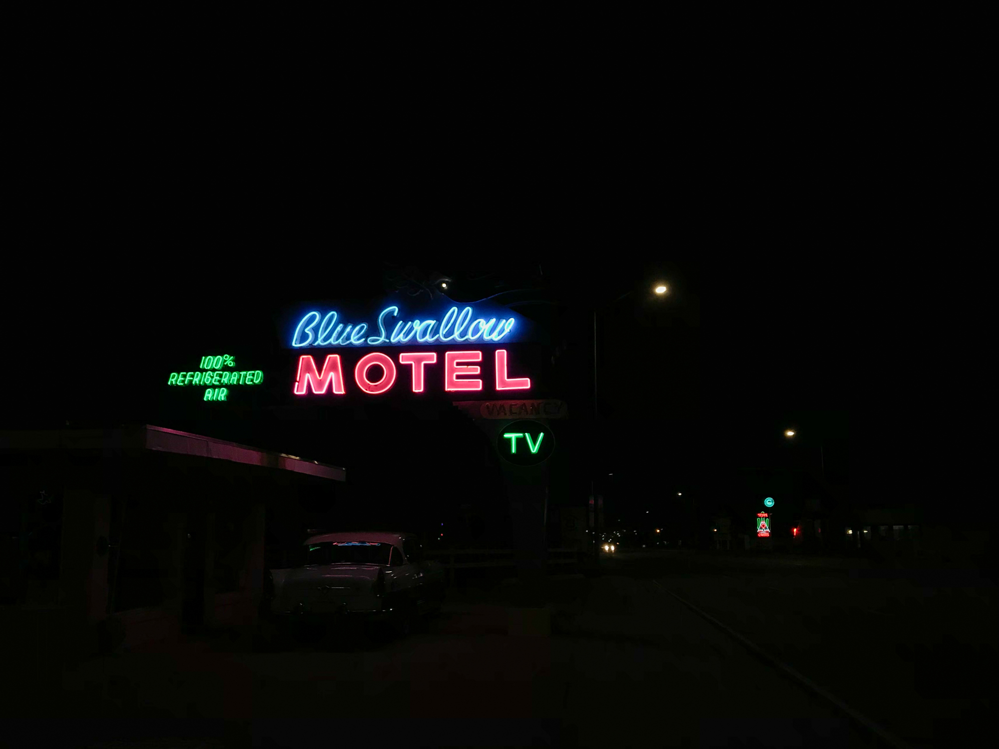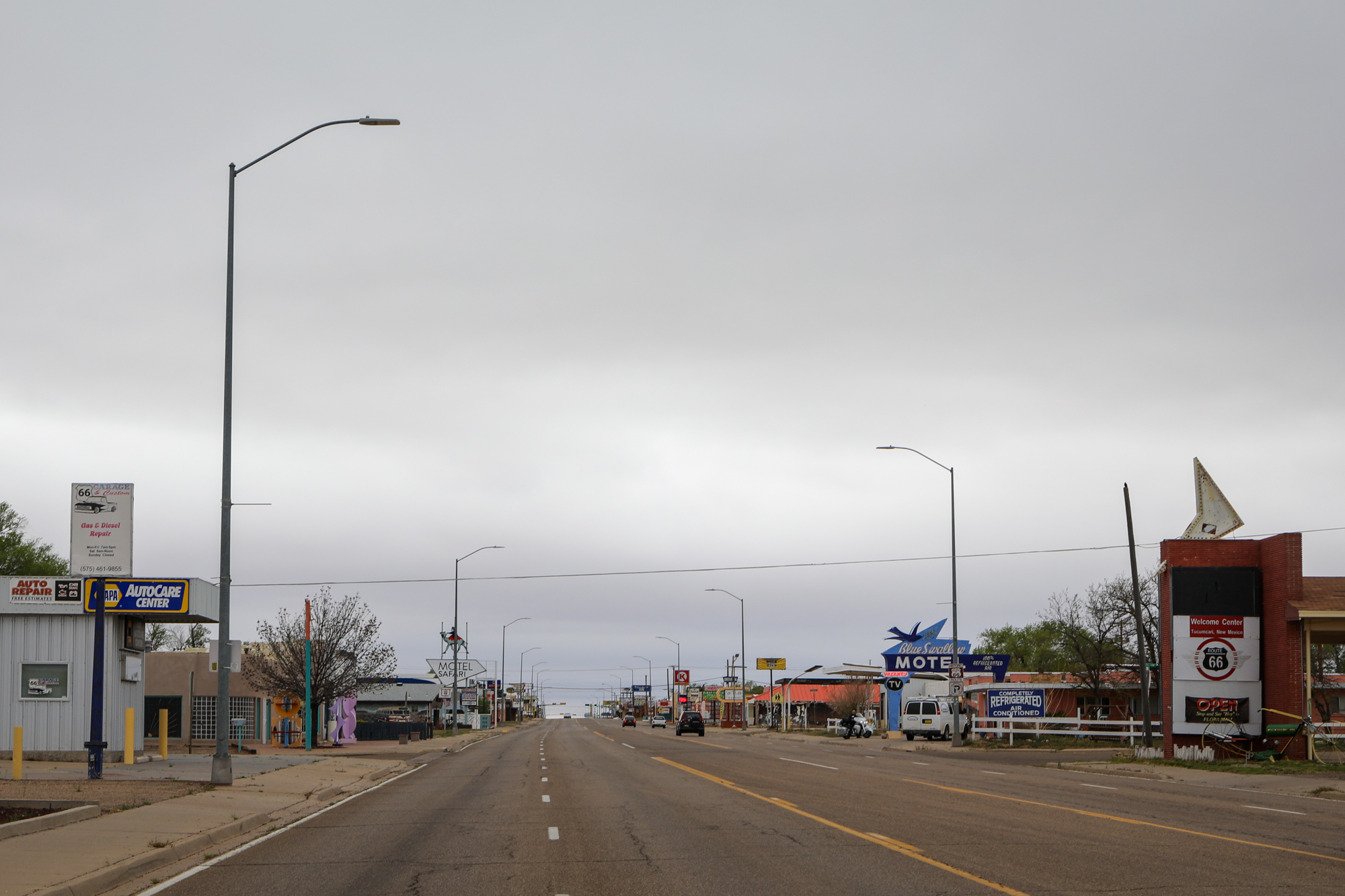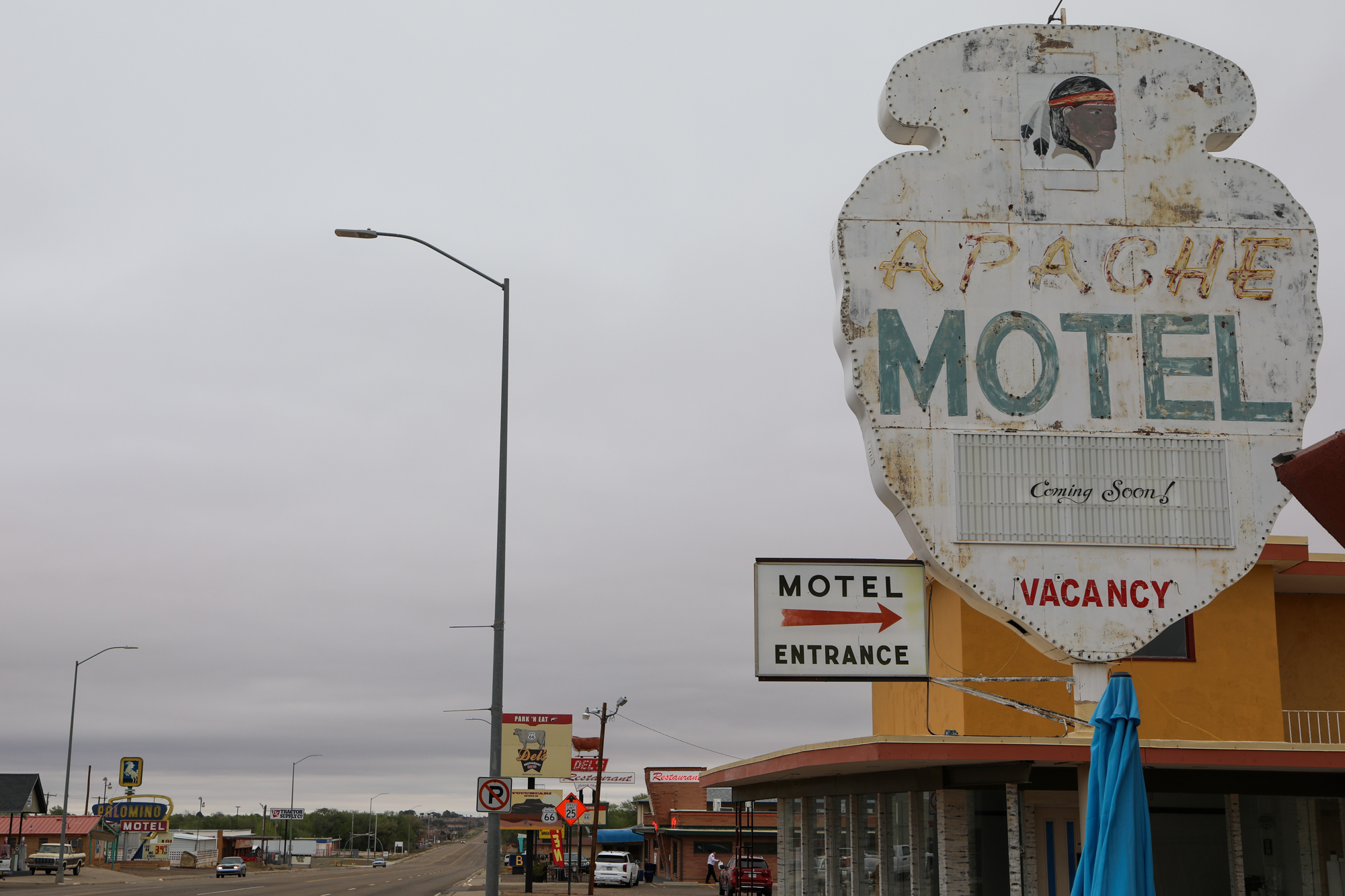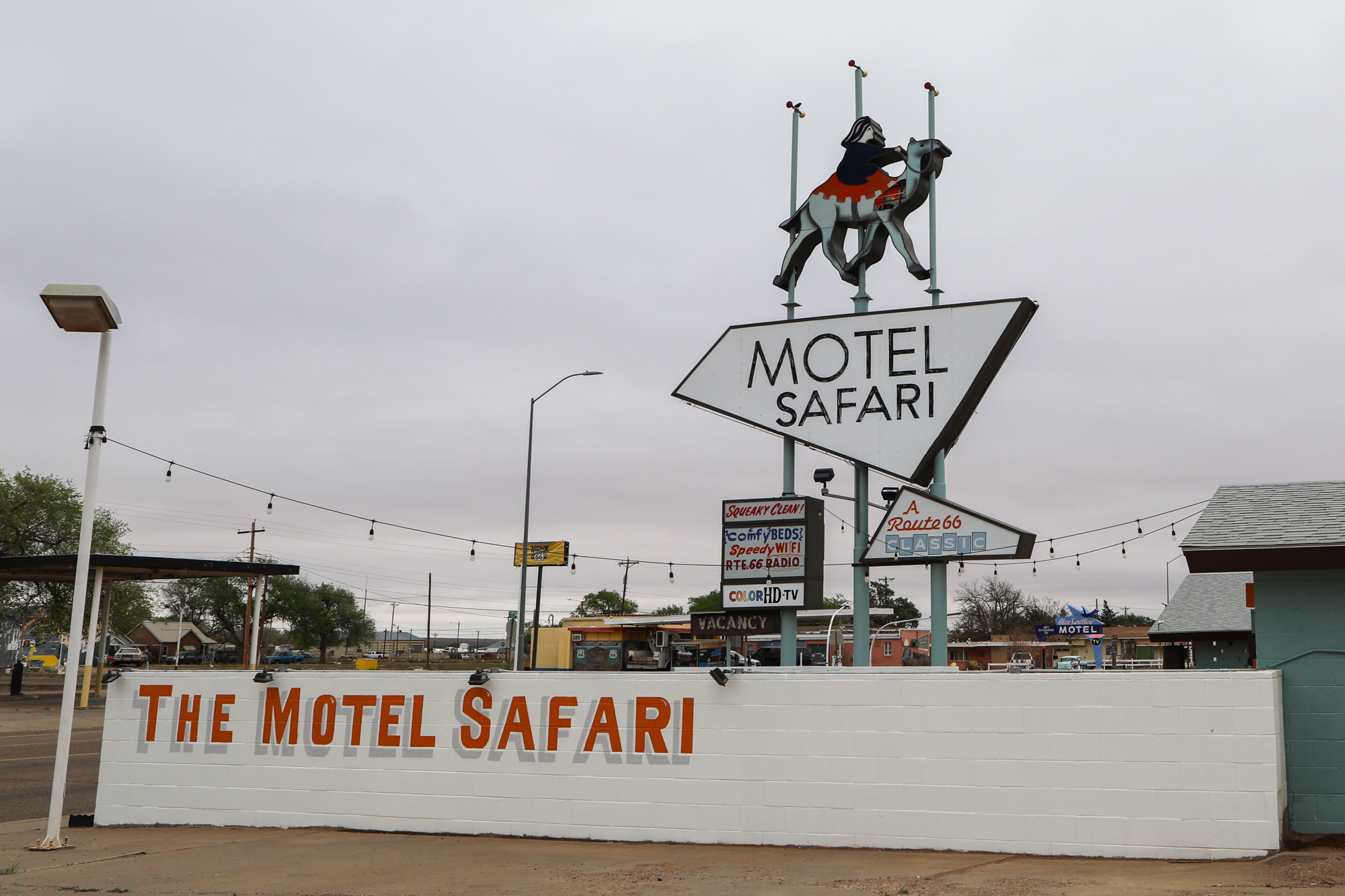 It earns that accolade because it gave me one of the most thorough and intimate windows into the Route 66 experience. I booked a room at the Roadrunner Lodge (one of the few pet-friendly motels in town), and initially did a short photo-walk around that stretch of Route 66. It was definitely peppered with abandoned establishments, but there were signs of life. The kitsch and burned-out neon I’d come for: some actual relics and some new things made to look old, an anachronistic village unsure of its era.